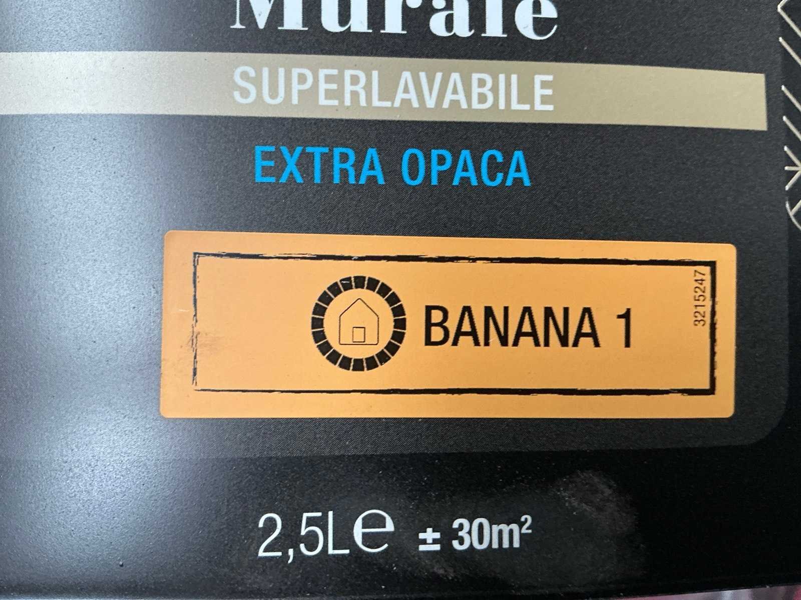Volume 2,5 liter/doos - circa 30 m² per doos Kleur: Banana 1 Muur: true Waterbasis: true