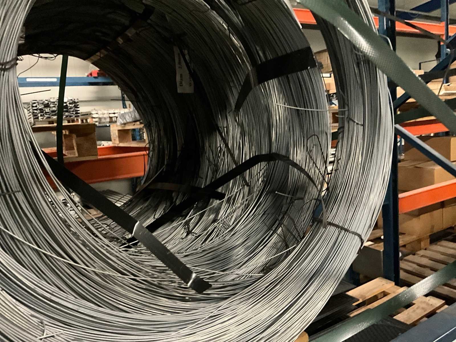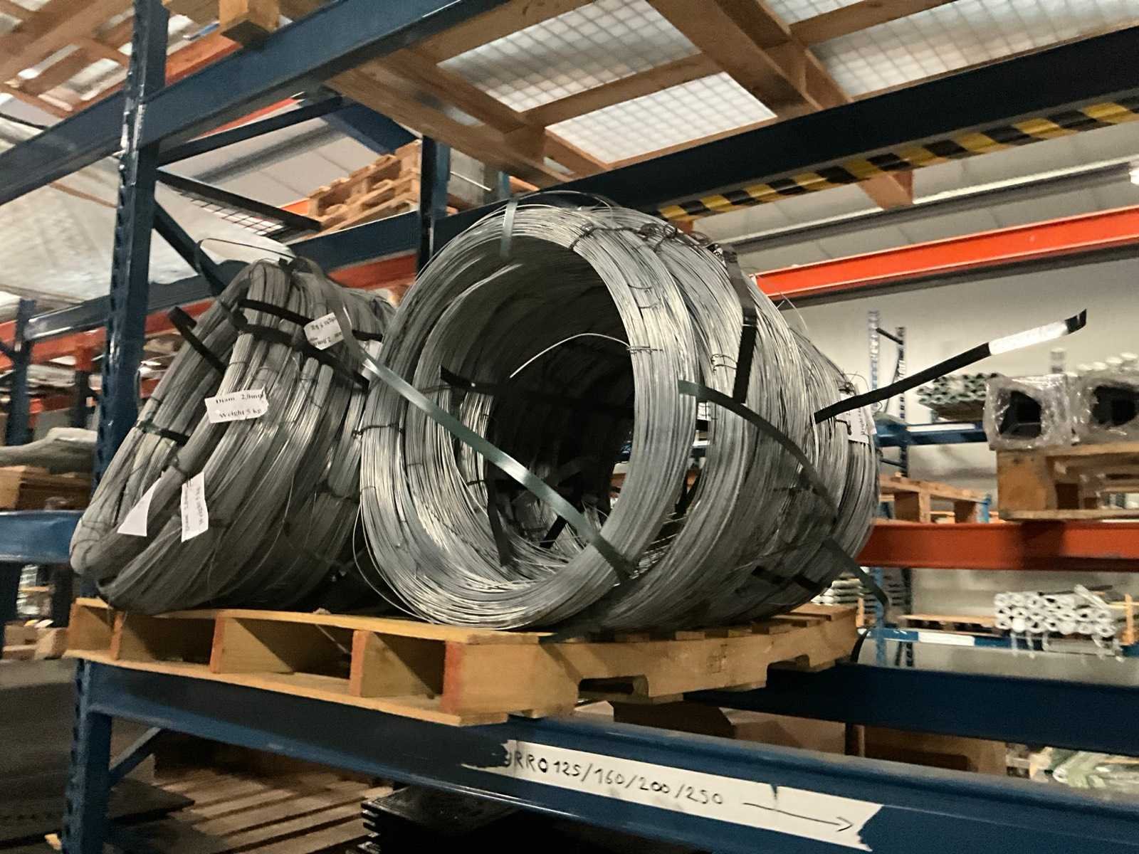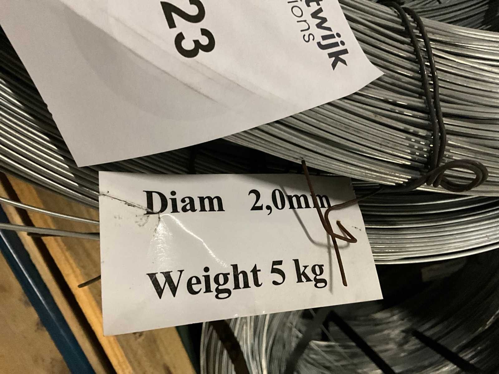 Diameter 2mm, gewicht per rol circa 5kg, ongebruikt, gestapeld op 1 pallet
