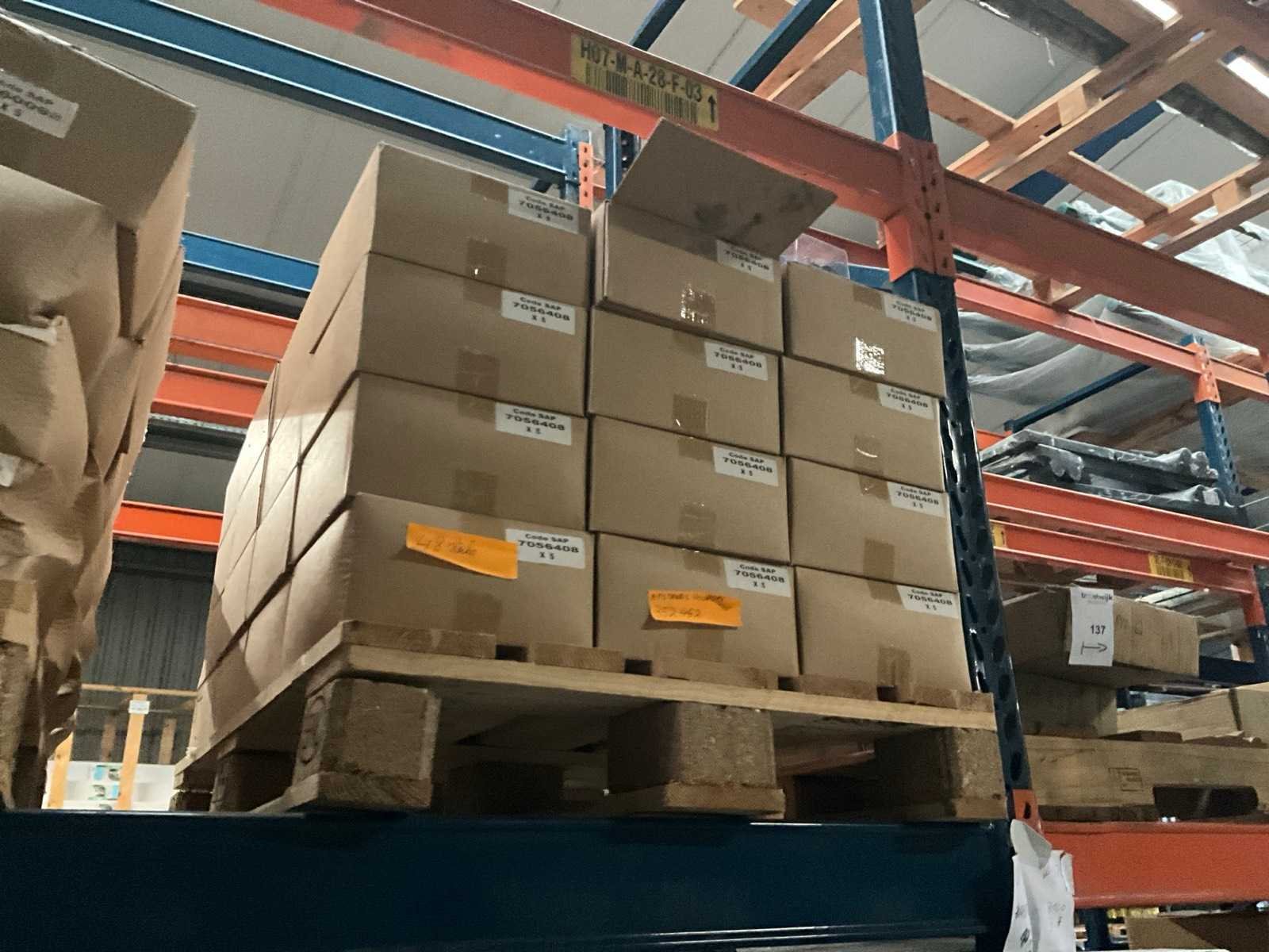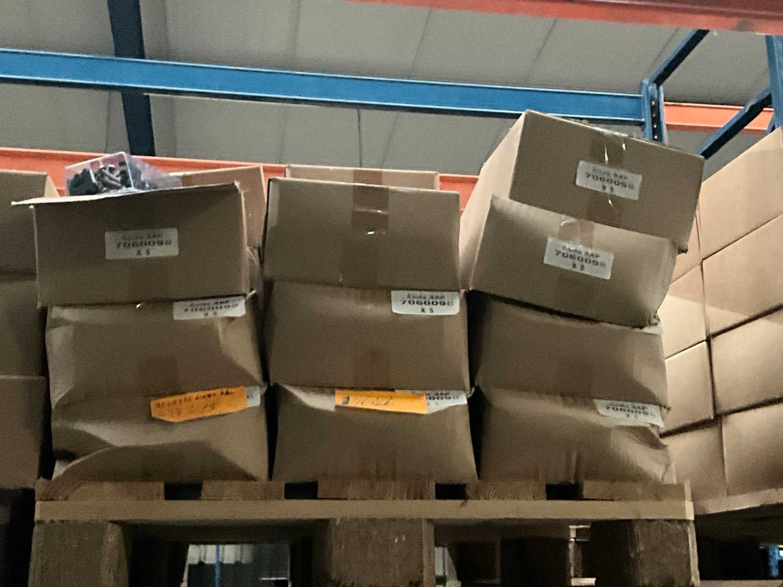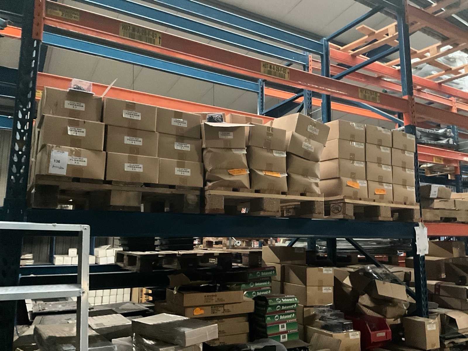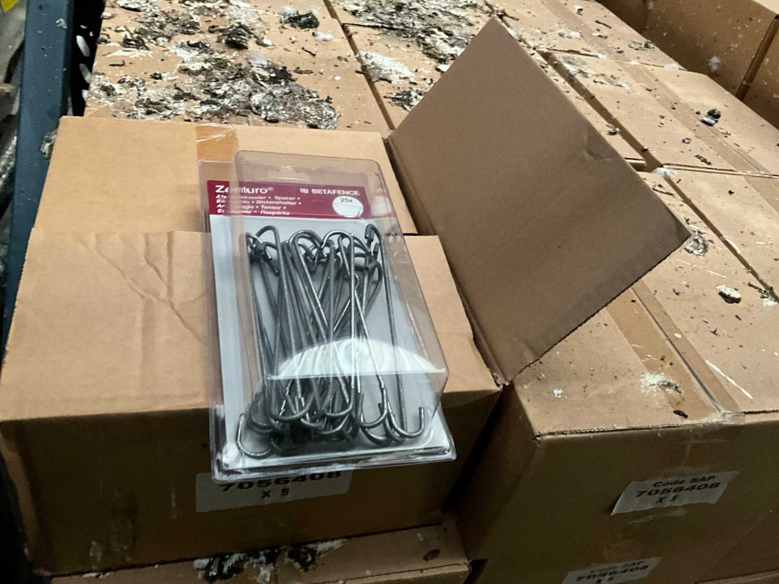 Inhoud van 1 ligger, circa 135 dozen, waaronder afstandhouders en bevestigingsklemmen Merk: Betafence