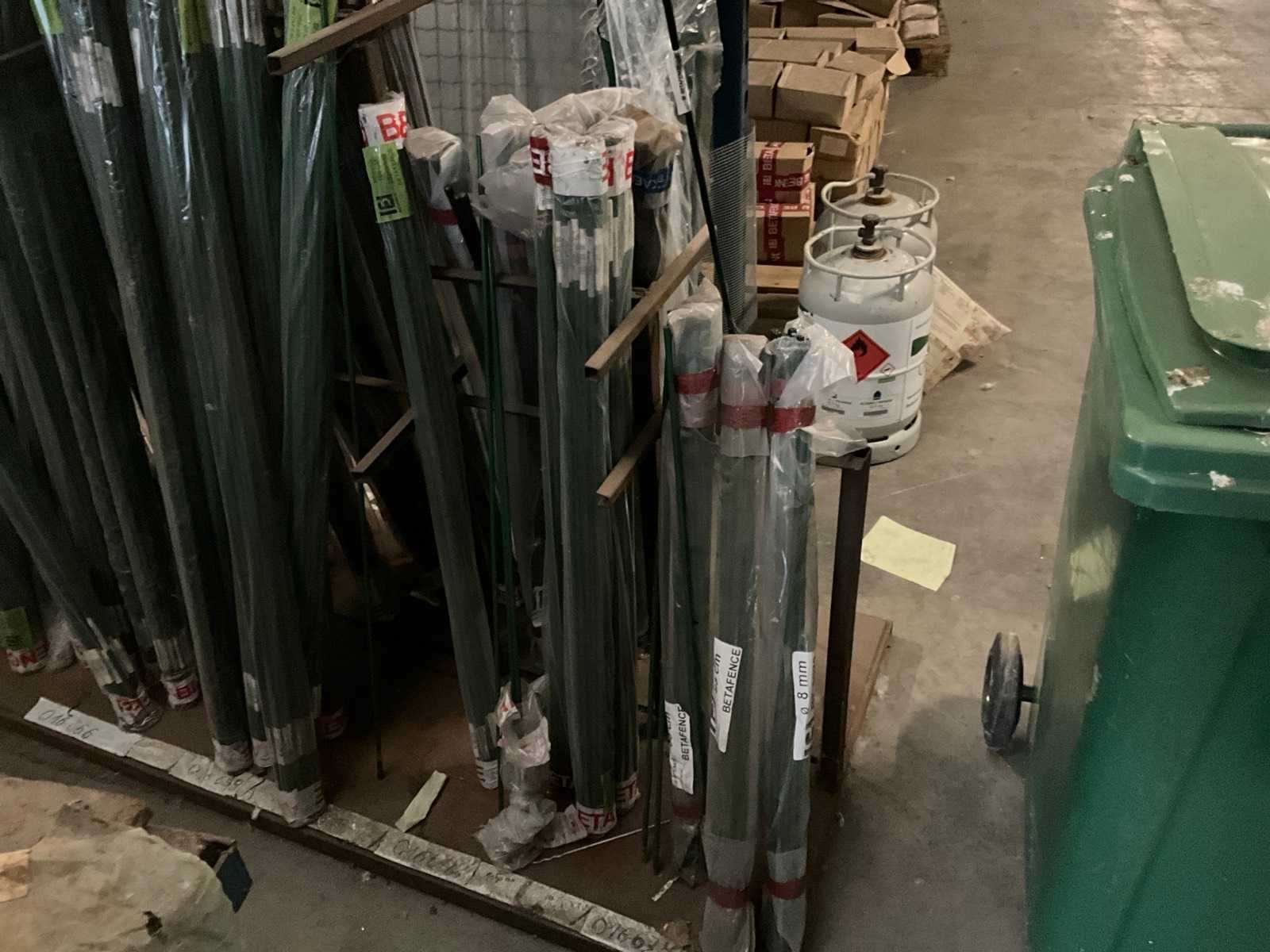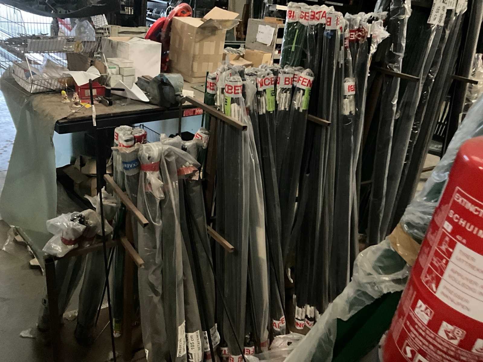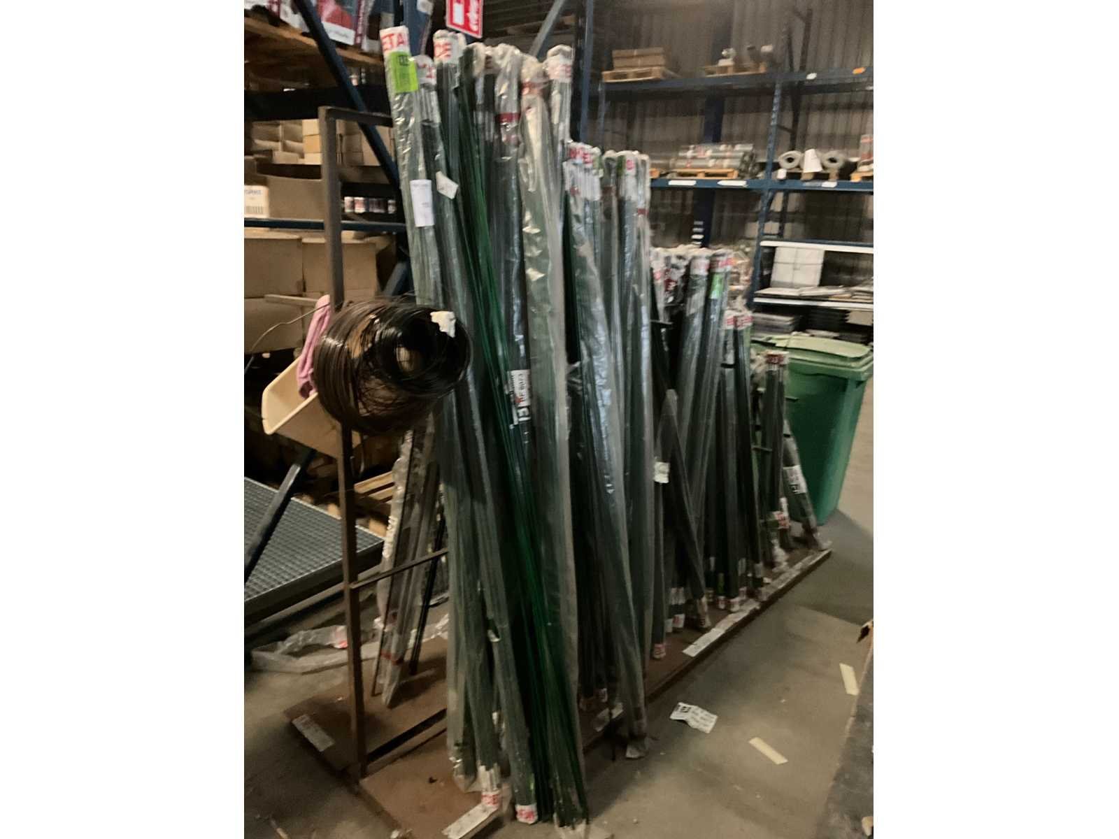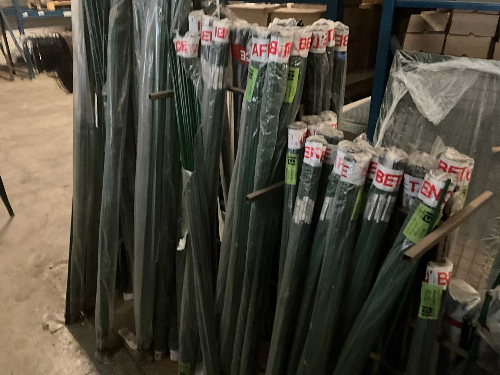 Diverse afmetingen, kleuren groen en zwart, circa 75 pakken, inclusief metalen stelling Merk: Betafence