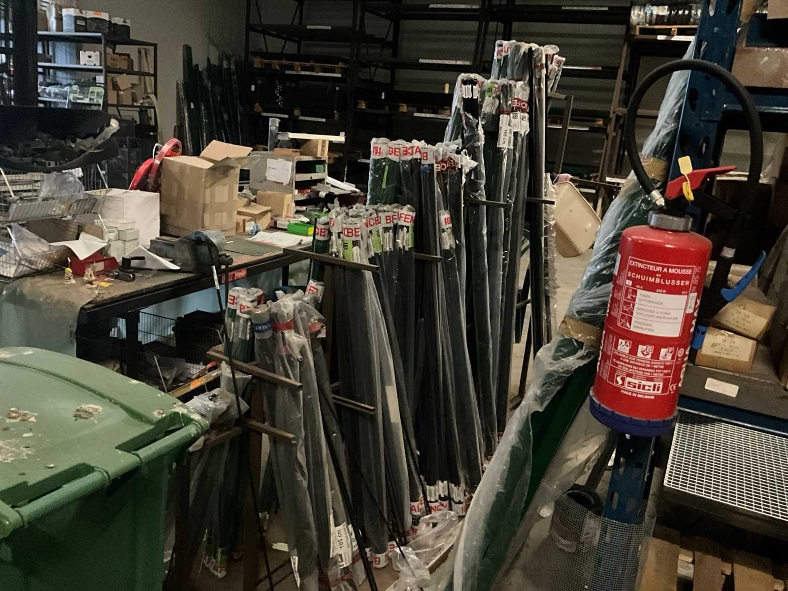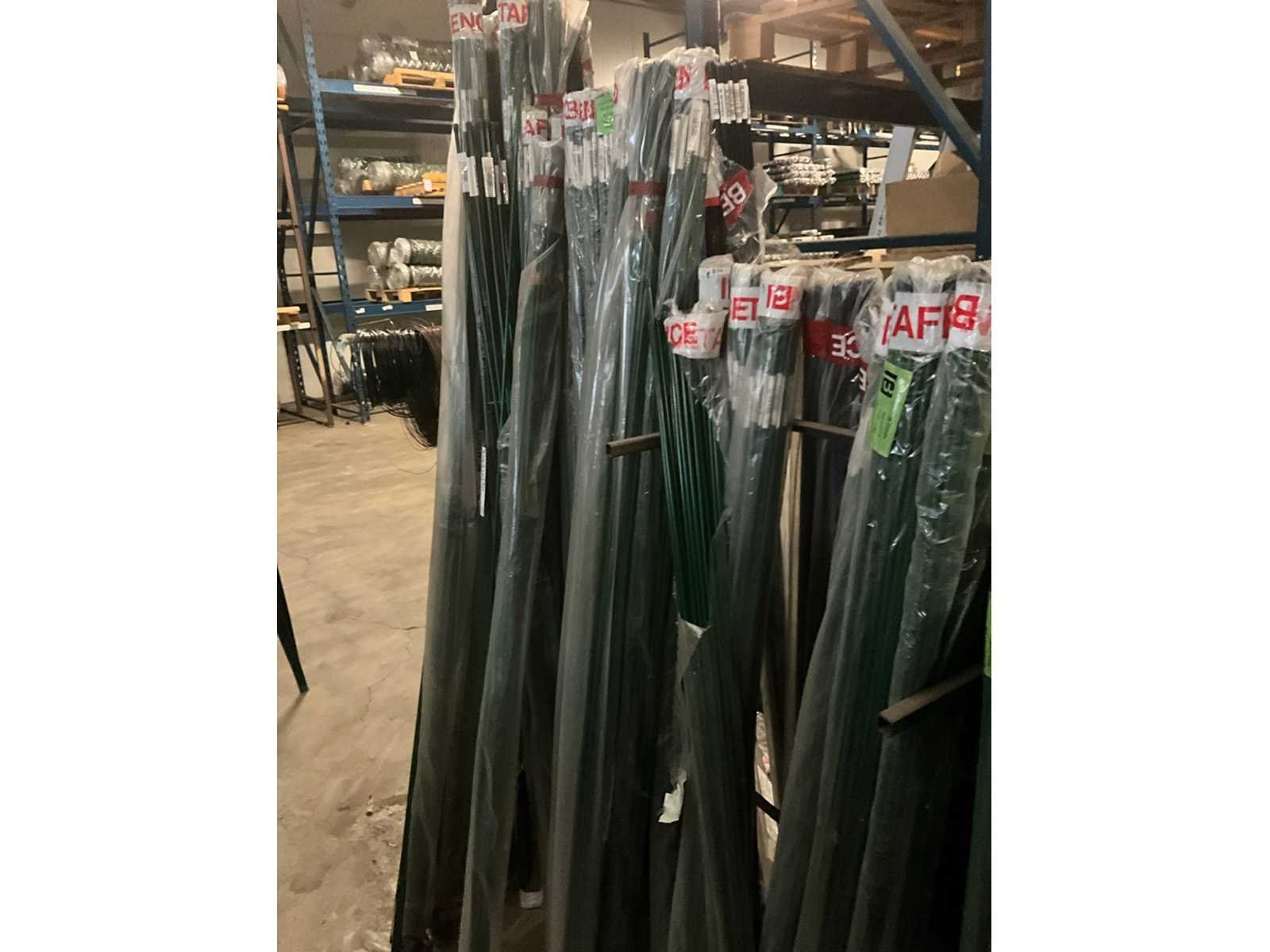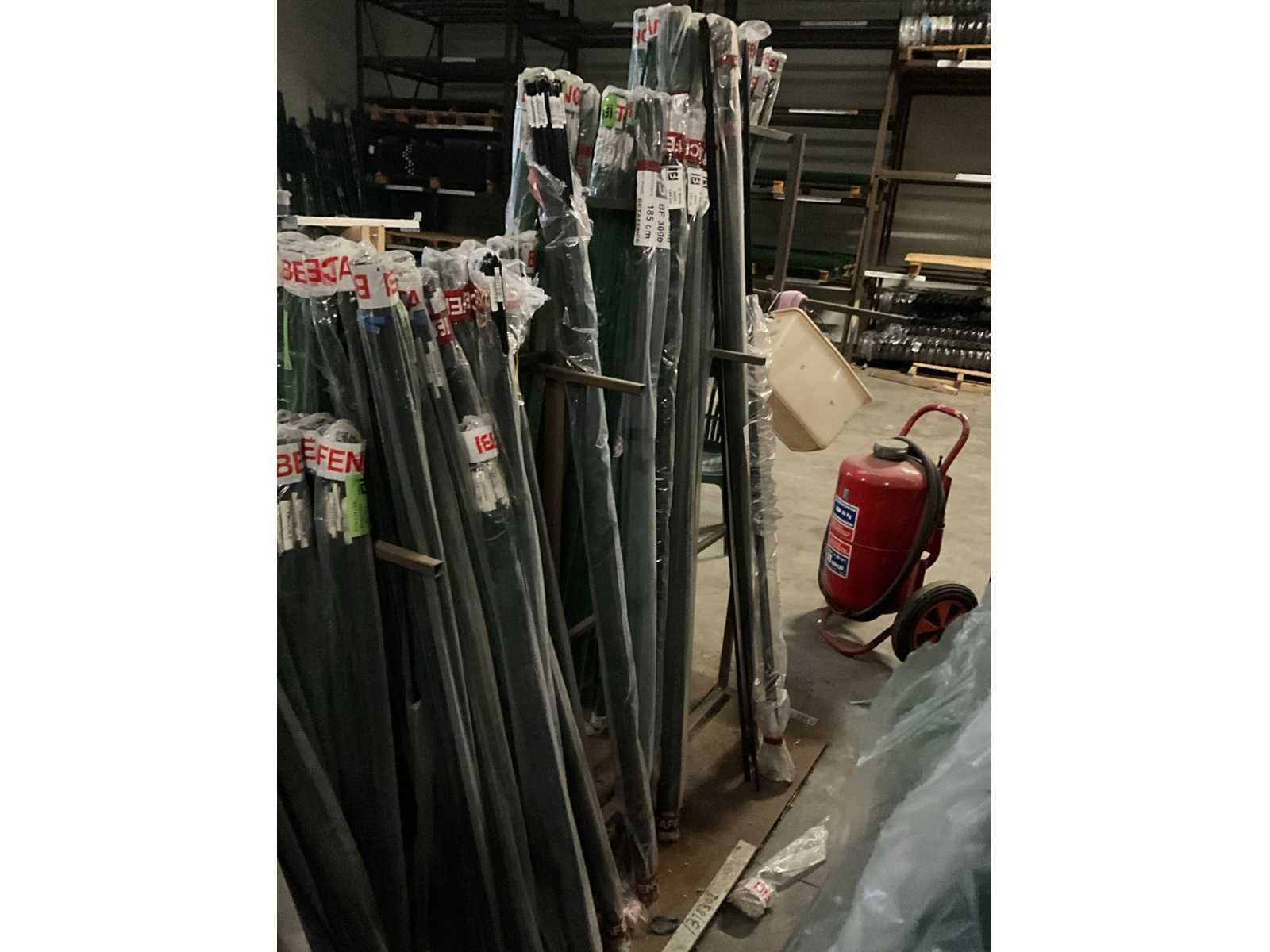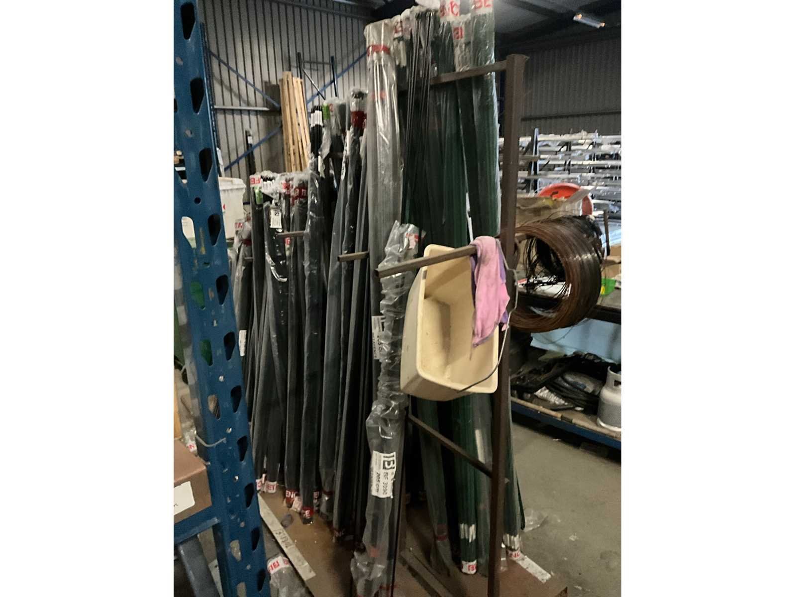 Diverse afmetingen, kleuren groen en zwart, circa 75 pakken, inclusief metalen stelling Merk: Betafence