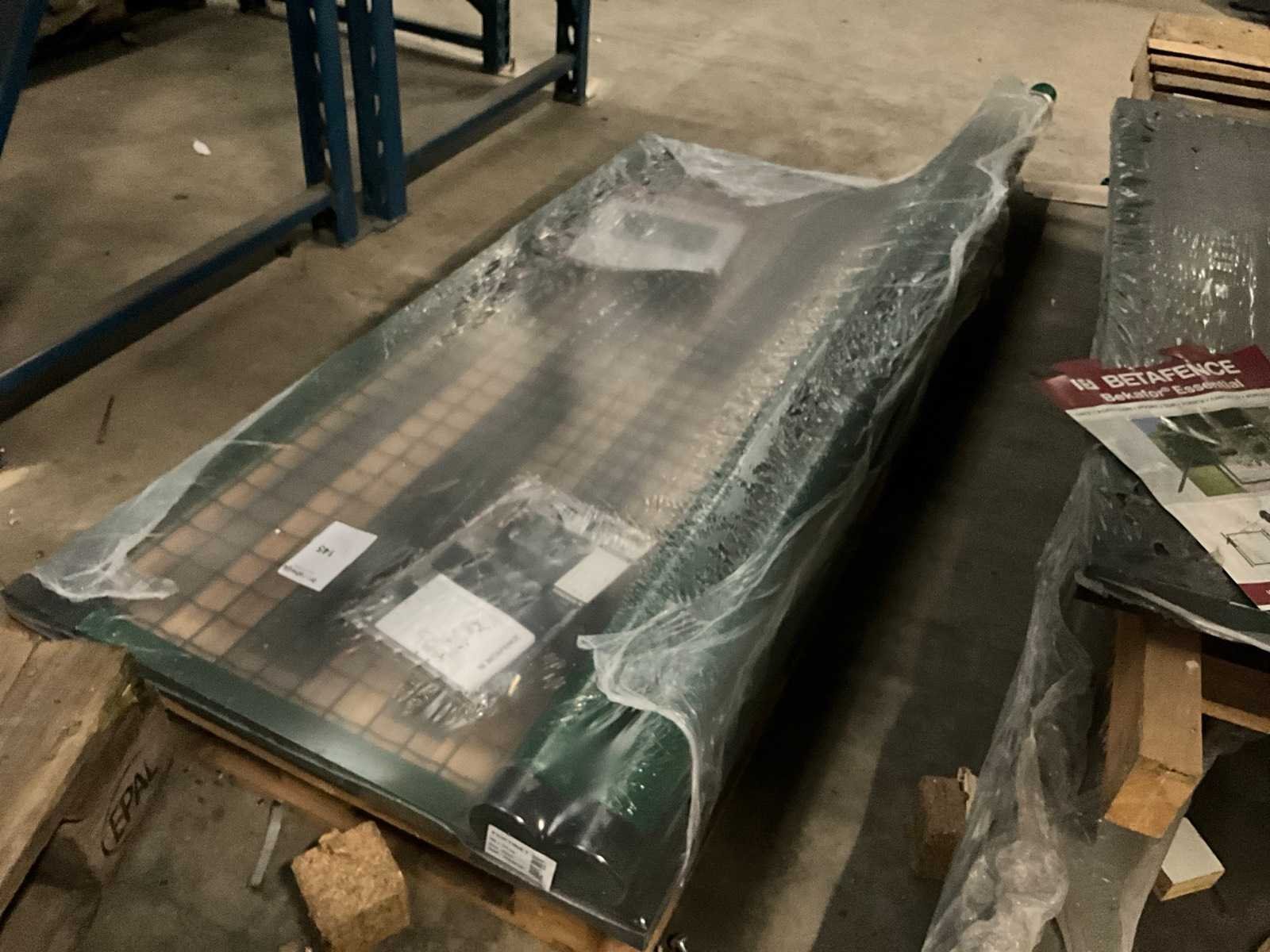 Ongebruikt, inclusief 2 palen en accesoires Merk: Betafence Product type: Fortinet Kleur: RAL6005 Breedte: 100cm Hoogte: 175cm