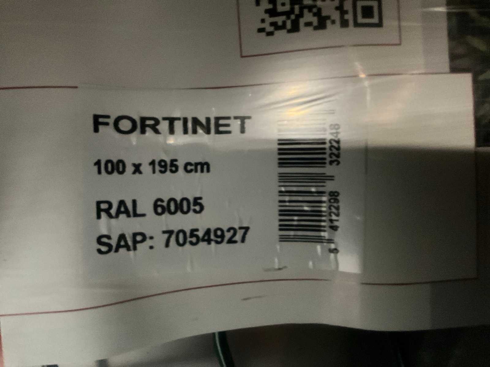 Ongebruikt, inclusief 2 palen en accesoires Merk: Betafence Product type: Fortinet Kleur: RAL6005 Breedte: 100cm Hoogte: 195cm