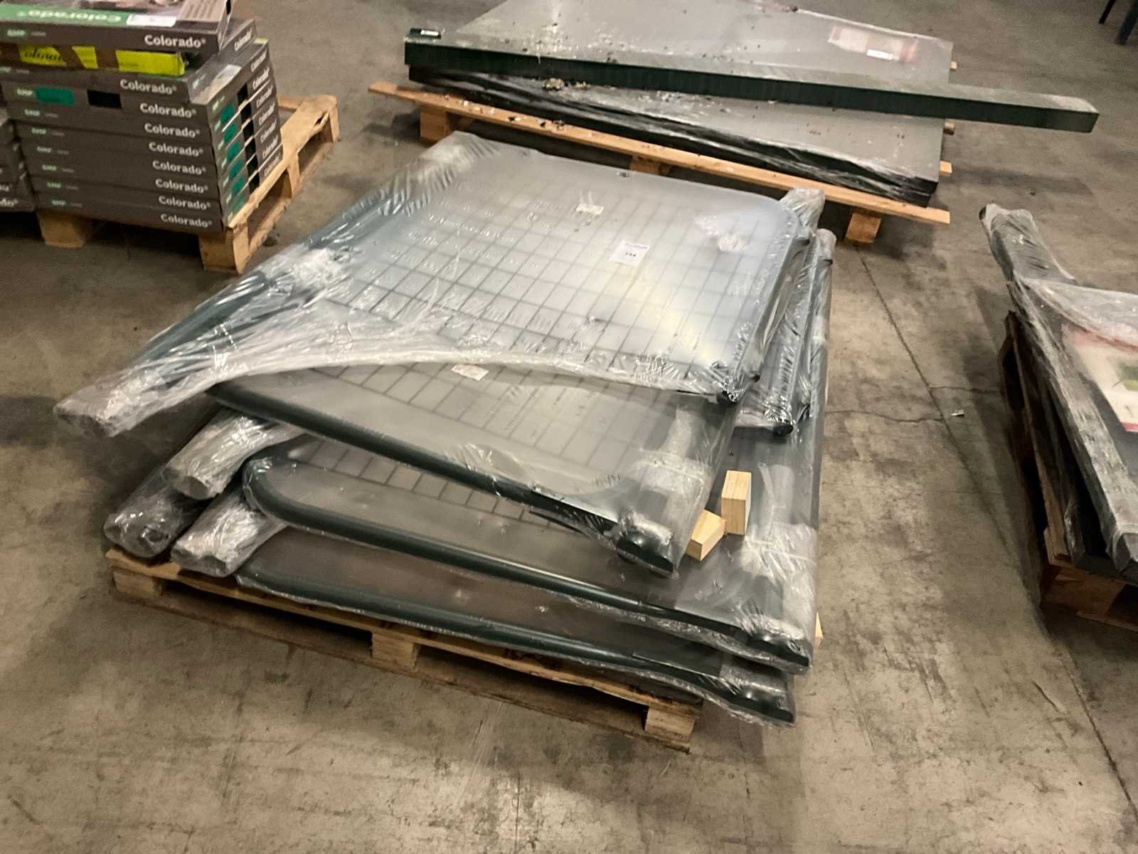 Ongebruikt, inclusief 2 palen, zonder hang en sluitwerk Kleur: Groen Breedte: 100cm Hoogte: 100cm