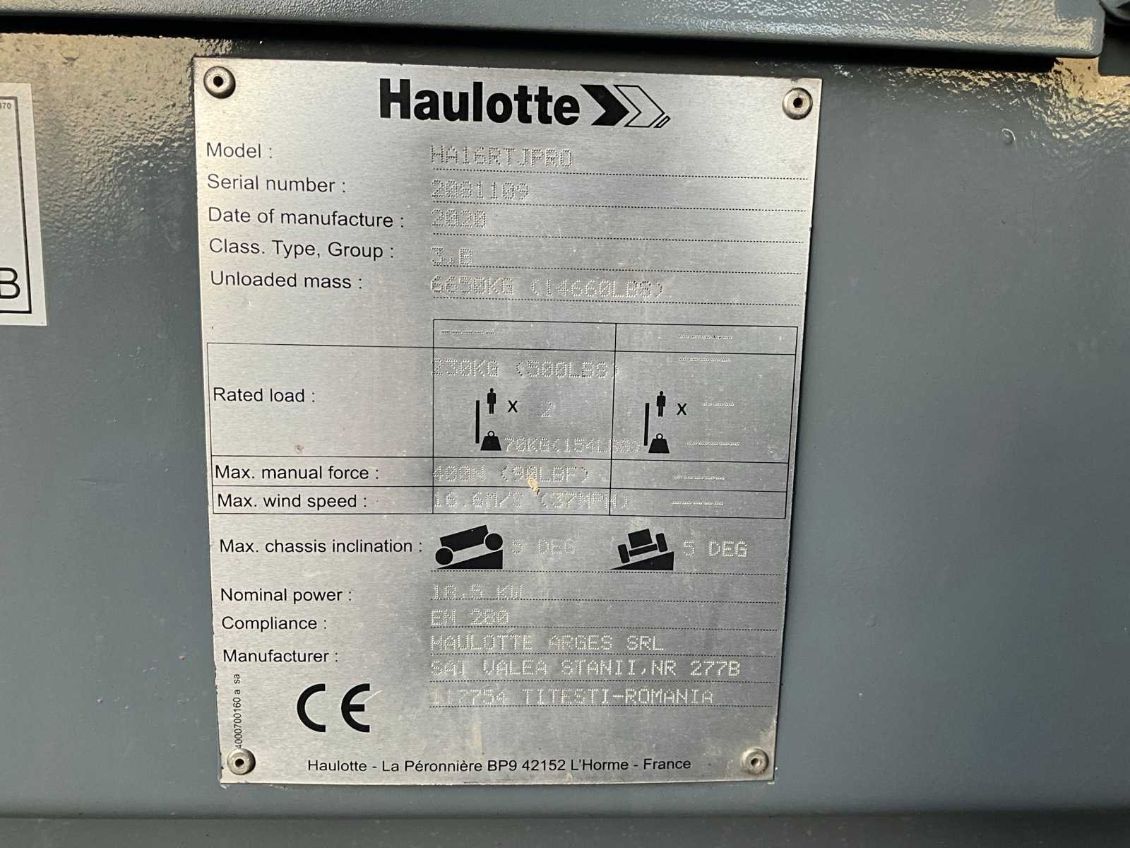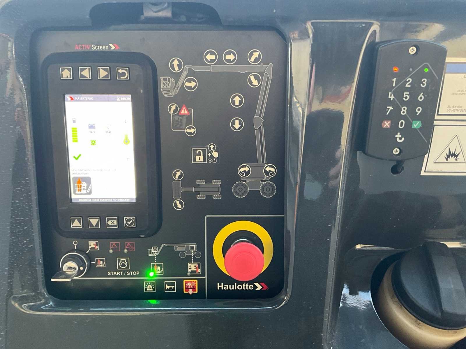 • 4 wiel sturing • knikarm • sleutel aanwezig • gebruikssporen Merk: Haulotte Type: HA16RTJ PRO Bouwjaar: 2020 Serienummer: 2081109 Diesel: true Motorvermogen (kW): 18.5kW Knikarm hoogwerker: true Werkhoogte: 14000mm Plateau afm. l: 770mm Plateau afm. b: 1800mm Platform capaciteit: 230kg Afgelezen urenstand: 899 Eigen gewicht: 6650kg Totale afmeting Breedte: 2350mm