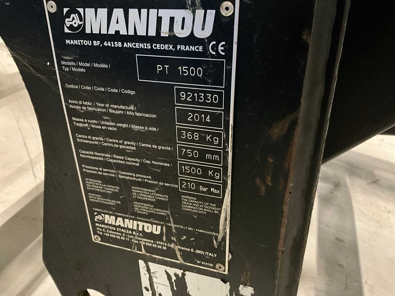 • capaciteit: 1500kg • bedrijfsdruk: 210bar • hydraulische lier met staalkabel Merk: Manitou Type: PT1500 Bouwjaar: 2014 Serienummer: 921330 Eigen gewicht: 368kg Totale afmeting L: 3050mm