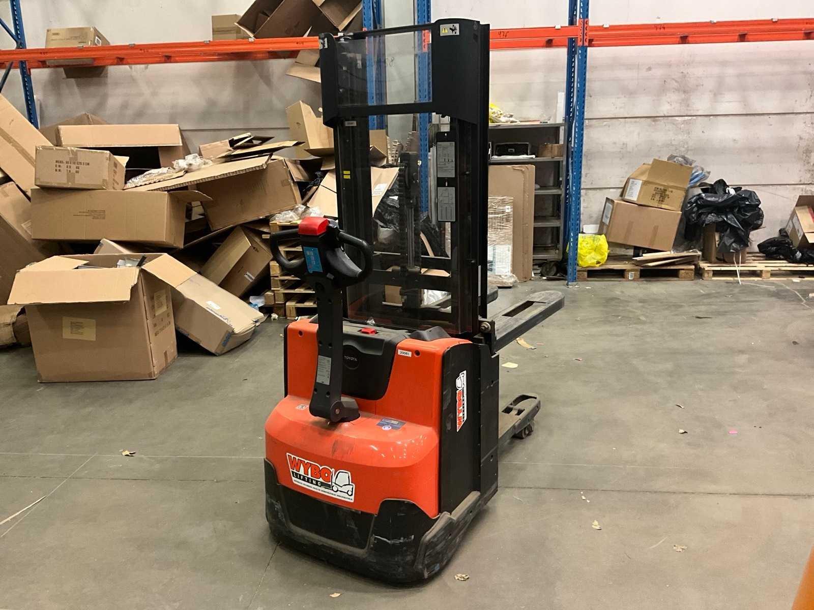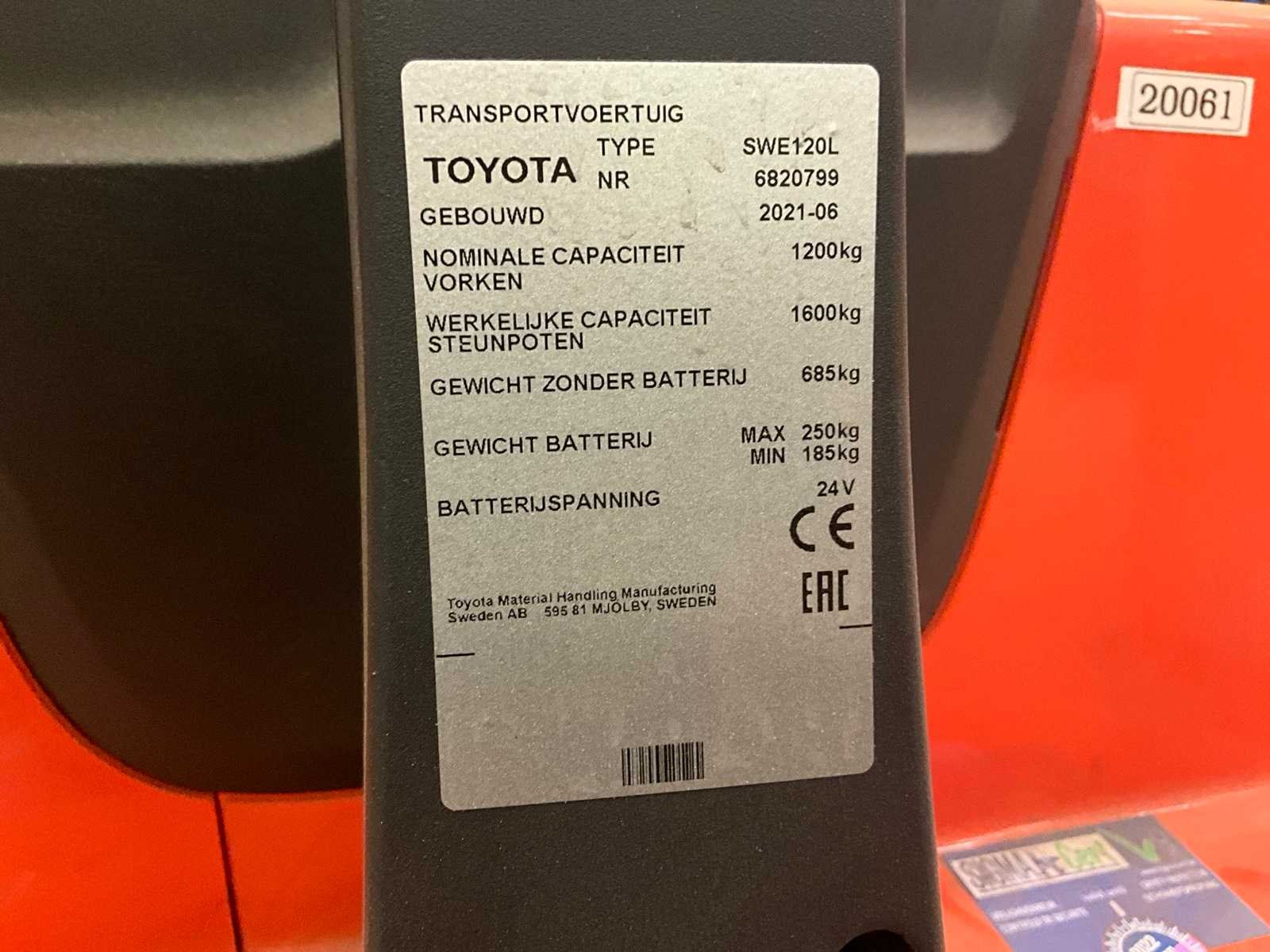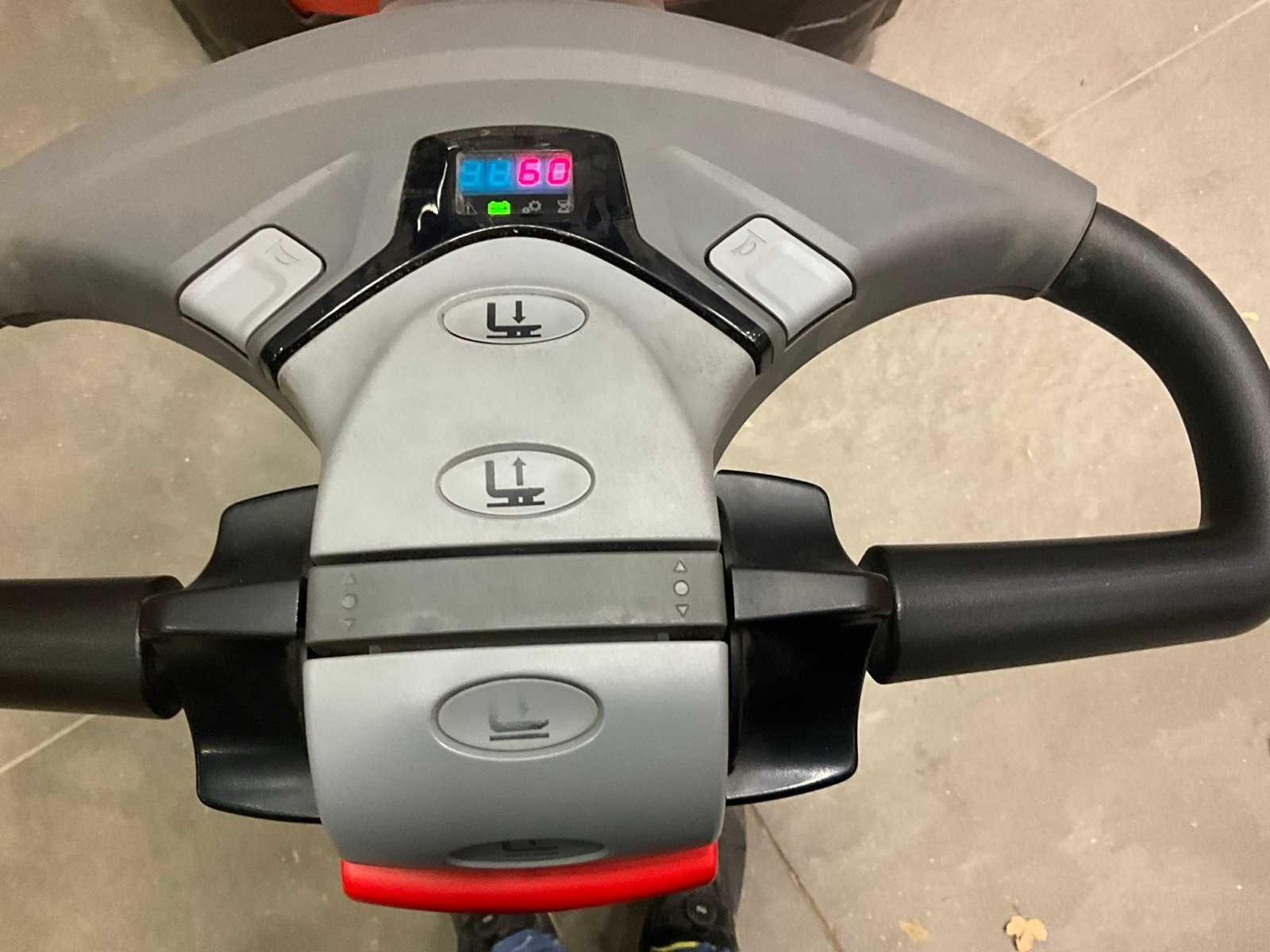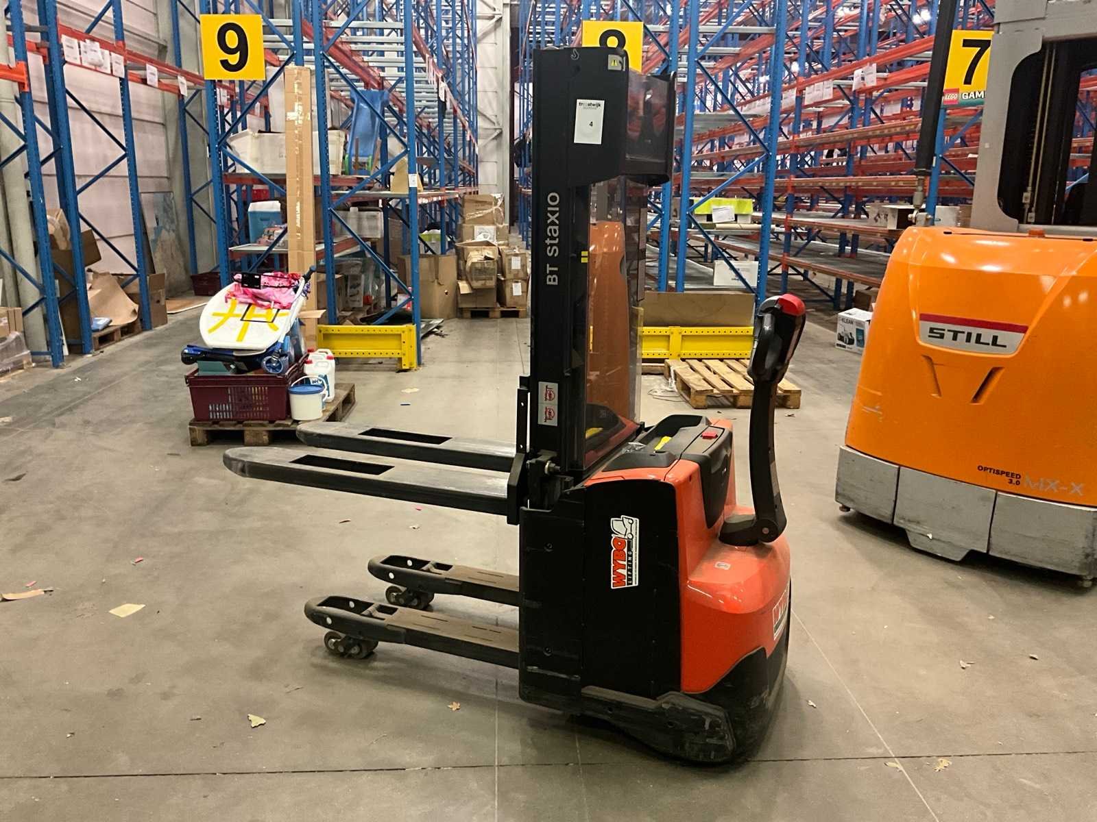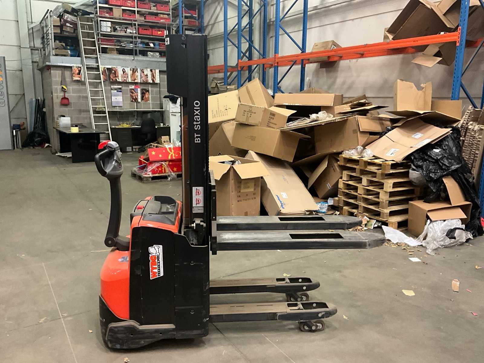 Voorzien van freelift duplex hefmast, transpalette hefstand, Hawker oplader Merk: BT Staxio Type: SWE120L Bouwjaar: 2021 Serienummer: 6820799 Hefvermogen: 1200kg Hefhoogte: 2700mm Lepellengte: 1150mm Afgelezen urenstand: 504 Eigen gewicht: 920kg Minimale doorrijhoogte: 1850mm Totale afmeting L: 1900mm Totale afmeting Breedte: 800mm Totale afmeting Hoogte: 1850mm Accu lader: true