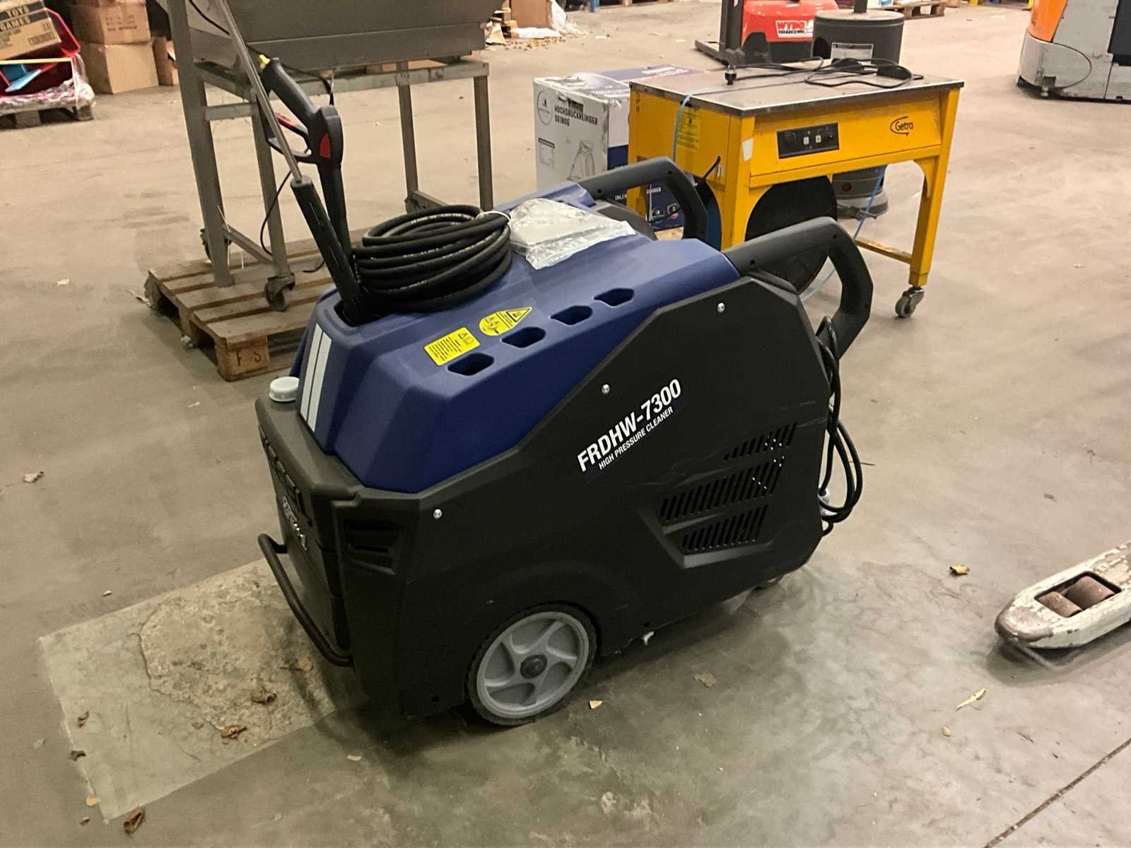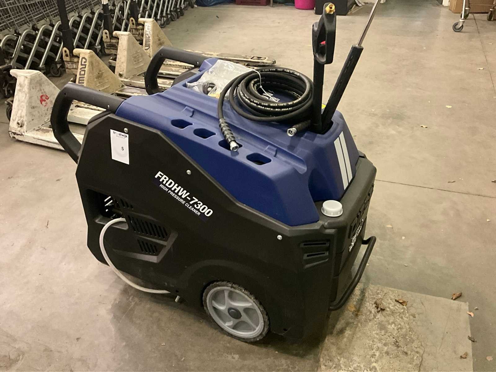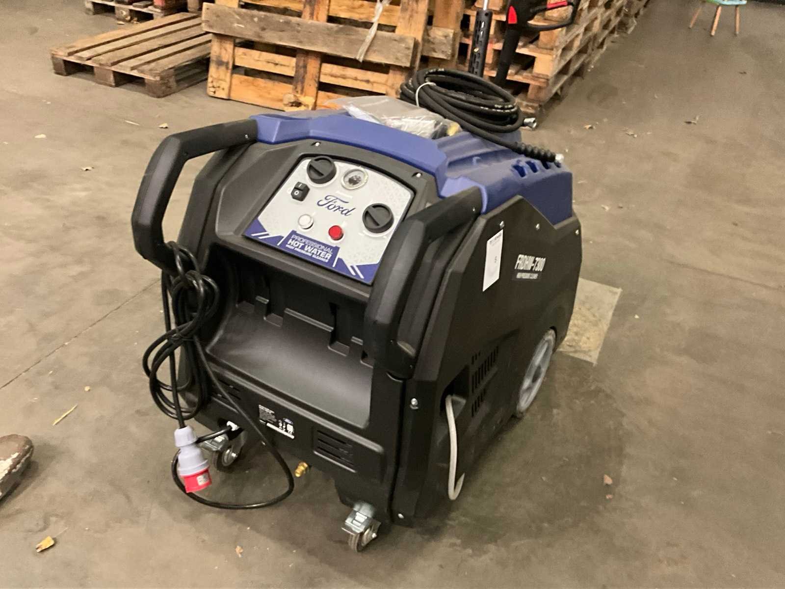 Ongebruikt, voorzien van bijhorende spuitlans met hogedrukslang Merk: Ford Type: FRDHW7300 Bouwjaar: 2025 Serienummer: 36078-00056-SM2400364 Temperatuurbereik max.: 110°c Capaciteit.: 900l/hr Dieselgestookt: true Vermogen: 69kW Aansluiting: 400V Totale afmeting L: 1150mm Totale afmeting Breedte: 700mm Totale afmeting Hoogte: 900mm