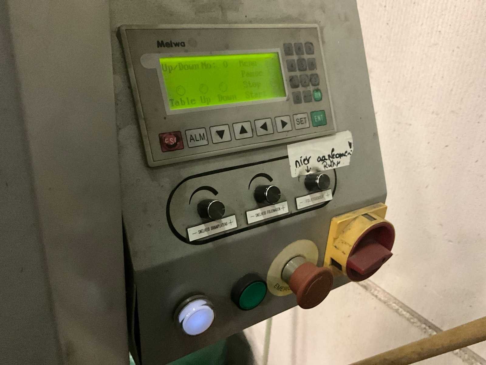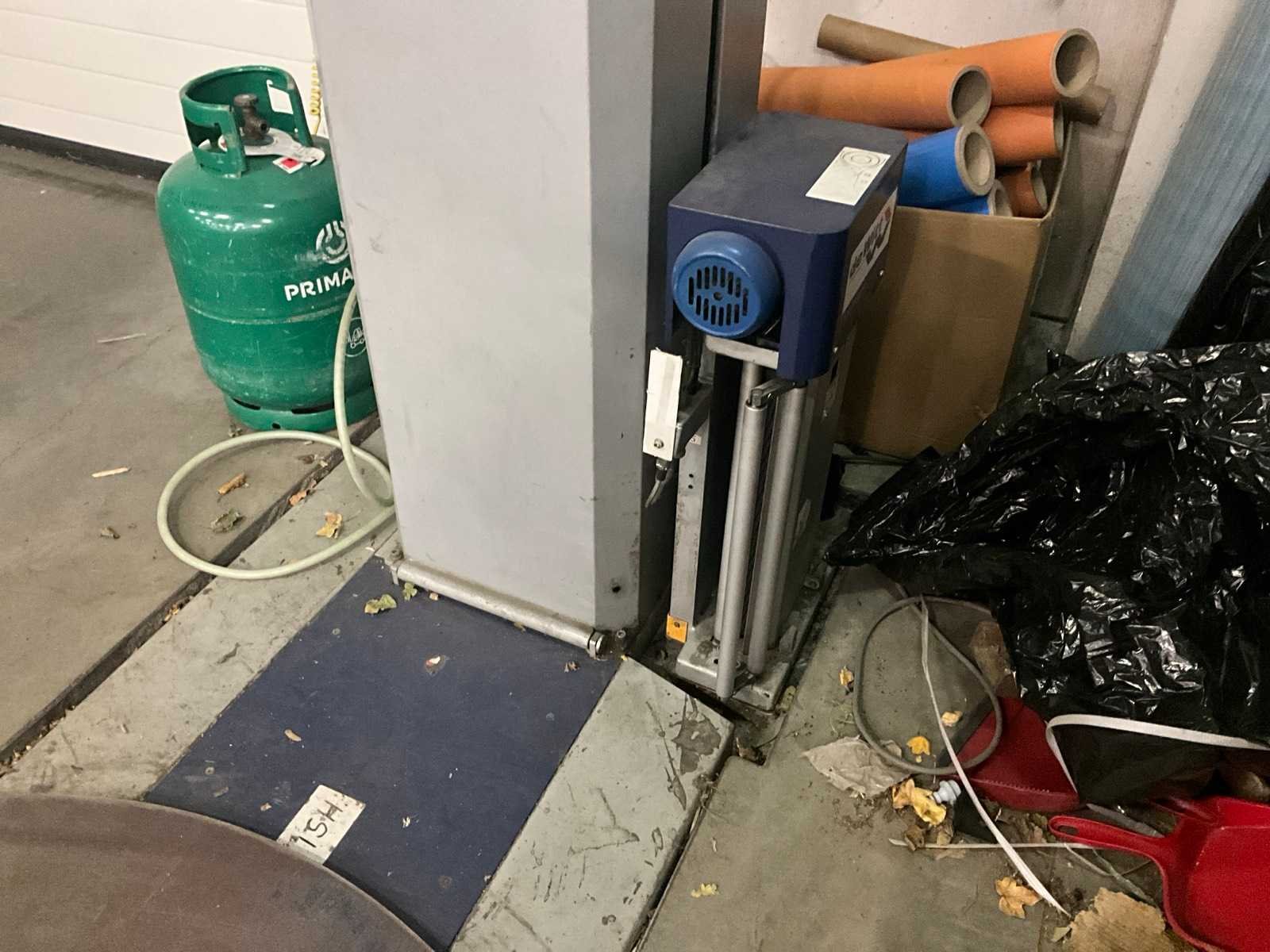 Voorzien van bedieningspaneel, ingebouwd (verzonken) in grondplaat, 3-fase netstroom Merk: Youngsun Pack Europe Type: WP2 Bouwjaar: 2009 Serienummer: 80205872 Plateau Ø: 1650mm Foliebreedte: 450mm Max. hoogte: 2800mm Aansluiting: 220V Totale afmeting L: 3200mm Totale afmeting Breedte: 1650mm Totale afmeting Hoogte: 2800mm