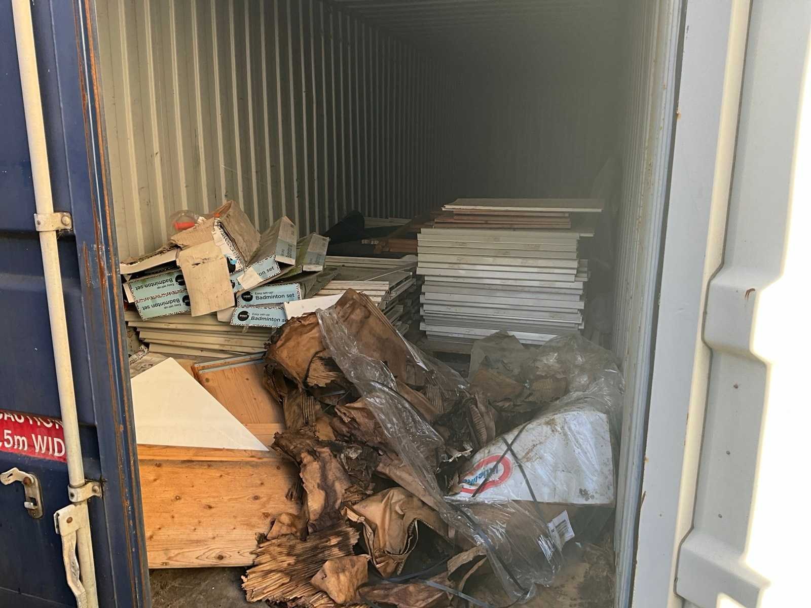 Met inhoud diverse speelgoed en legborden + op dak en ervoor circa 100 pvc vleesbakken Merk: Cobelfred Type: SB45 Lengte (ft): 45 Totale afmeting L: 13500mm Totale afmeting Breedte: 2500mm Totale afmeting Hoogte: 2775mm