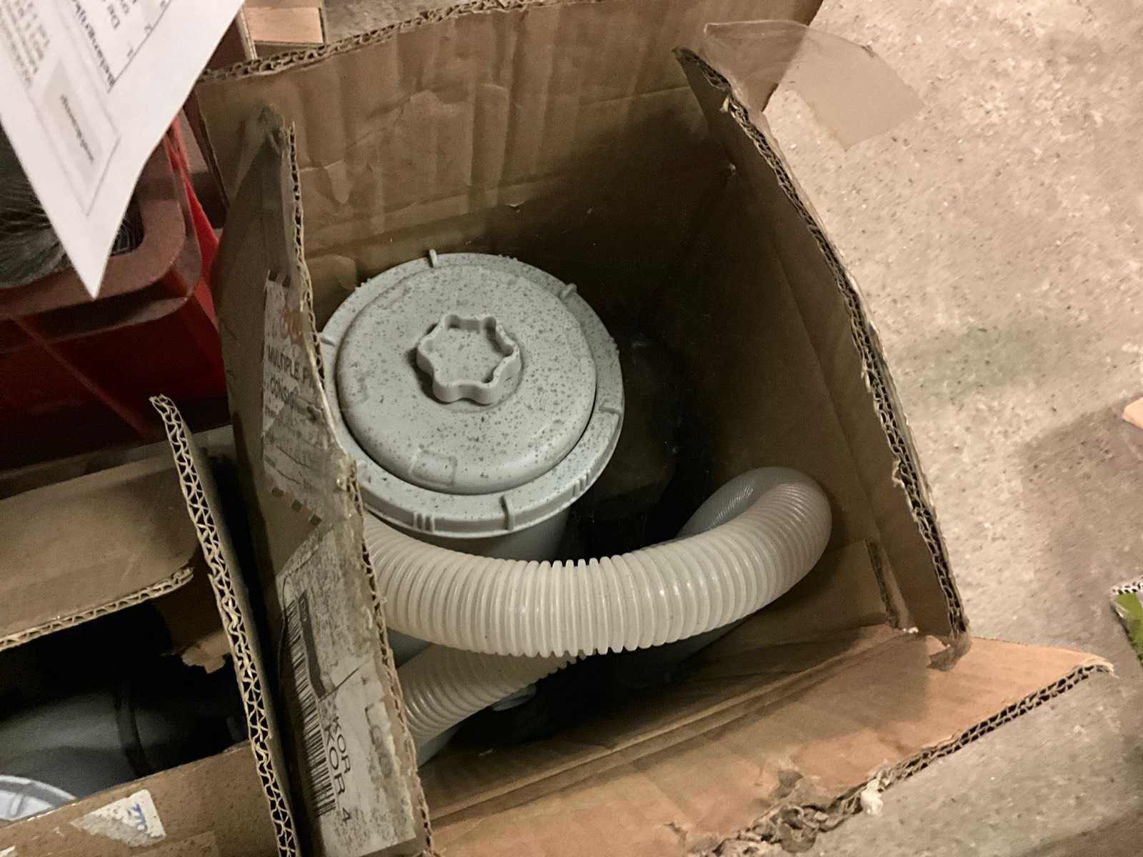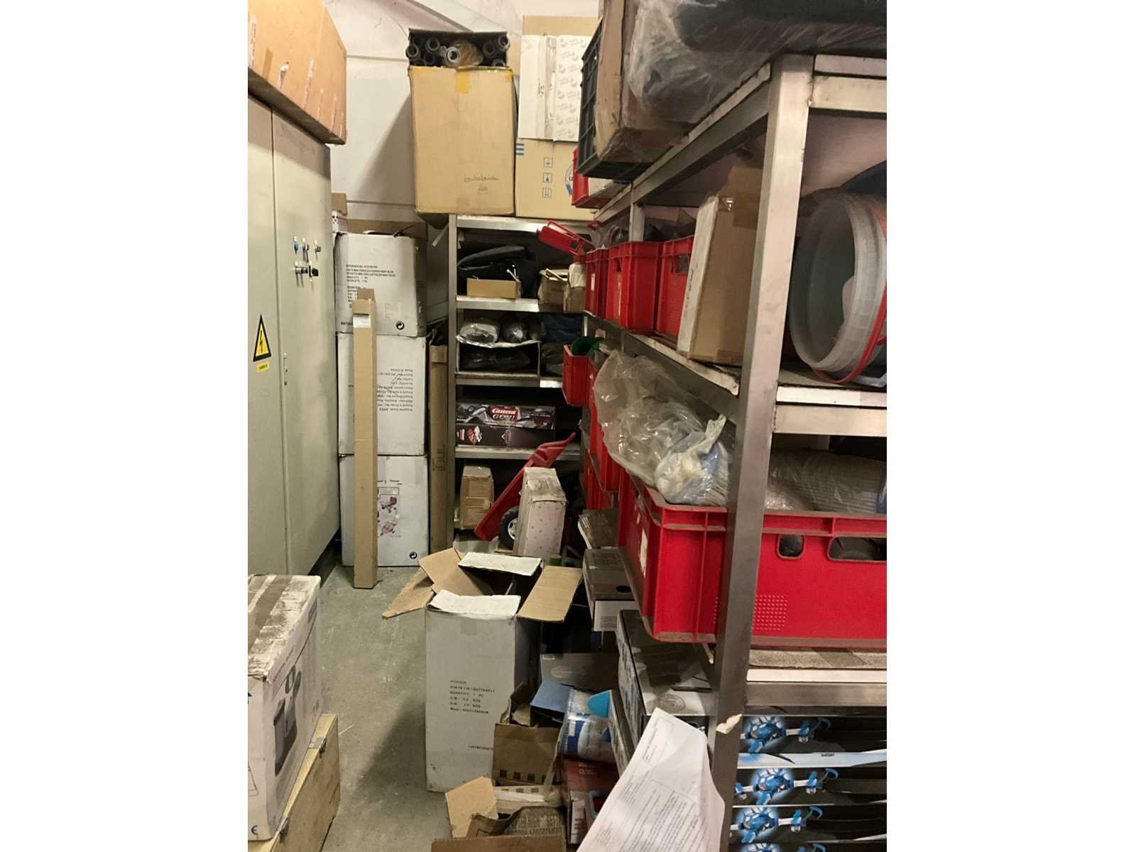 Op zolderverdieping!!, bestaande uit aluminium schuifladder met 16 sporten, RVS magazijnrek met inhoud diverse zwembad onderdelen + speelgoed enz..