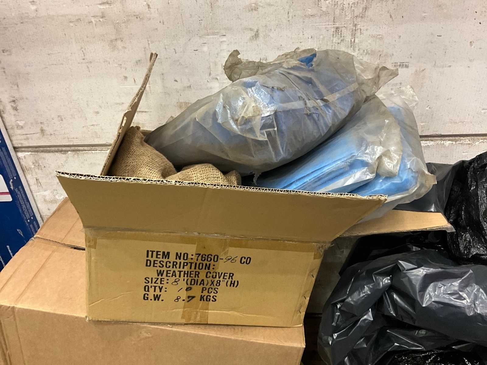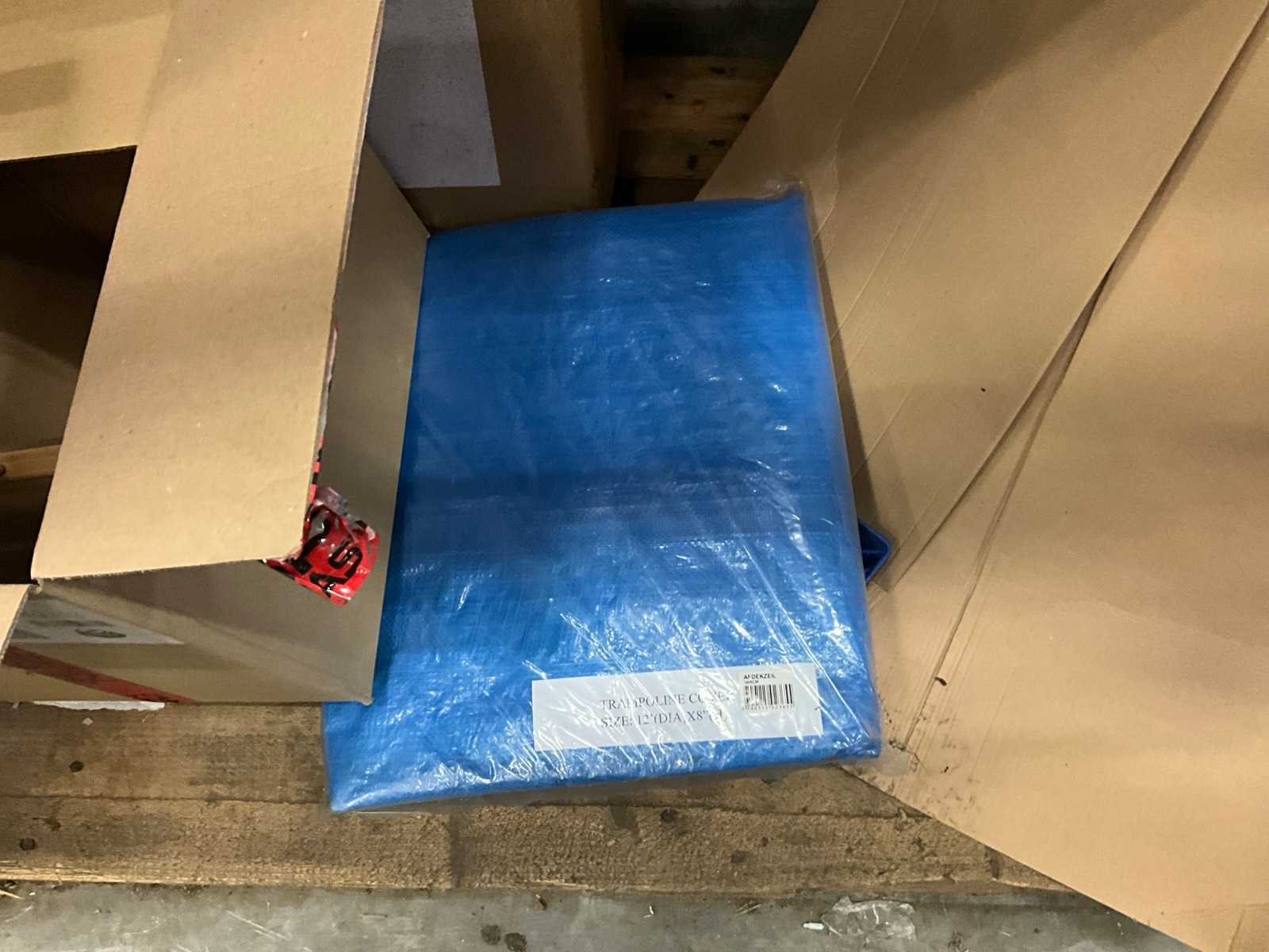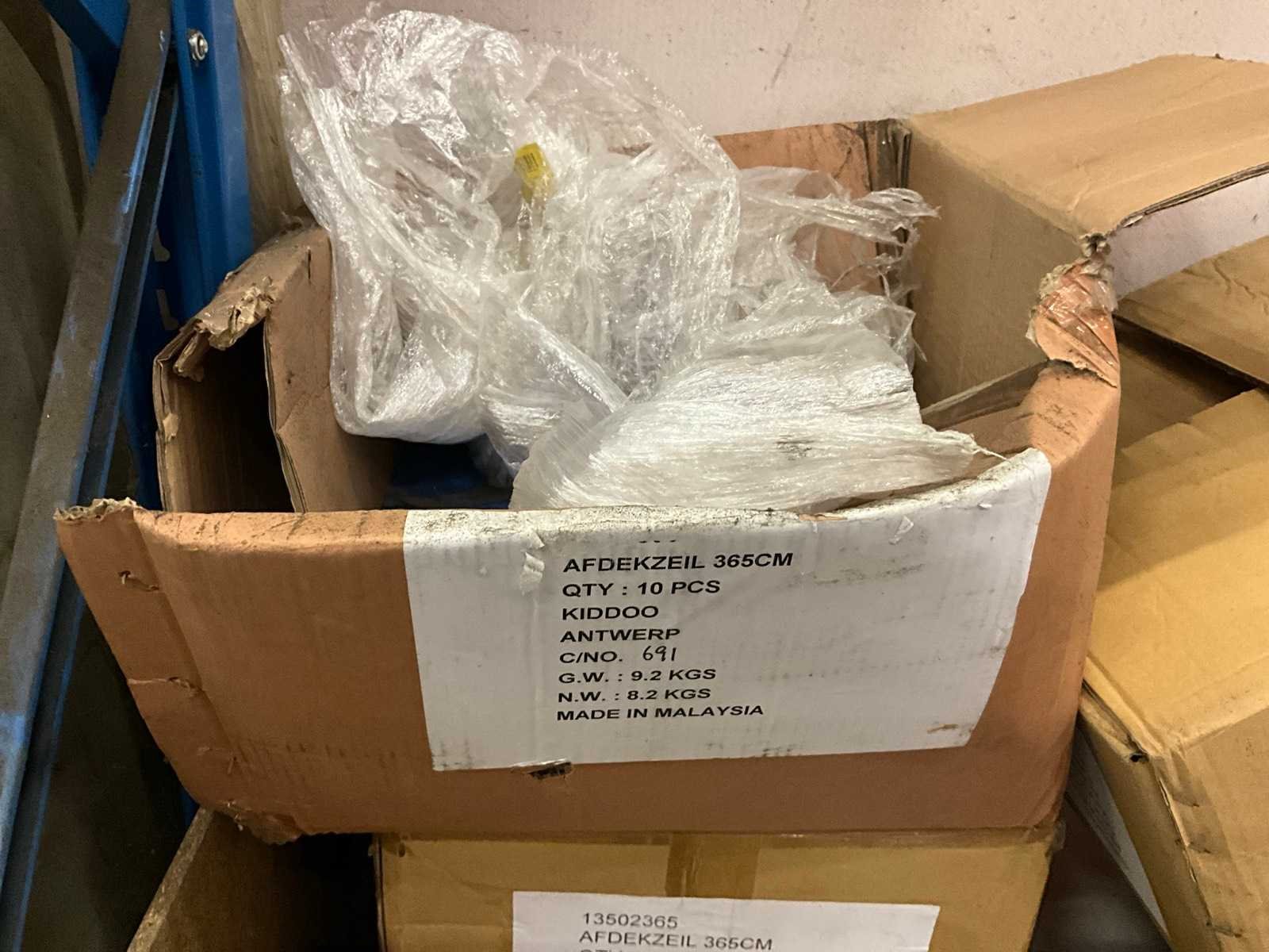 Bestaand uit circa 5 x pallet, LEGO folders, afdekzeilen voor trampoline diameter 365 cm, pvc vlees bakken met inhoud enz..