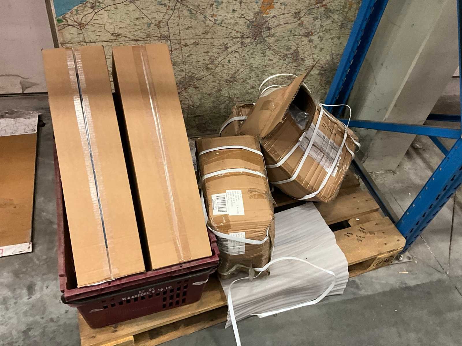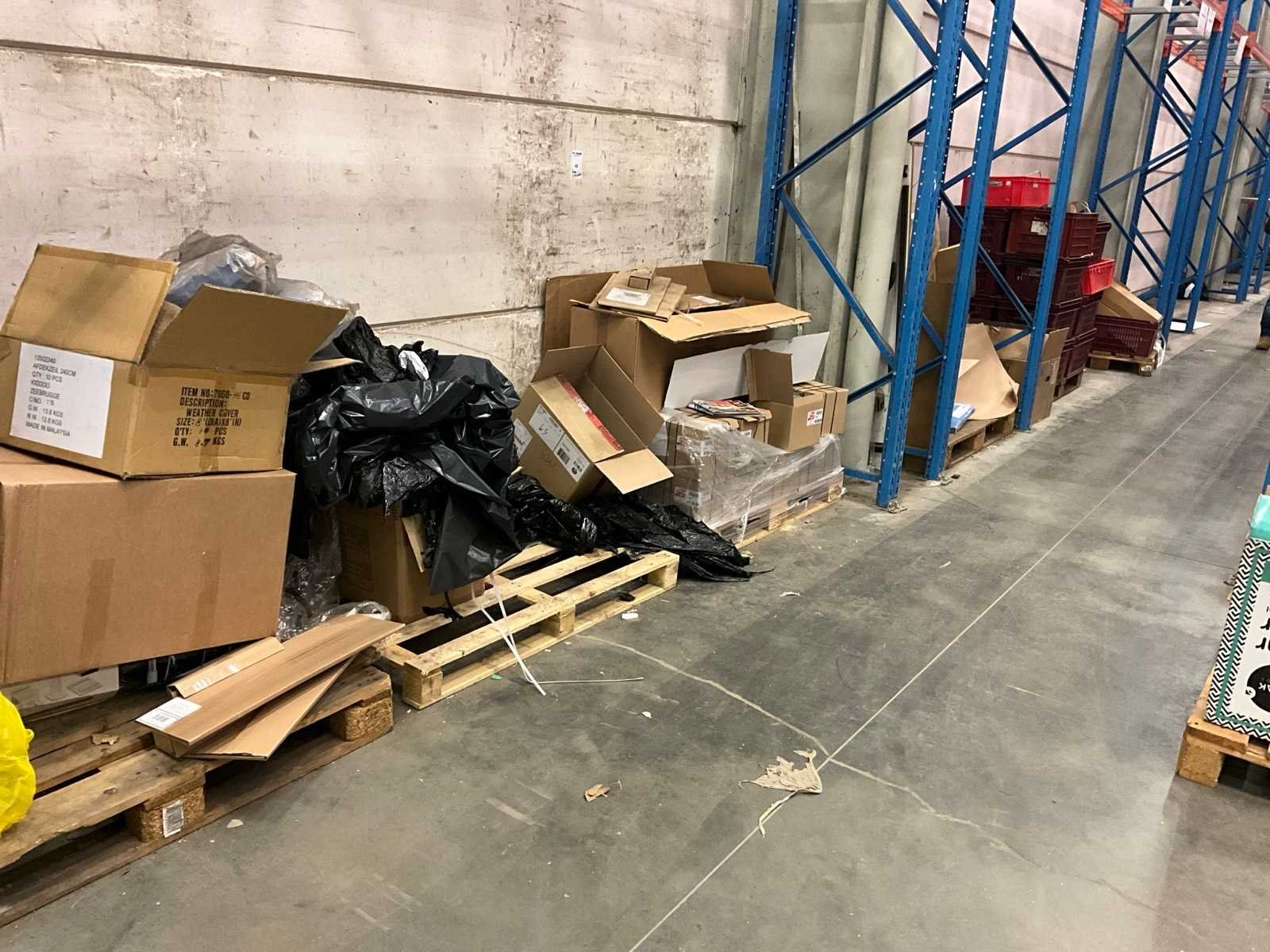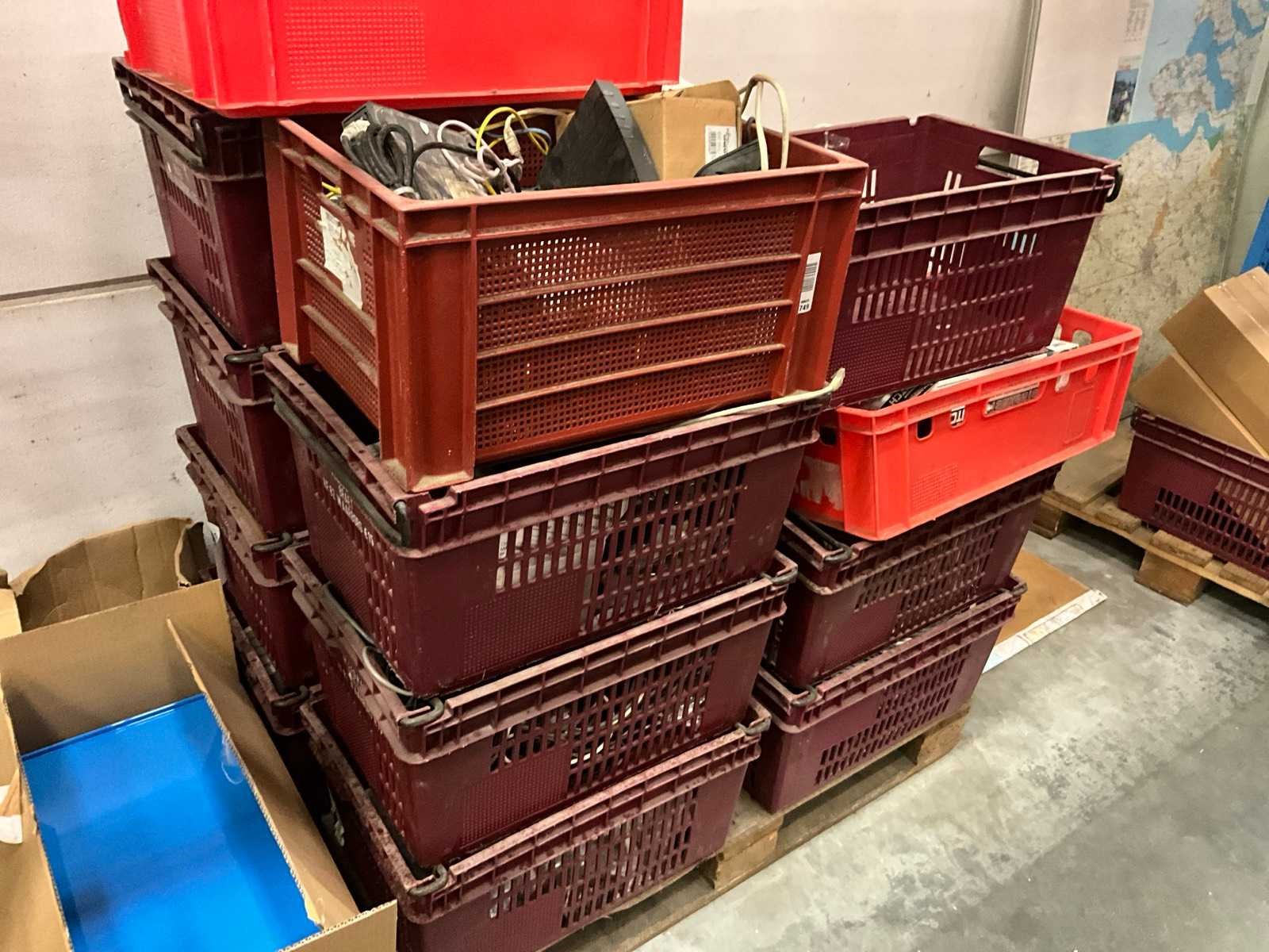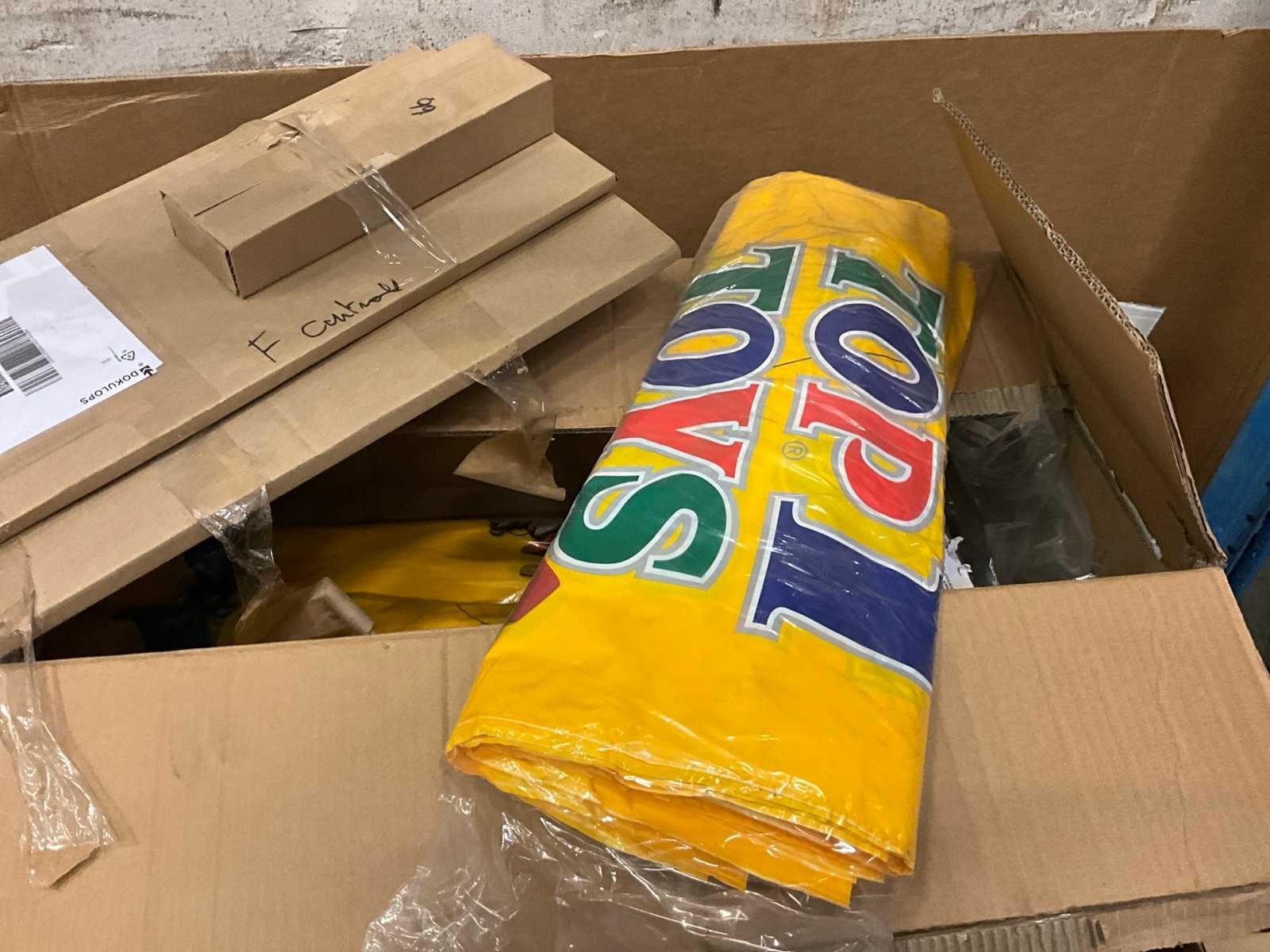 Bestaand uit circa 5 x pallet, LEGO folders, afdekzeilen voor trampoline diameter 365 cm, pvc vlees bakken met inhoud enz..