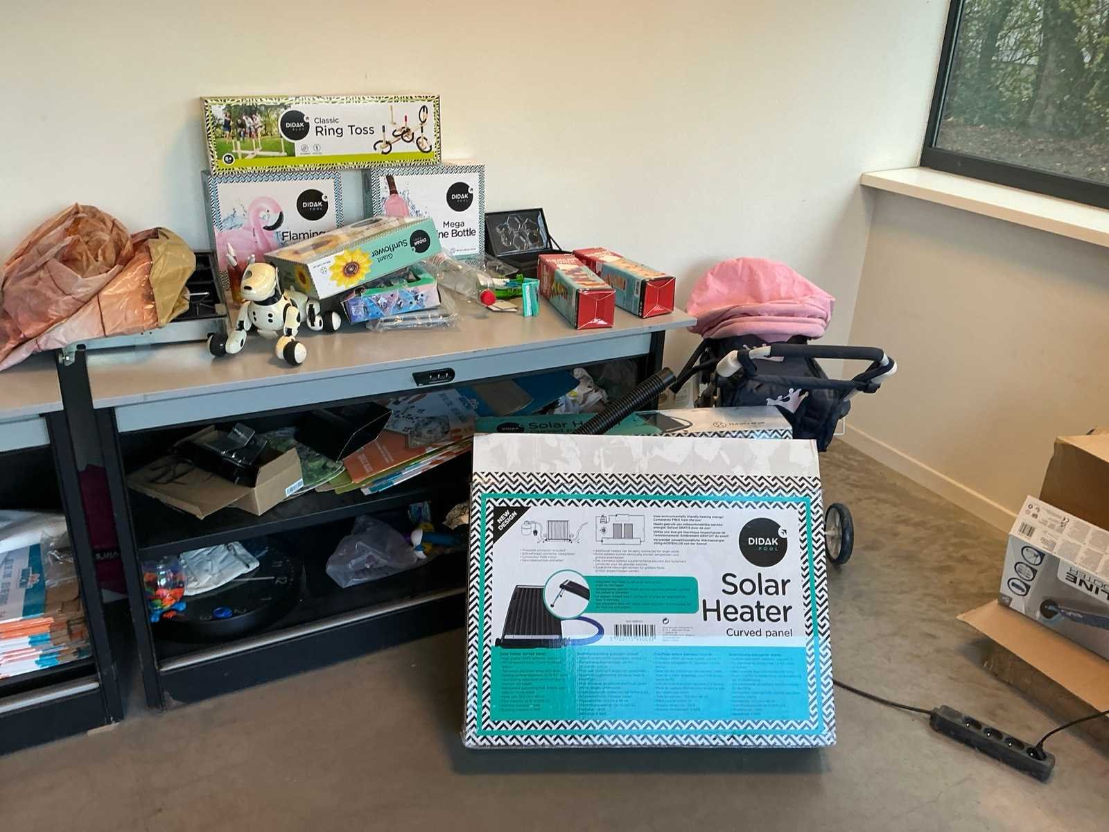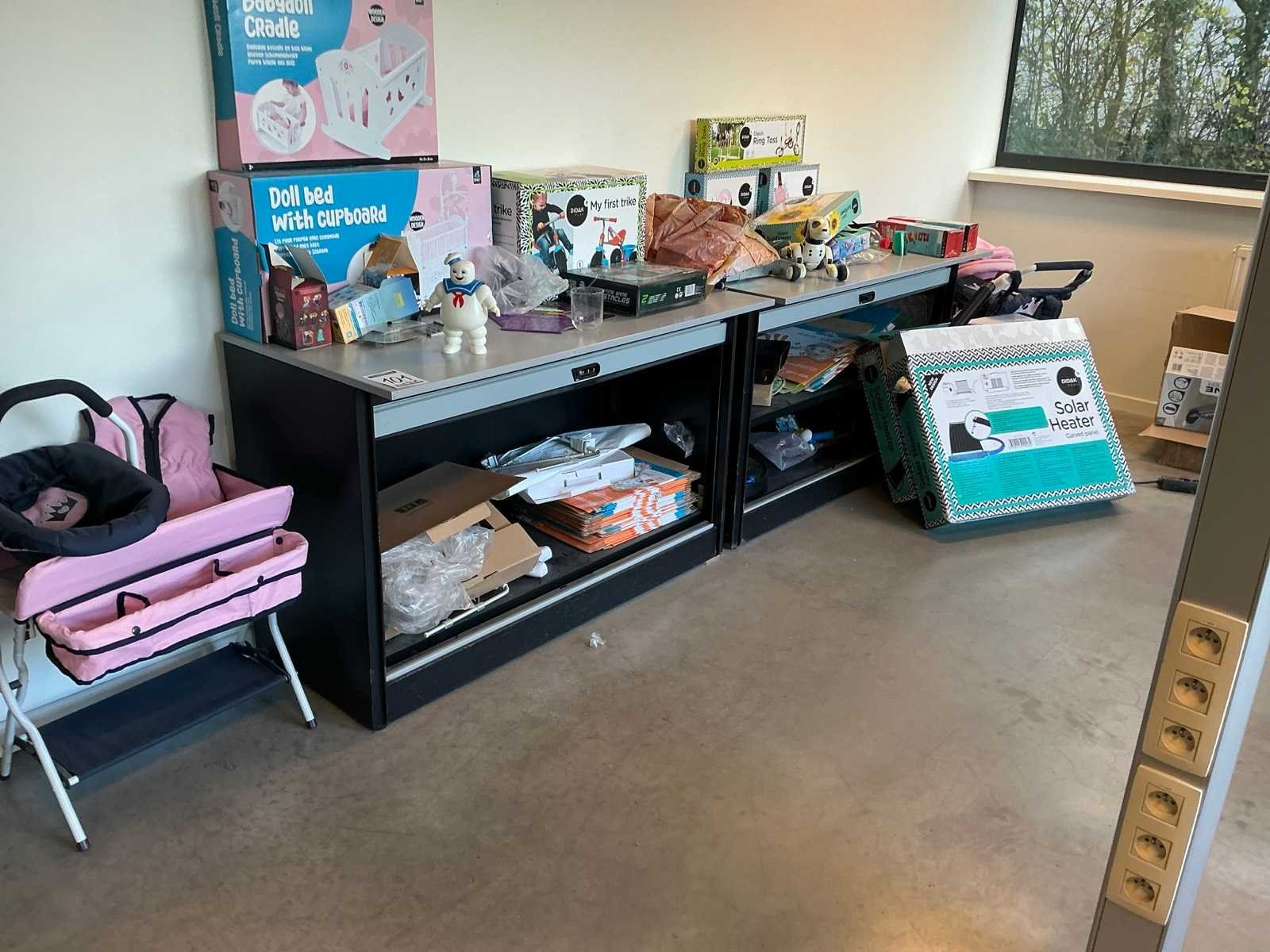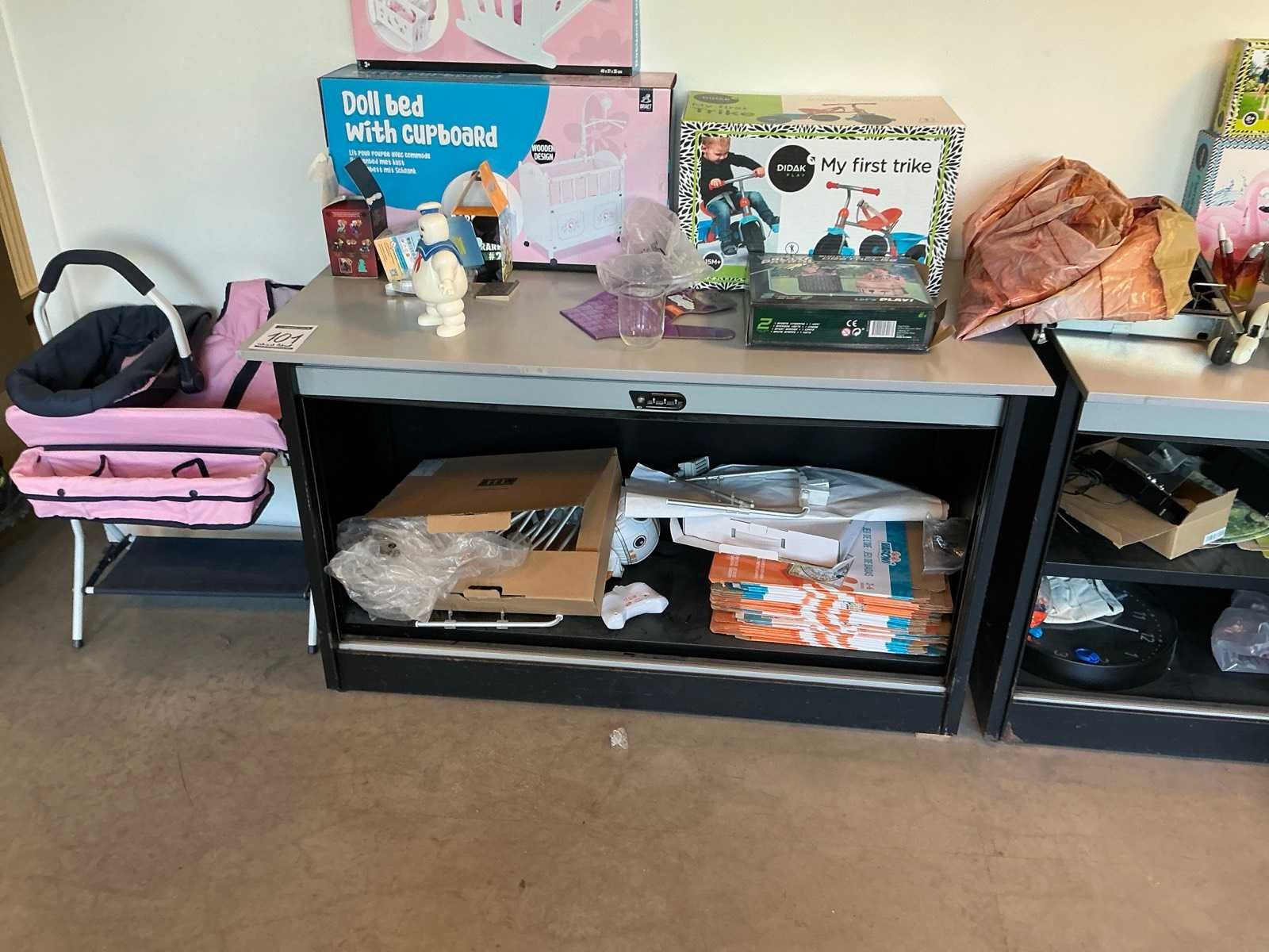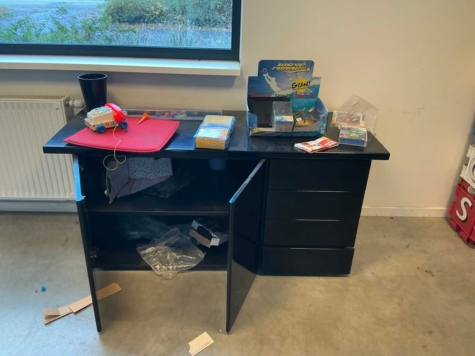 Bestaande uit 2 lage rolluikkasten, 1 buffetkast, 1 fauteuil, kleine partij speelgoed/ flatscreen televisie niet inbegrepen