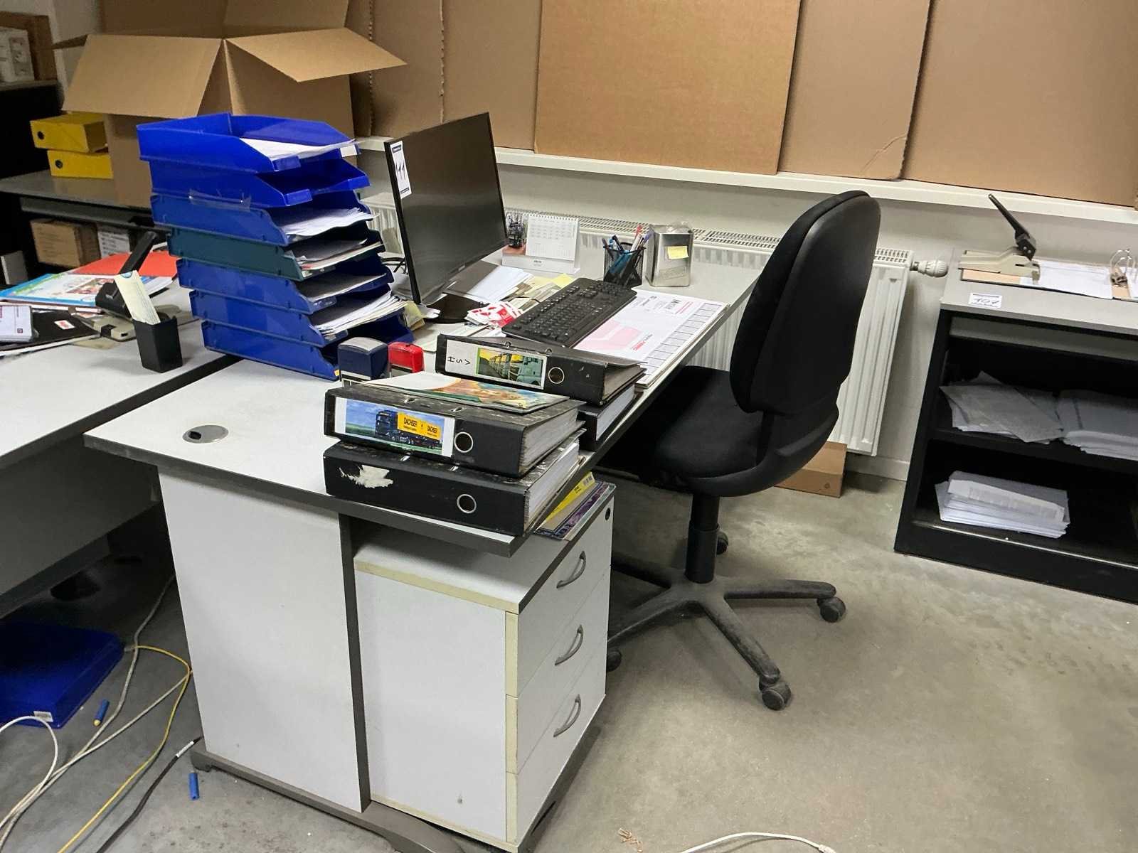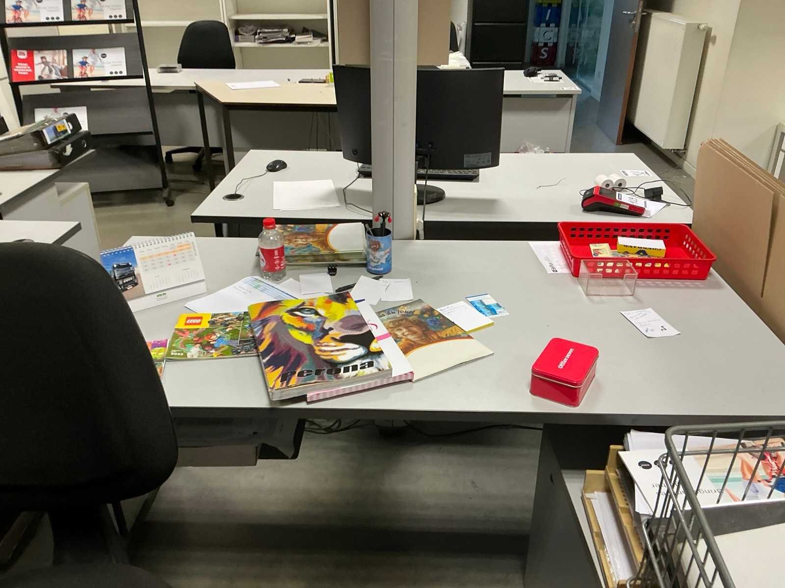 Diverse afmetingen; inclusief 4 mobiele stoelen/ inhoud bureaus niet inbegrepen