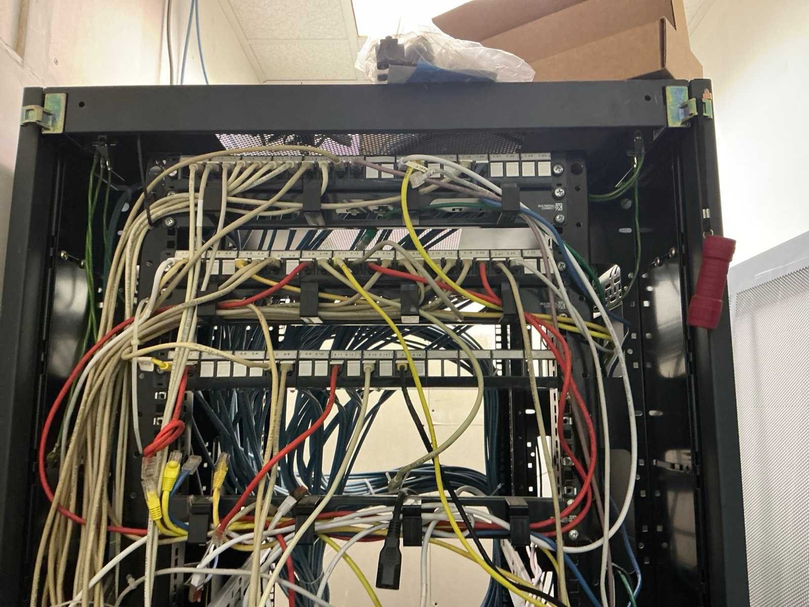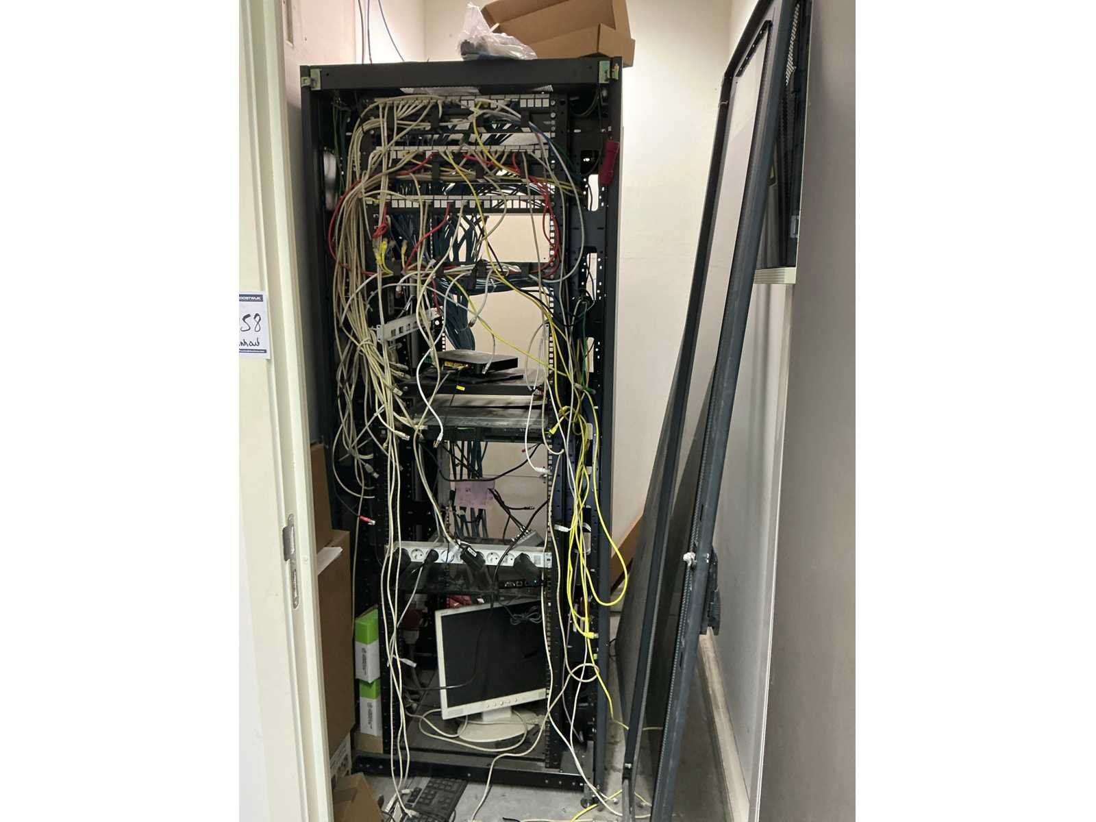 Inhoud patchkast bestaande uit: monitor, toetsenbord, modem, switch en diverse kabels Lengte: 94cm Breedte: 80cm Hoogte: 200cm