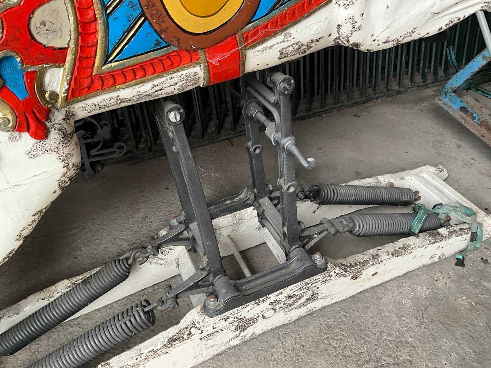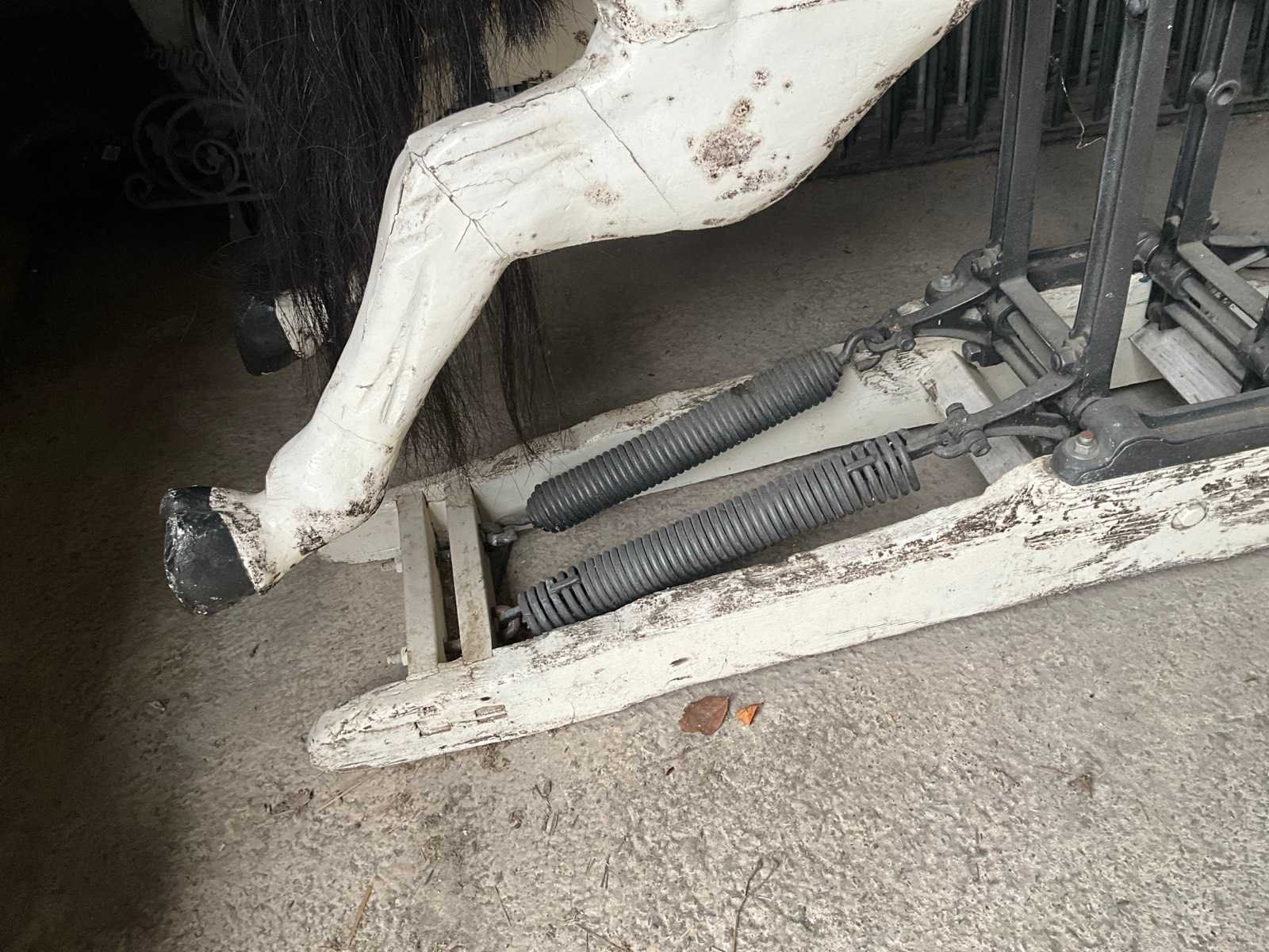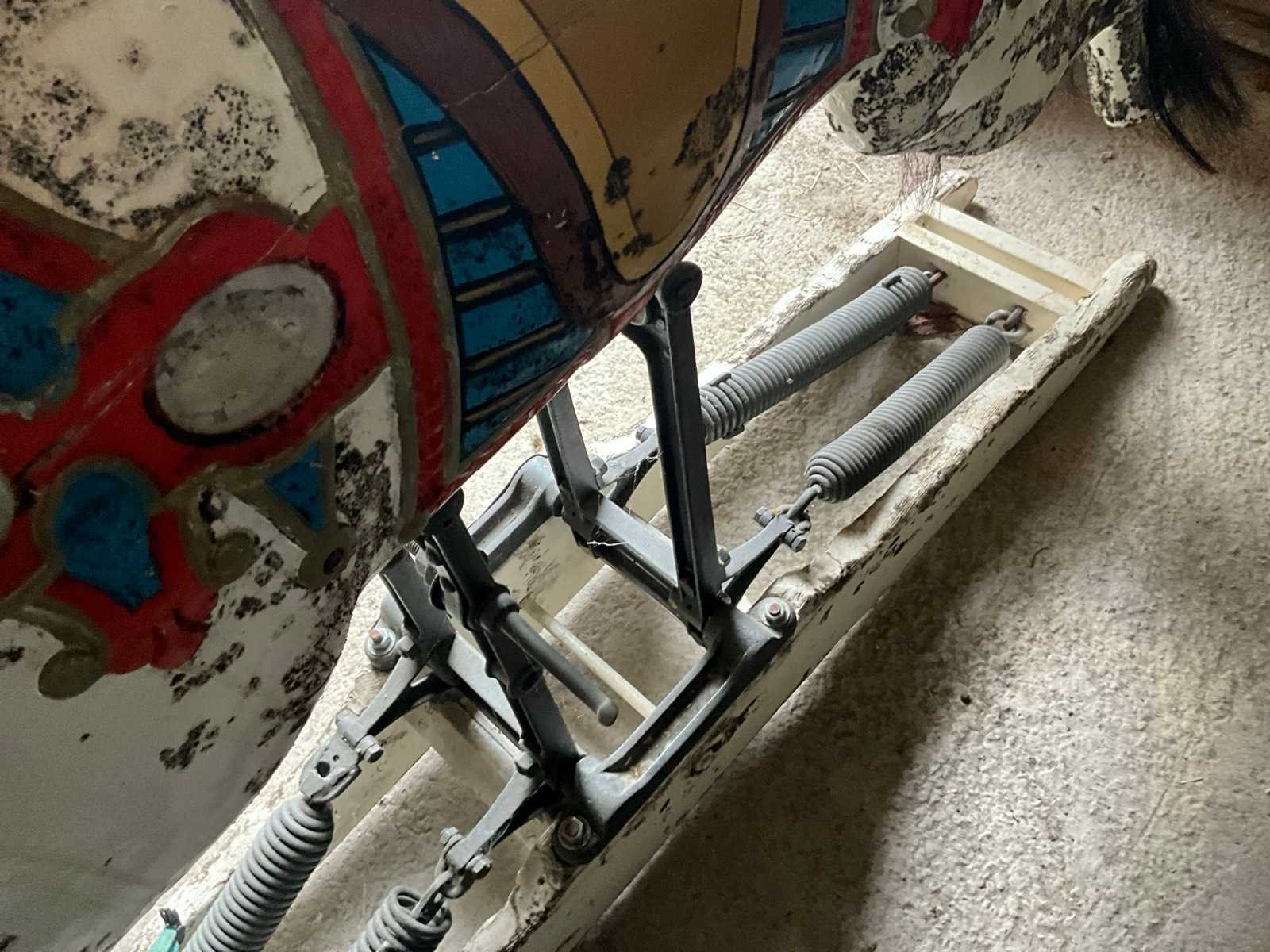 Verend op houten staander Lengte: 90cm Breedte: 35cm Hoogte: 100cm Materiaal: Hout