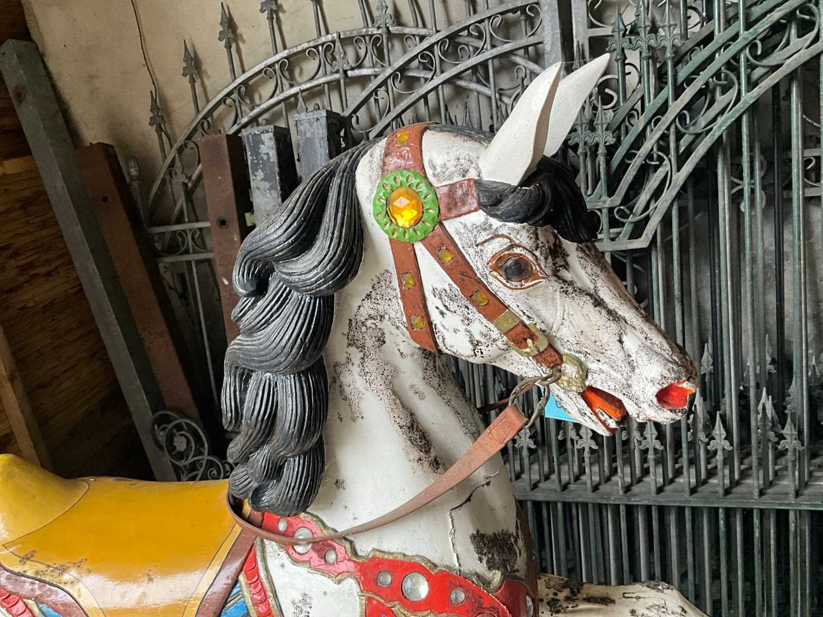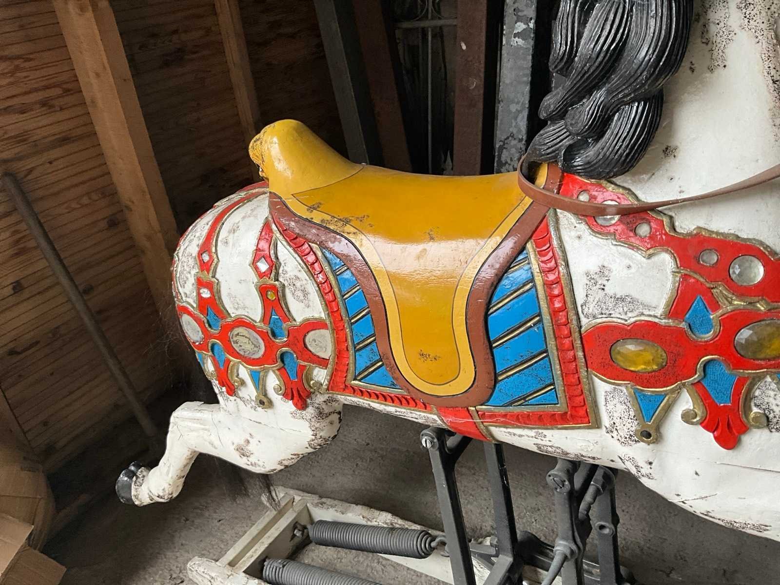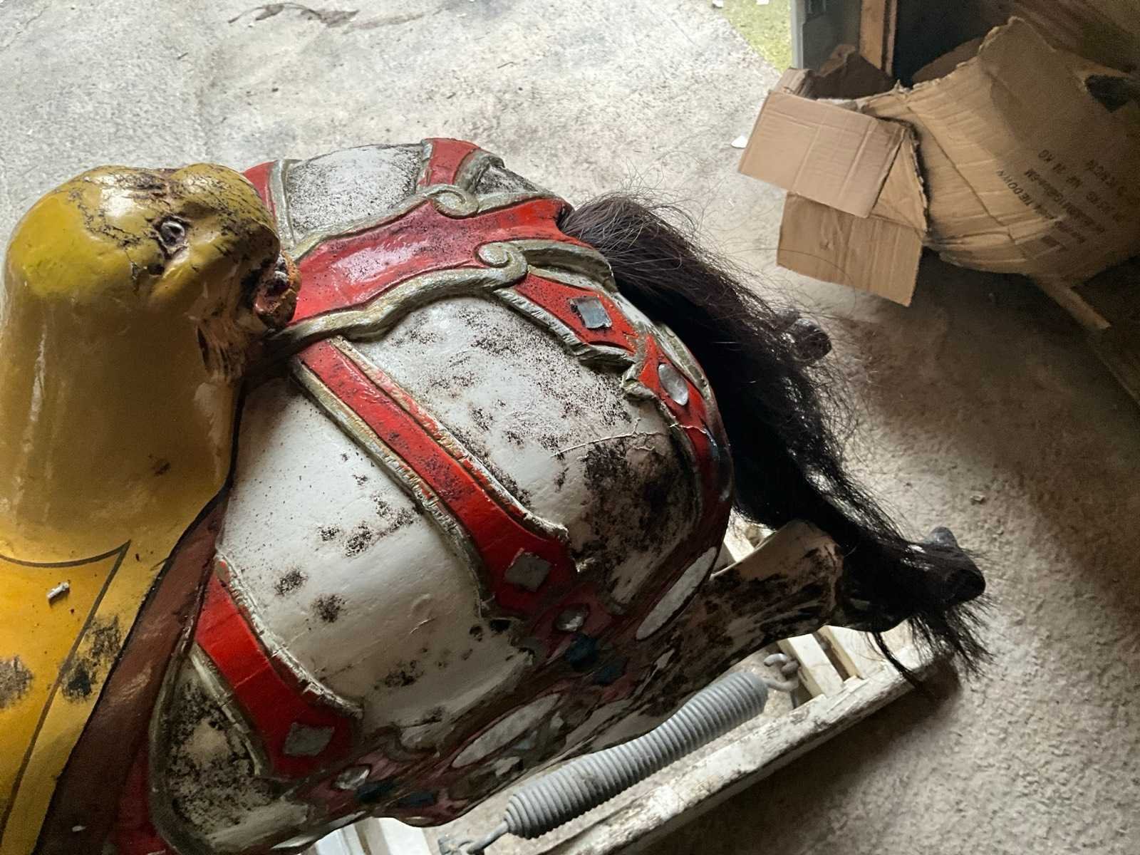 Verend op houten staander Lengte: 90cm Breedte: 35cm Hoogte: 100cm Materiaal: Hout