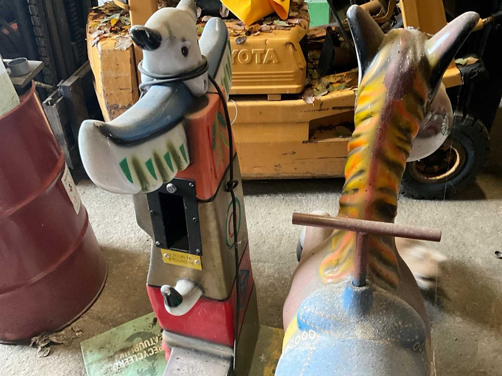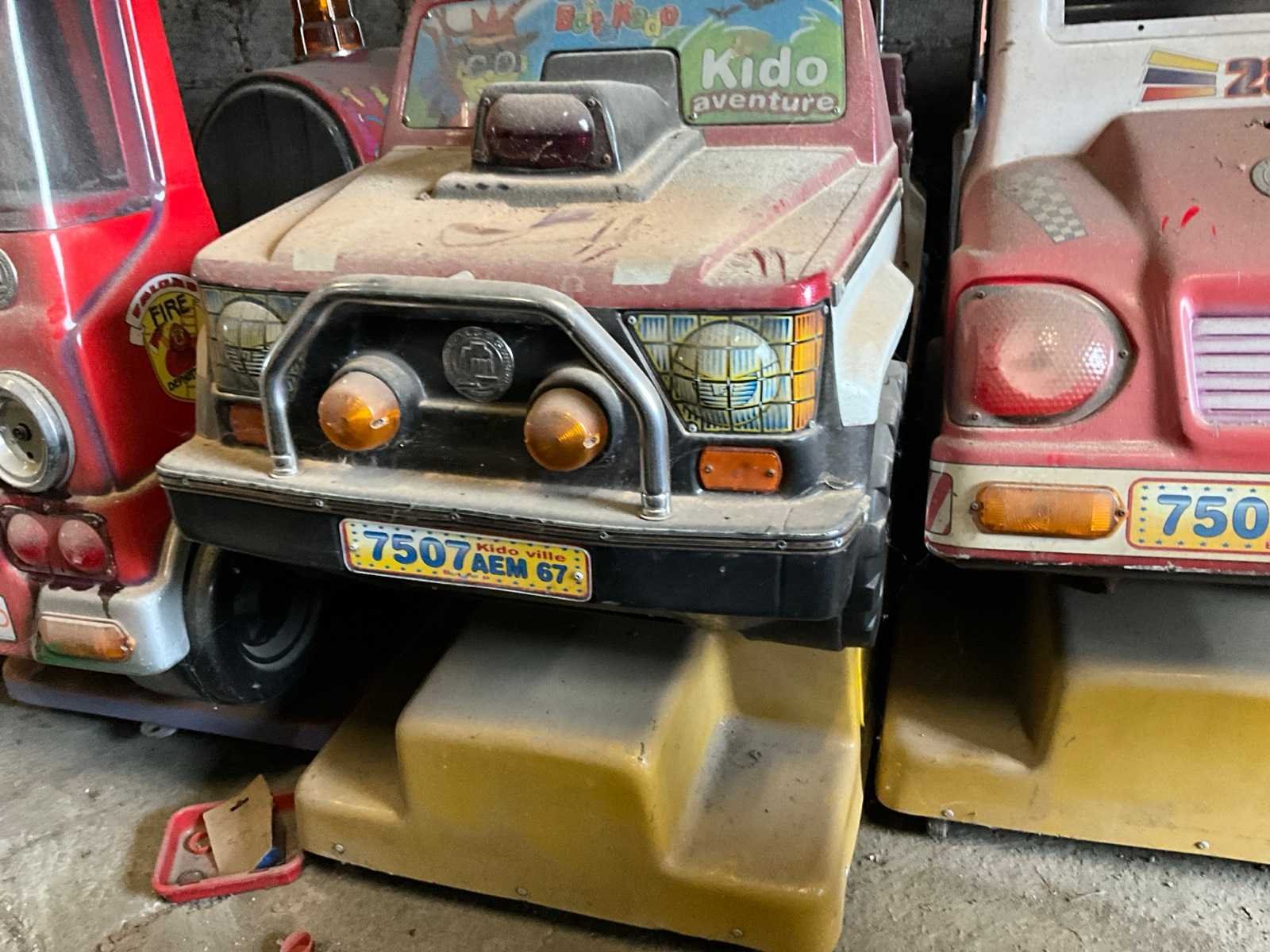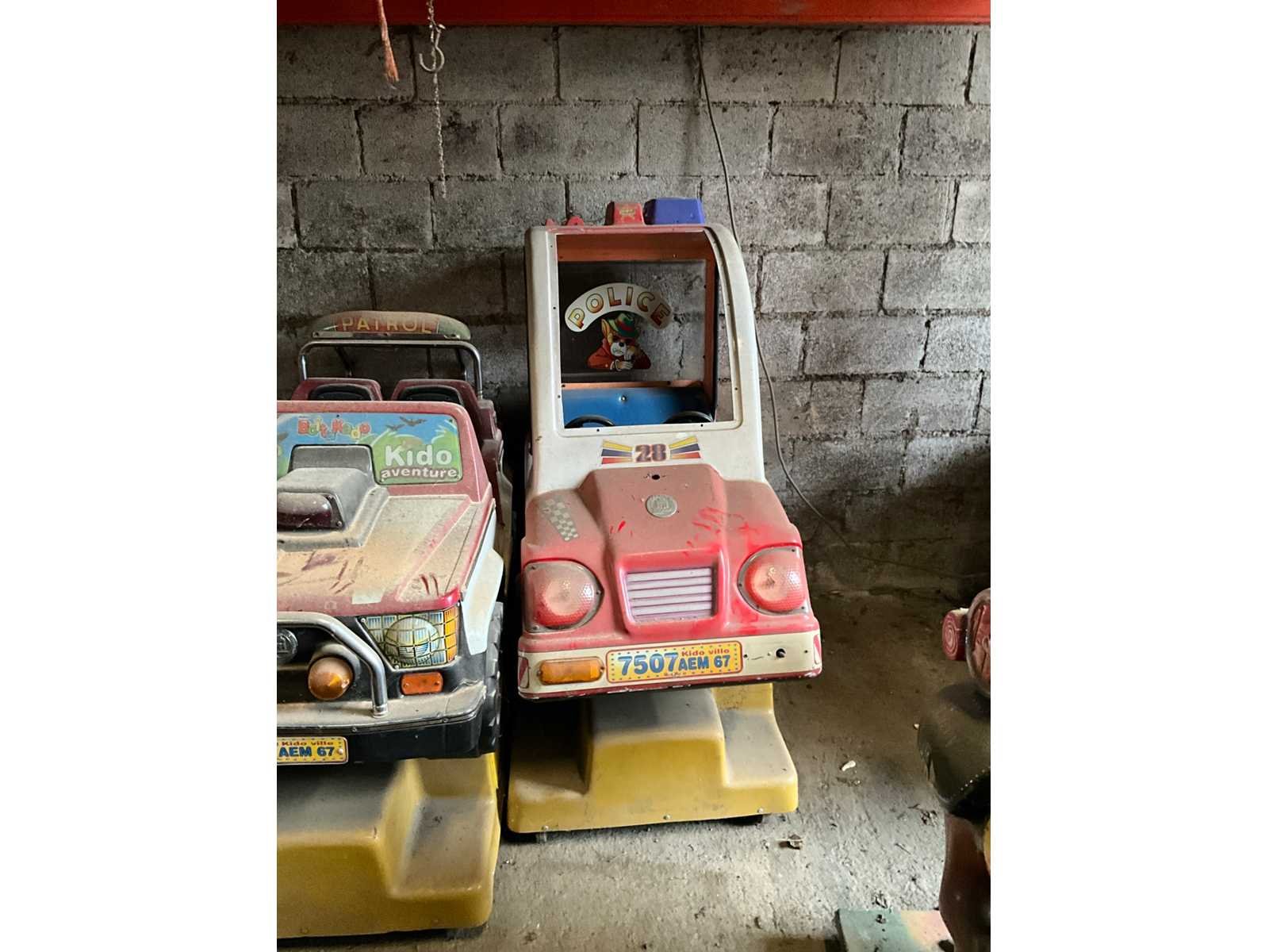 4 diverse kiddierides waaronder paard, politiewagen, raceauto en brandweerwagen waaronder met afmeting:120x80x120cm, 70x110x150cm, 70x120x100cm en 70x110x105cm Merk: Falgas
