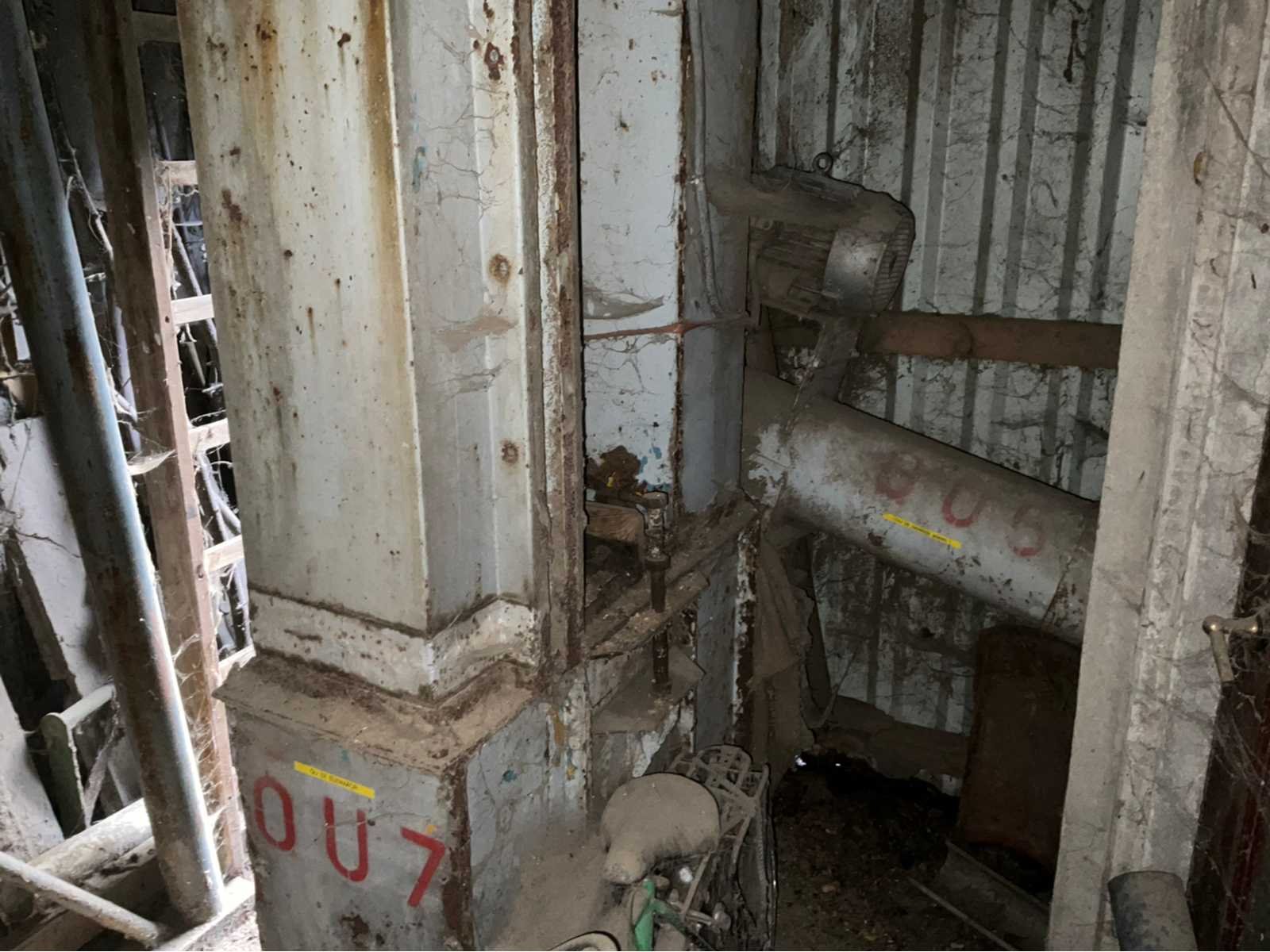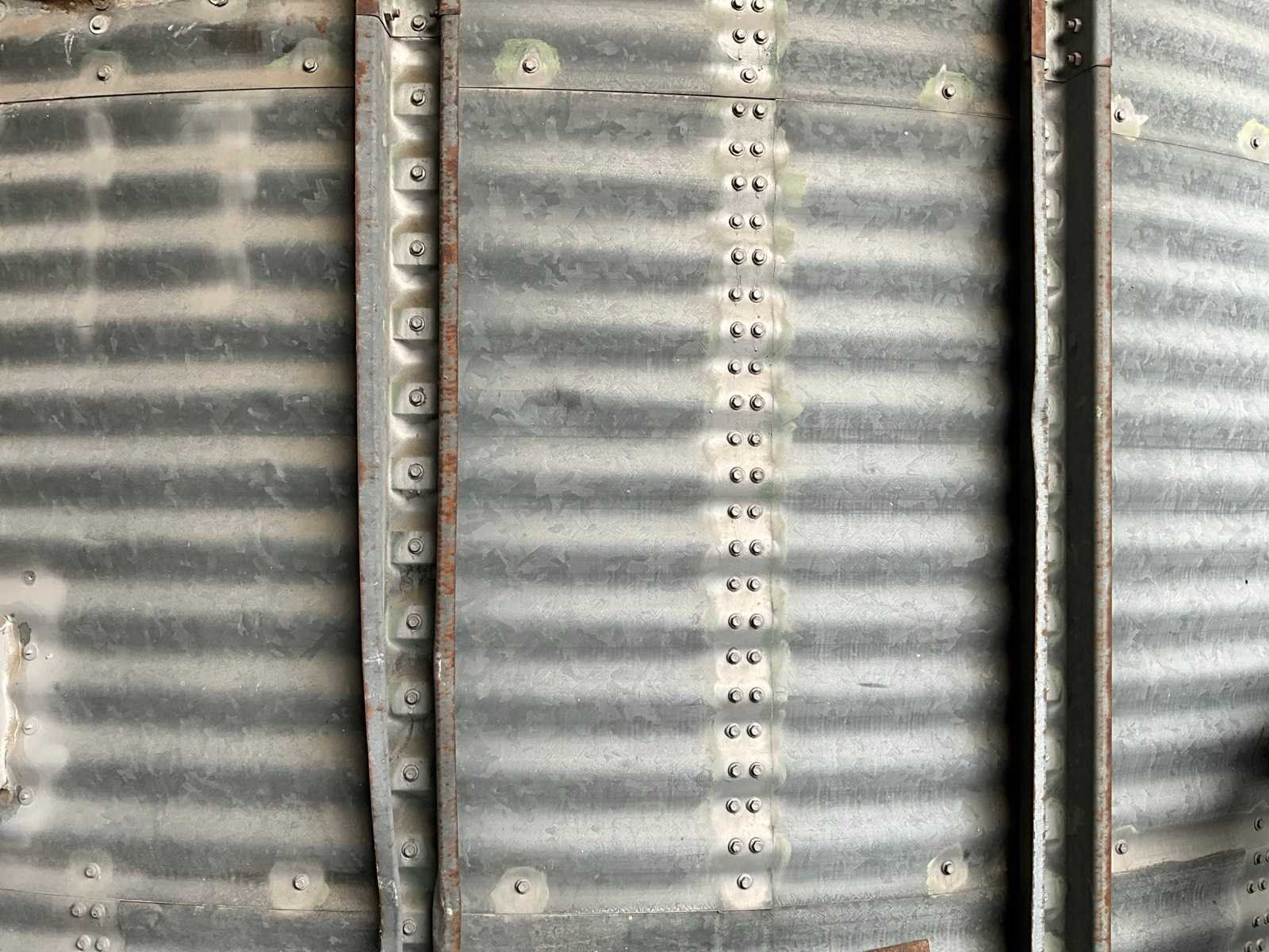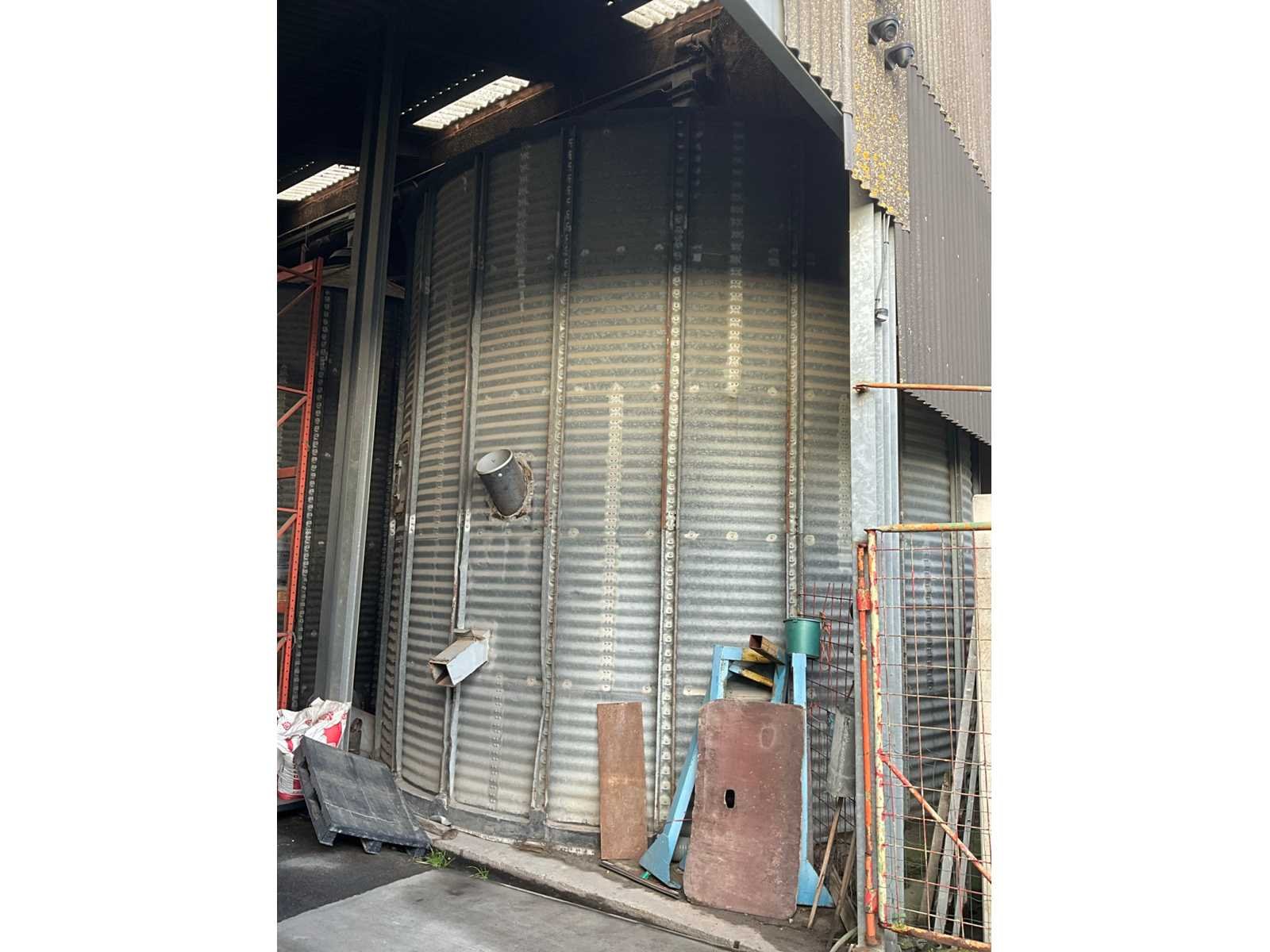 Mécano constructie met geboute gegolfde galva platen, + bovenlopende toevoer vijzel buis met steunvoeten en aftakbuizen, +1x uitdraaivijzel met electromotor, +opvoer ketting verticale opvoerband met bakjes, + bijhorende statieven en vijzelmotoren, SILO’S staan binnen en dienen door de koper te worden gedemonteerd en geladen. Demontage + transport volledig ten laste van de koper. Diameter ca.: 6000mm Totale afmeting L: 6000mm Totale afmeting Breedte: 6000mm Totale afmeting Hoogte: 5500mm