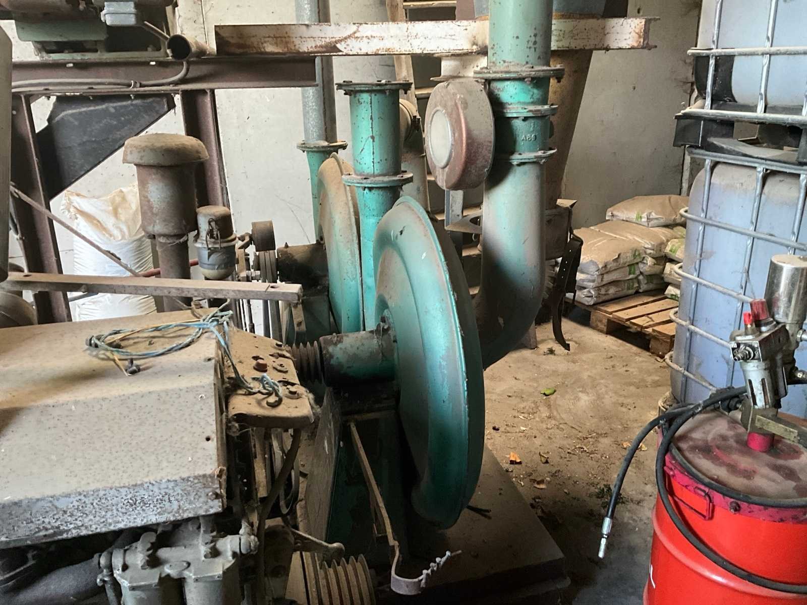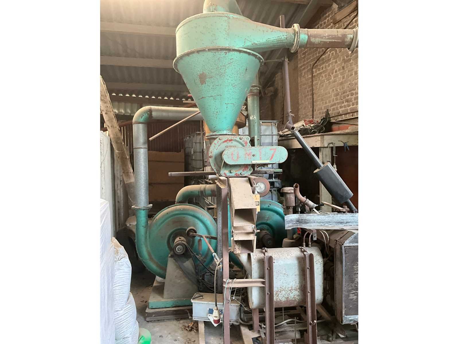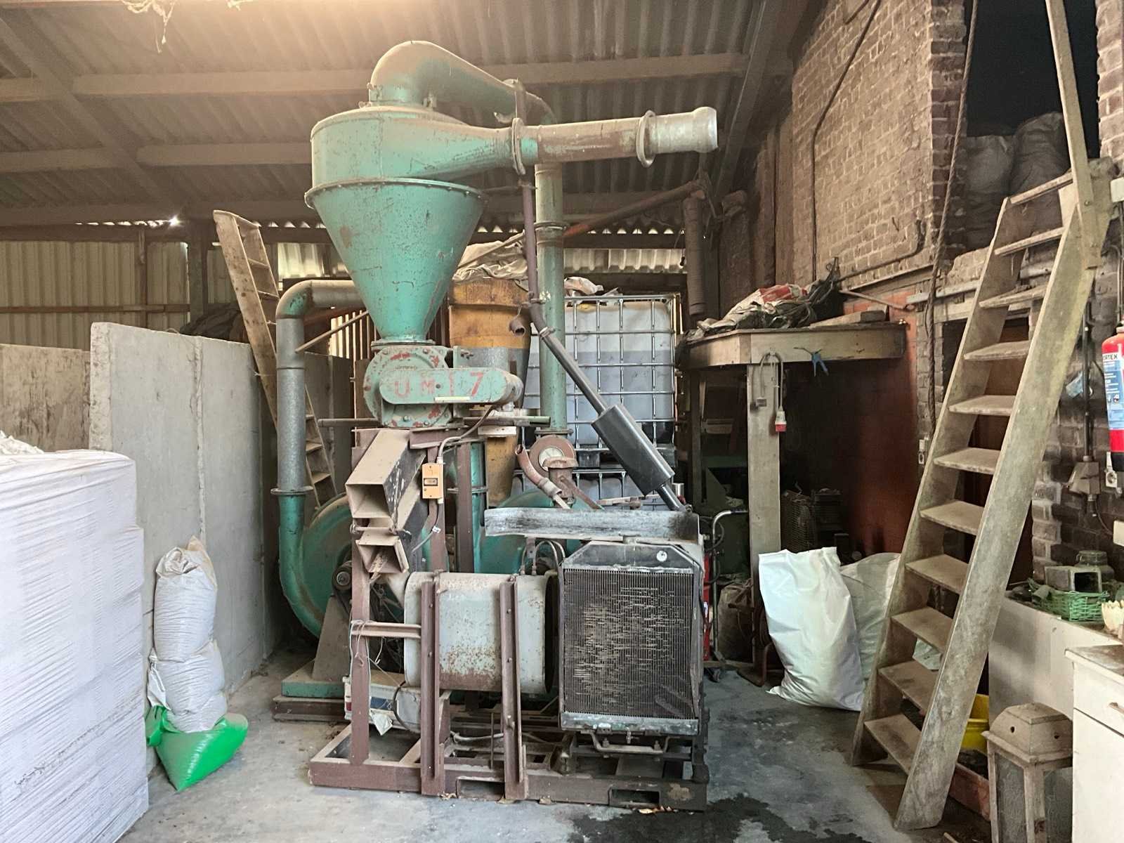 Bestaand uit 4 cilinder dieselmotor Perkins met V-snaar aandrijving, 2x zuig turbine Neuero diameter 900 mm, 2x sicloon, brandstoftank, graan doorvoer molen met electromotor, zonder verdere gegevens Demontage + transport volledig ten laste van de koper. Merk: Neuero Type: Self made Afmeting l: 2300mm Afmeting b: 2500mm Afmeting h: 3000mm