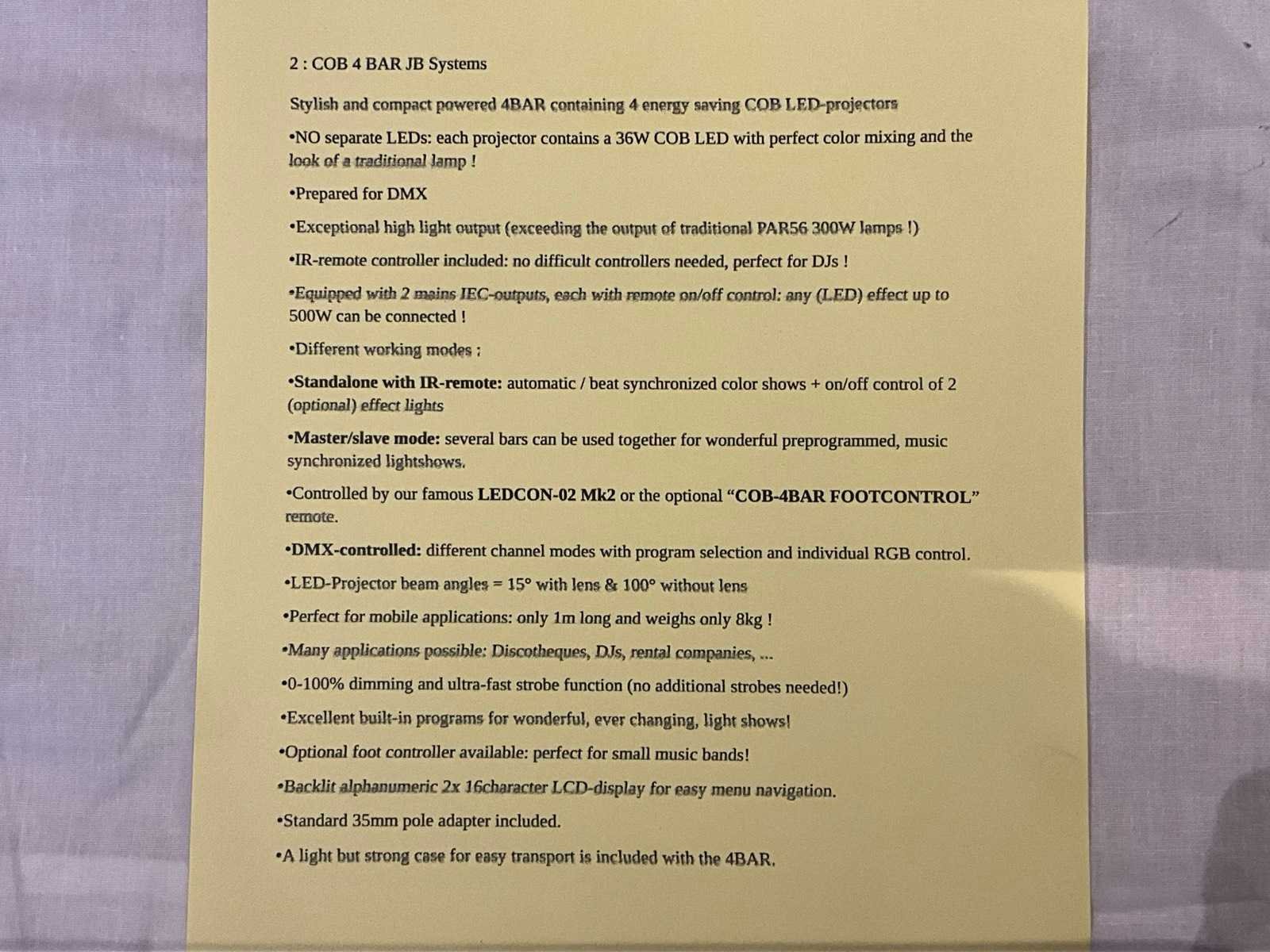 In originele gesloten verpakking Merk: JBSYSTEMS Type: COB-4BAR