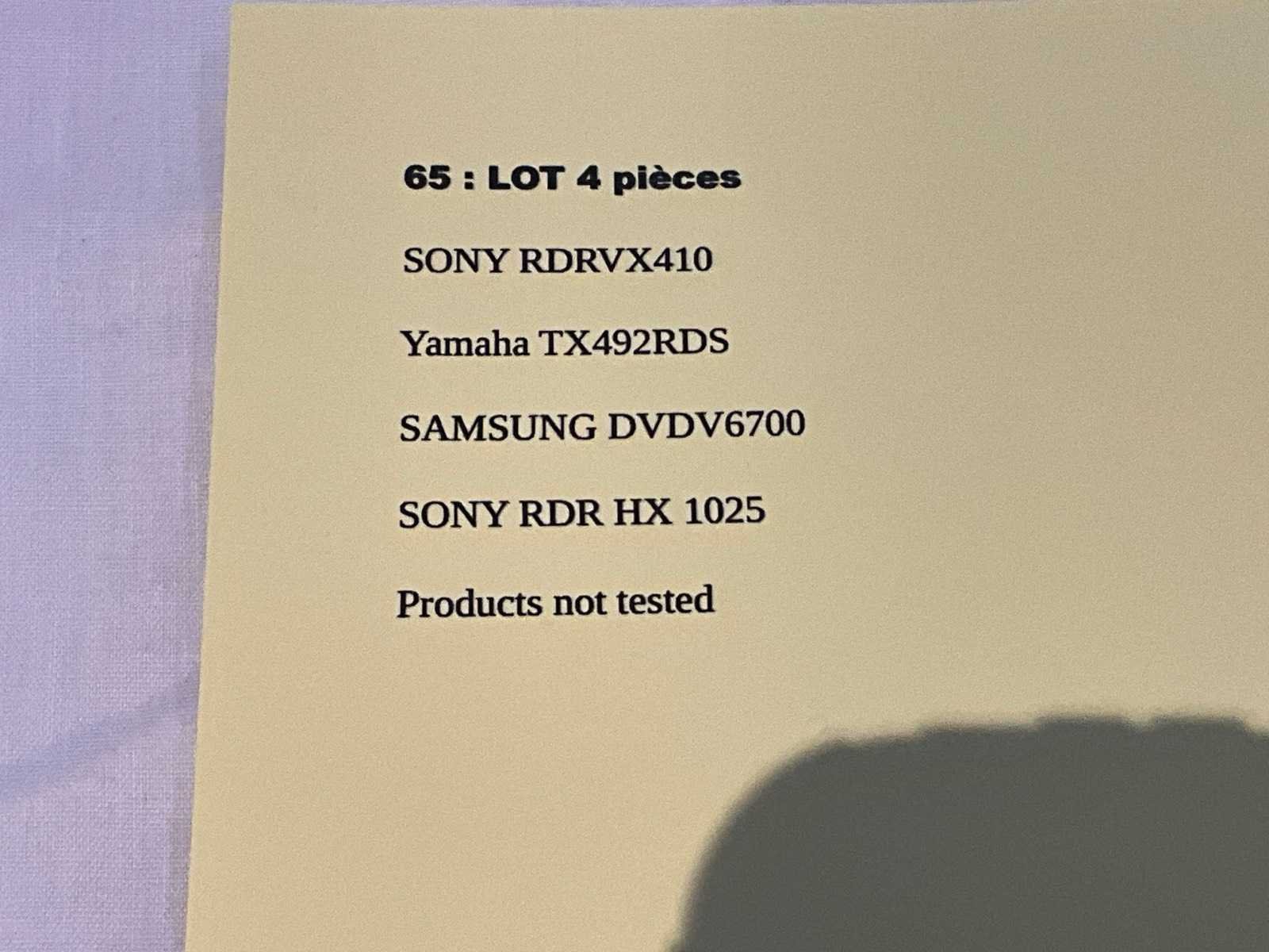 Waaronder: 1x tuner Yamaha XT-492 RDS, 1x VCR-dvd speler SAMSUNG dvd-V6700, 1x dvd recorder SONY RDR-HX1025 en 1x dvd recorder SONY RDS-VX410 Type: Partij