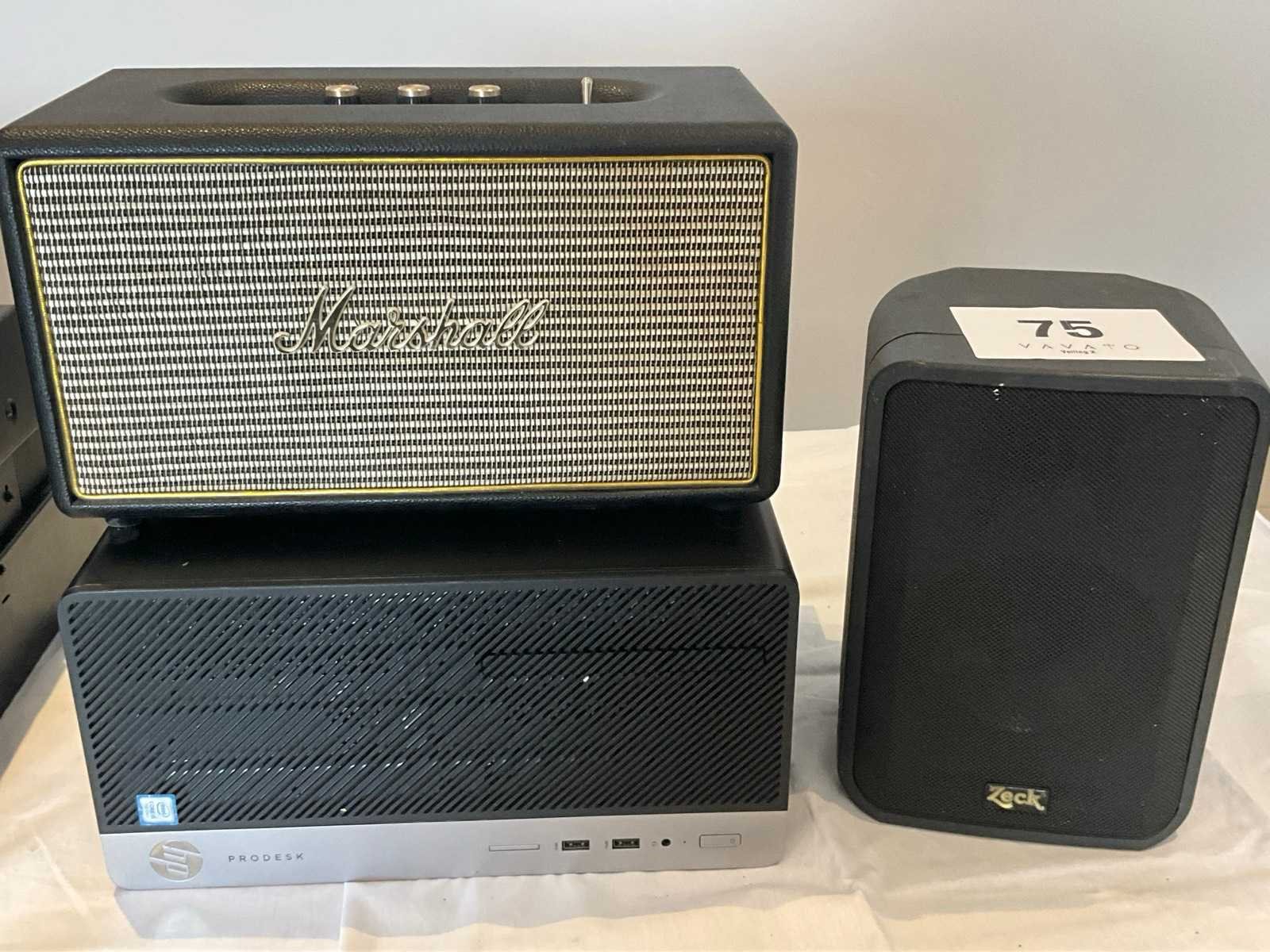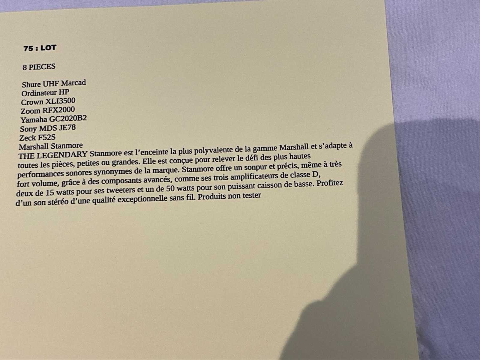 Waaronder: 1 digitaal reverb effect ZOOM RFX – 2000, 1 limiter YAMAHA GC2020 BII, 1 minidisc recorder SONYDDS-JE780, 1 draadloze microfoon receiver SHURE UHF, 1 versterker CROWN XL13500, 1 luidspreker MARSHALL vintage look, 1 PC HP prodesk en 1 luidspreker ZECK Type: Partij