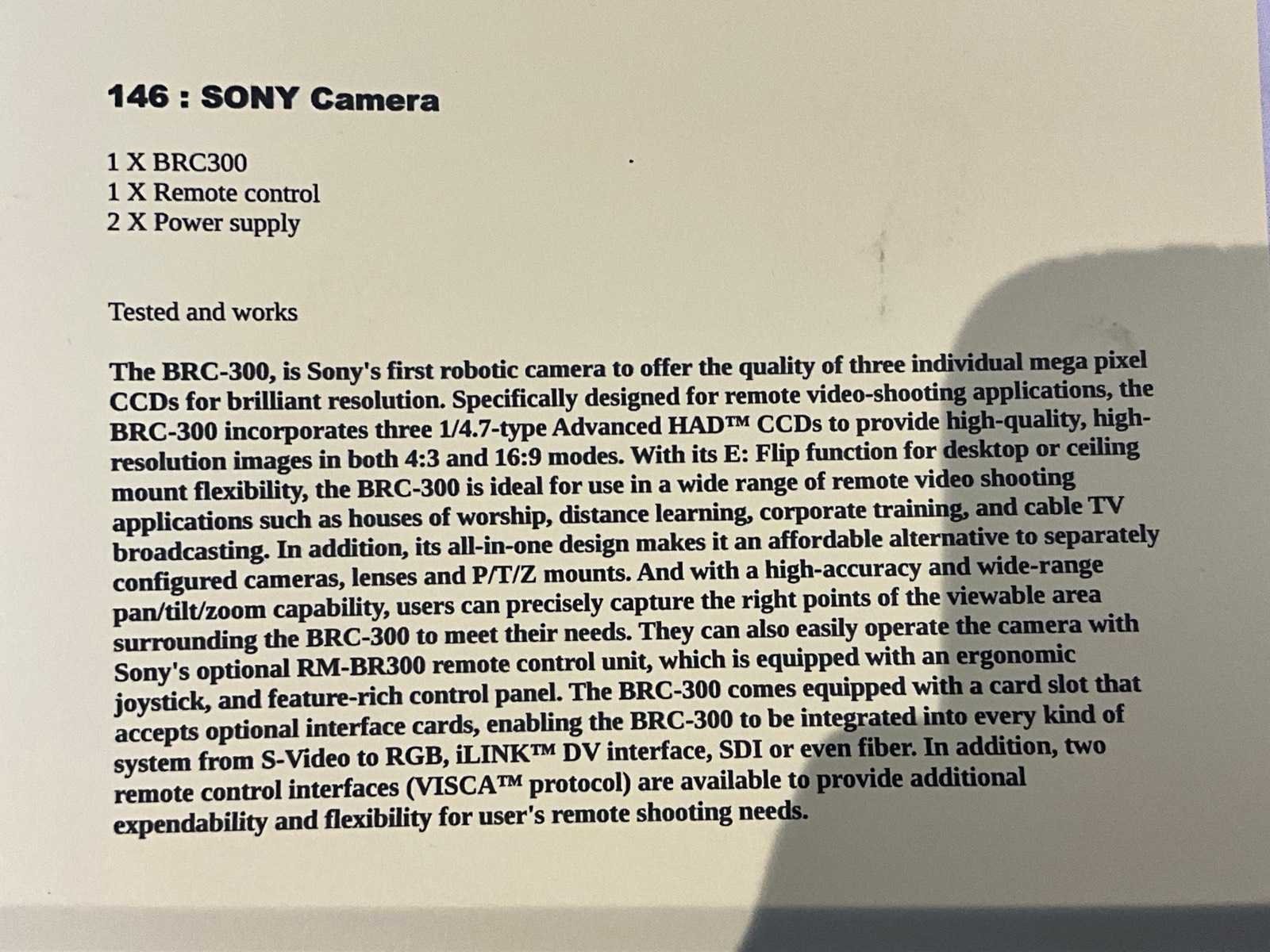 Compleet met 1 dito voor onderdelen Merk: Sony Model: BRC-300 Product type: Kleuren