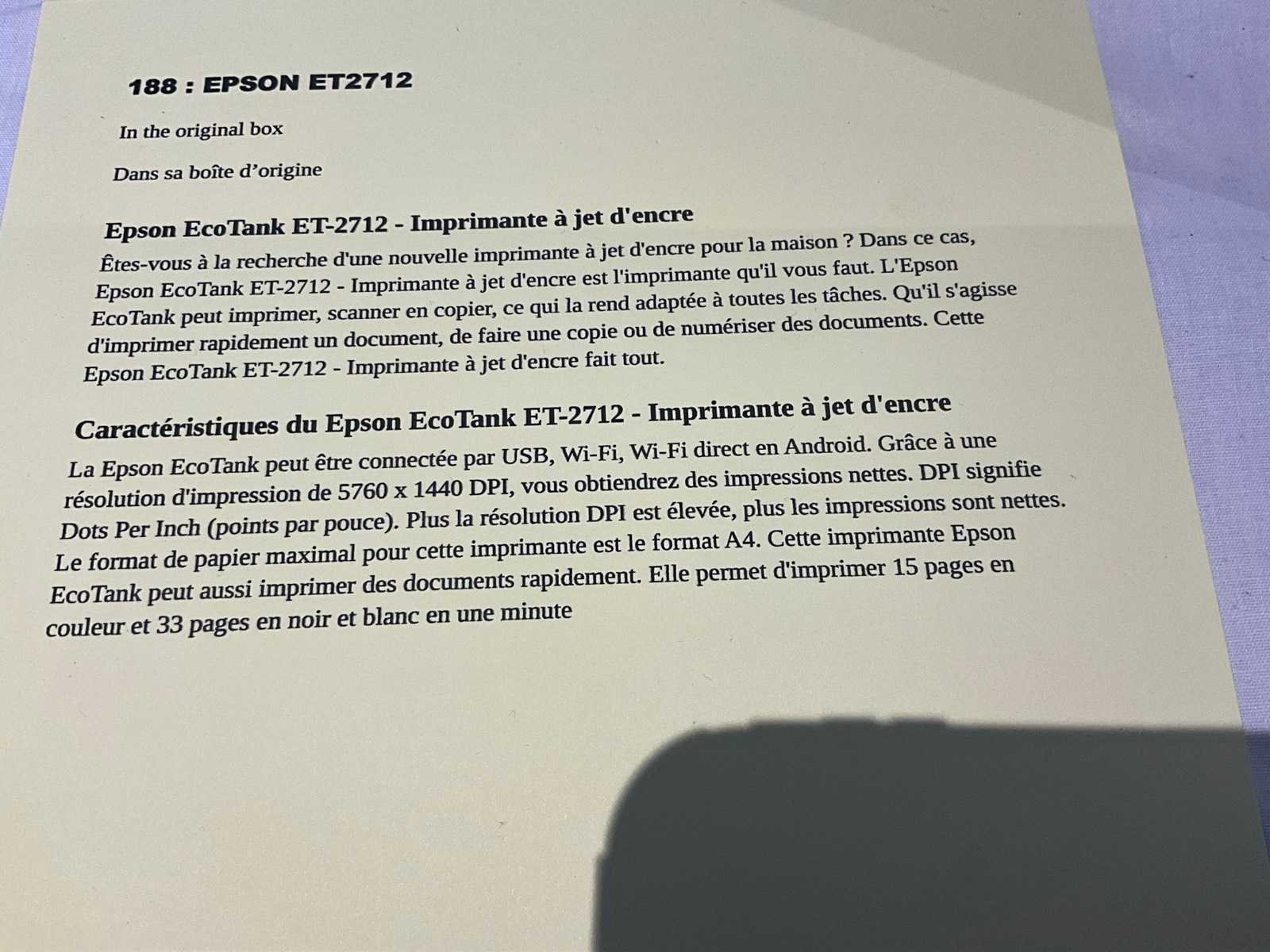 In gesloten originele verpakking Merk: Epson Type: ET-2712 Model: All-In-One