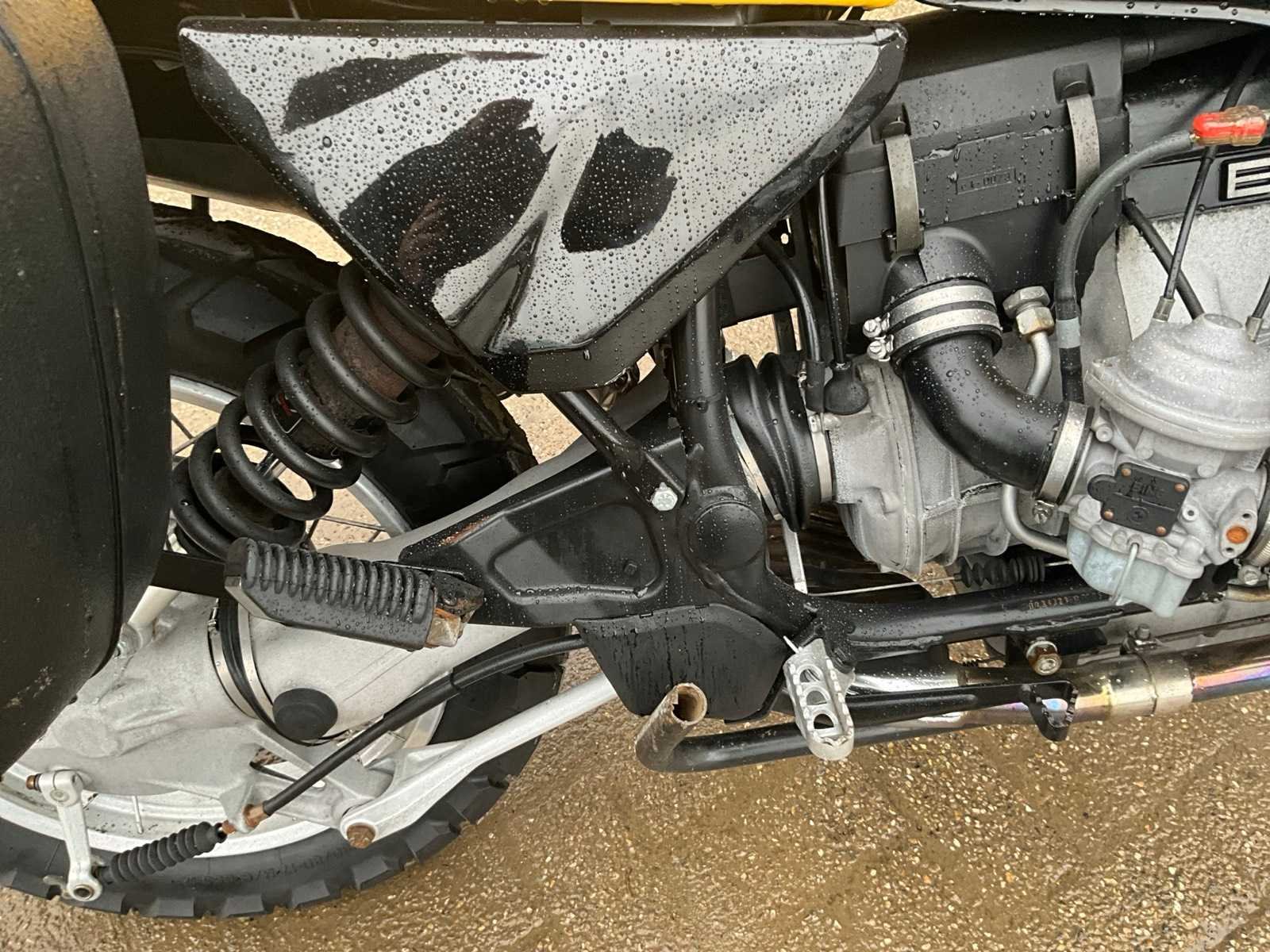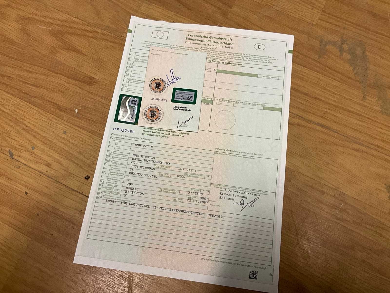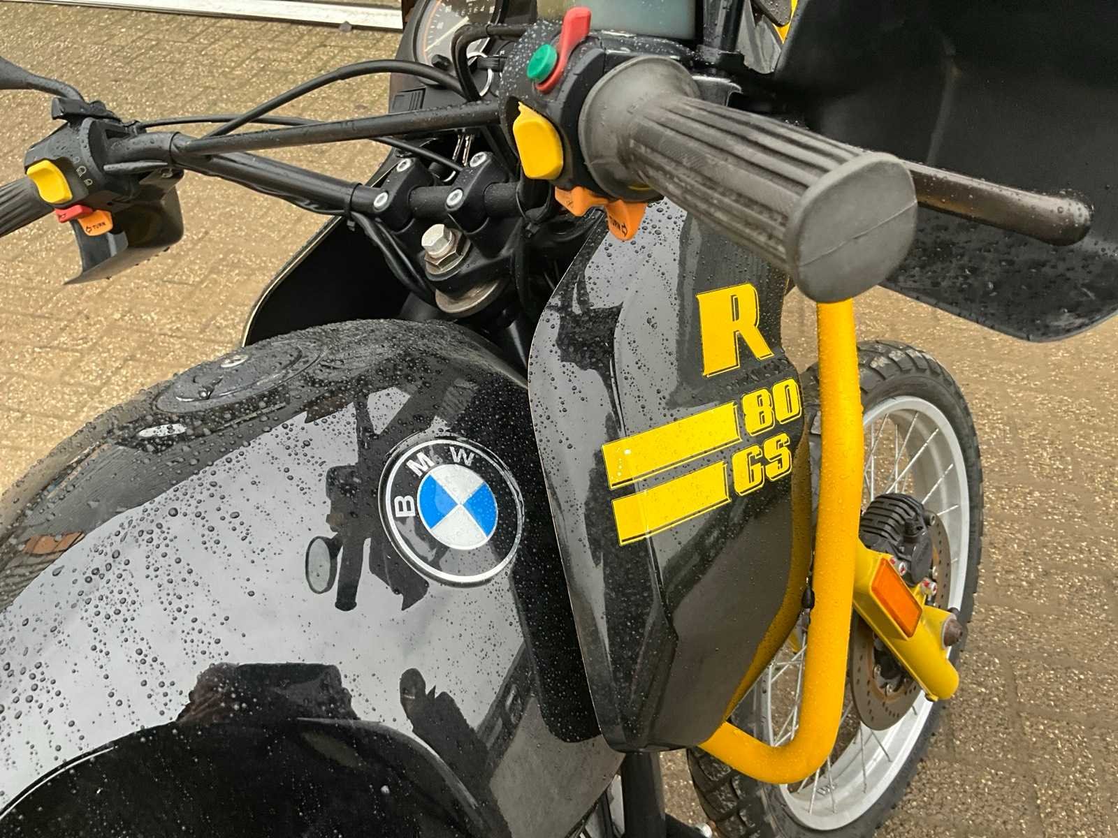Aanwezige boorddocumenten:inschrijvingsbewijs deel I en II Merk: BMW Type: R 80GS Brandstof: Benzine Chassisnummer: 0034321R80GS Cilinderinhoud: 797cc Datum eerste toelating: 17/07/1991 Vermogen (kW): 37kW Afgelezen kilometerstand: 86364km Transmissie: Manueel Aantal sleutels: 3 Startinformatie: Start en rijdt Bouwjaar: 1987