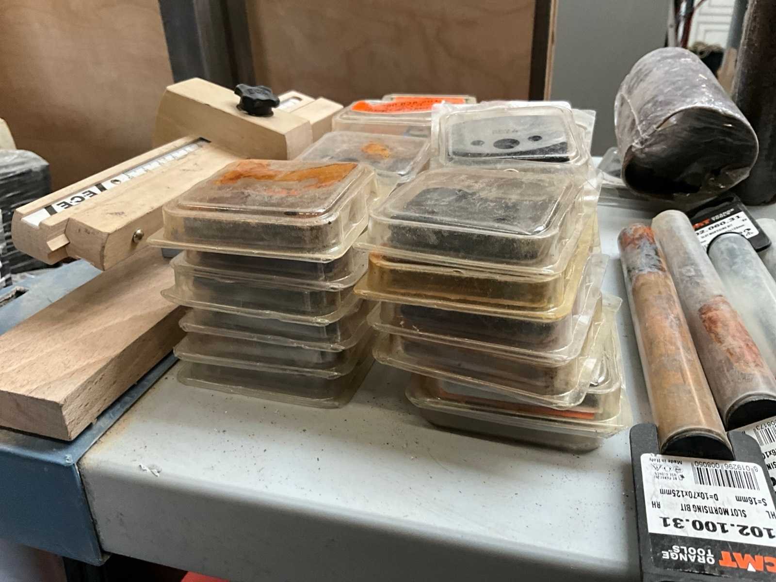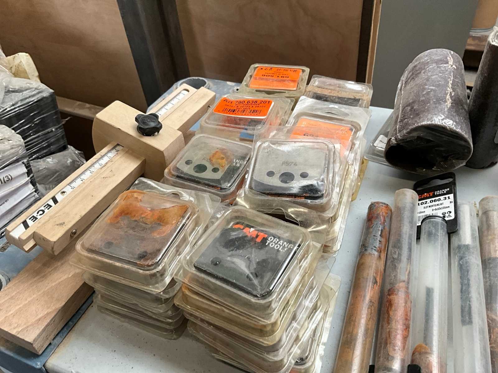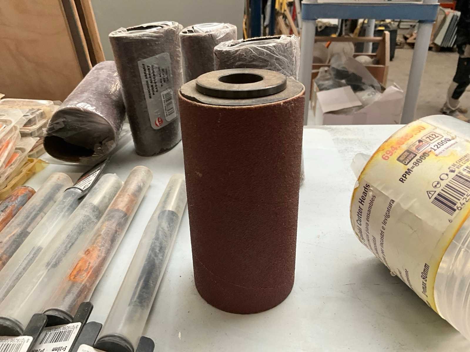 Waaronder spiraalfreeskop, diverse radiusmessen, rechte freesbits, 4x schuurband compleet met 2 diverse zaagbladen Merk: CMT