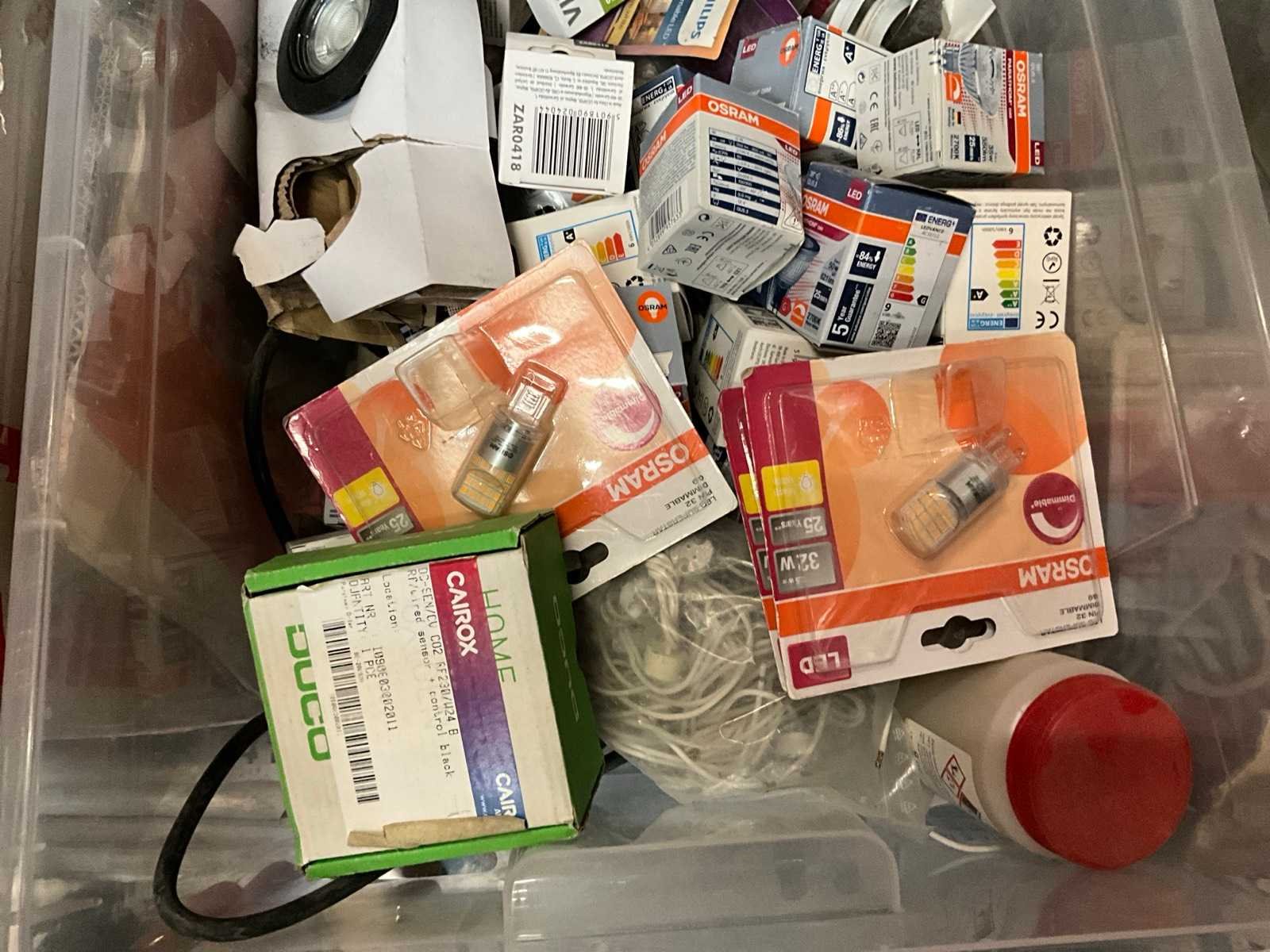 Waaronder divers LED strips en transformators, diverse zekeringen, meterteller, diverse lampen waaronder OSRAM, diverse schakelaars en stopcontacten