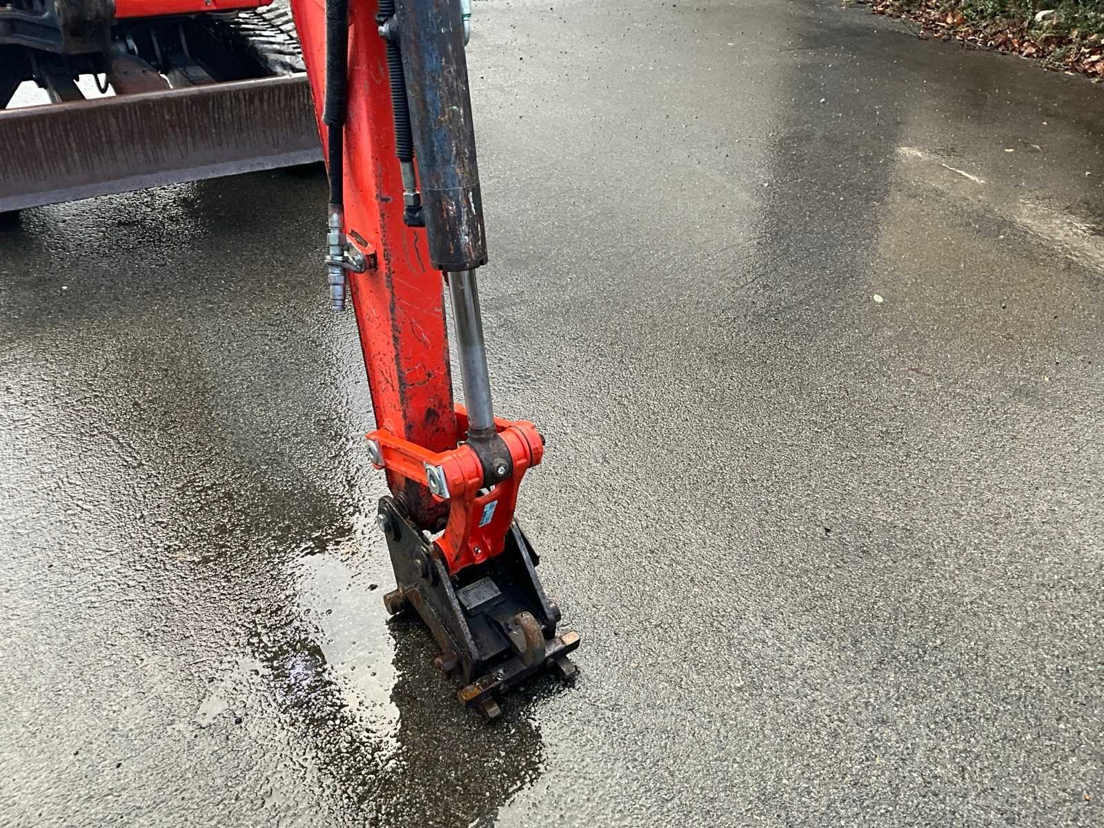 Extra hydraulische leidingen, snelwisselsysteem, zwenkarm, dozerblad, sleutel aanwezig, gebruikssporen, olielek, deuk in cabine, venster sluit niet compleet Merk: Kubota Type: U27-4 Bouwjaar: 2015 Serienummer: 57296 Merk motor: Kubota Motorvermogen (kW): 15.5kW Aantal cilinders: 3 Brandstof: Diesel Bedrijfsgewicht: 2665kg Inclusief graafbak: No Rups breedte: 300mm Afgelezen urenstand: 3171 Totale afmeting Breedte: 1500mm
