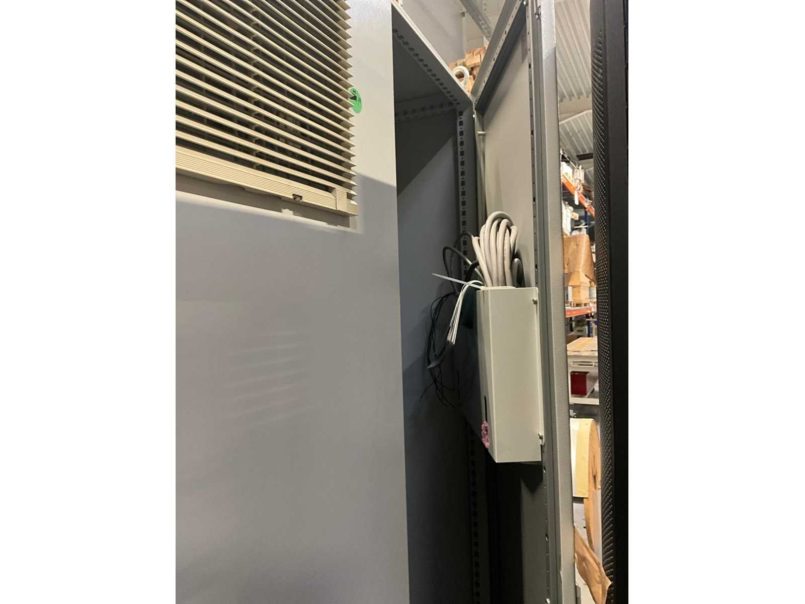 Voorzien van uittrekbaar toetsenbordplateau en kunststof raam. Merk: Rittal Lengte: 51cm Breedte: 120cm Hoogte: 210cm