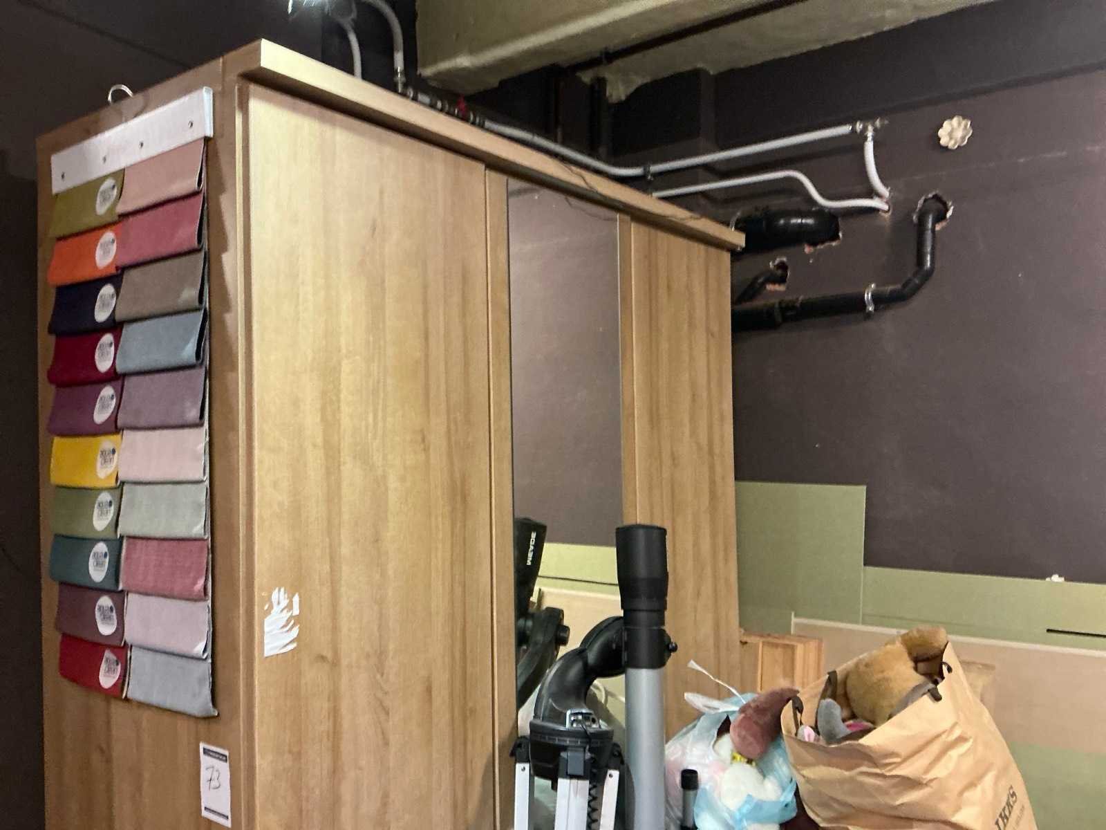 1 deur voorzien van spiegel Lengte: 63cm Breedte: 152cm Hoogte: 228cm
