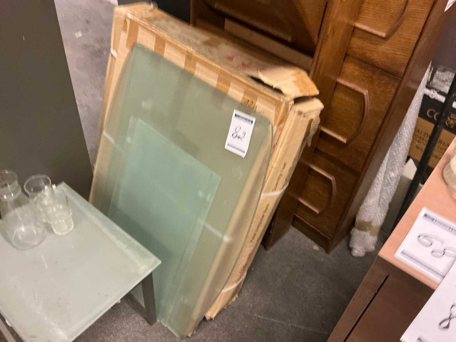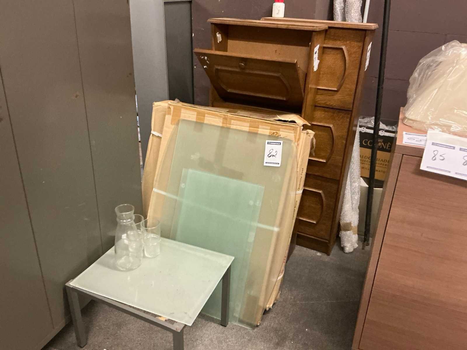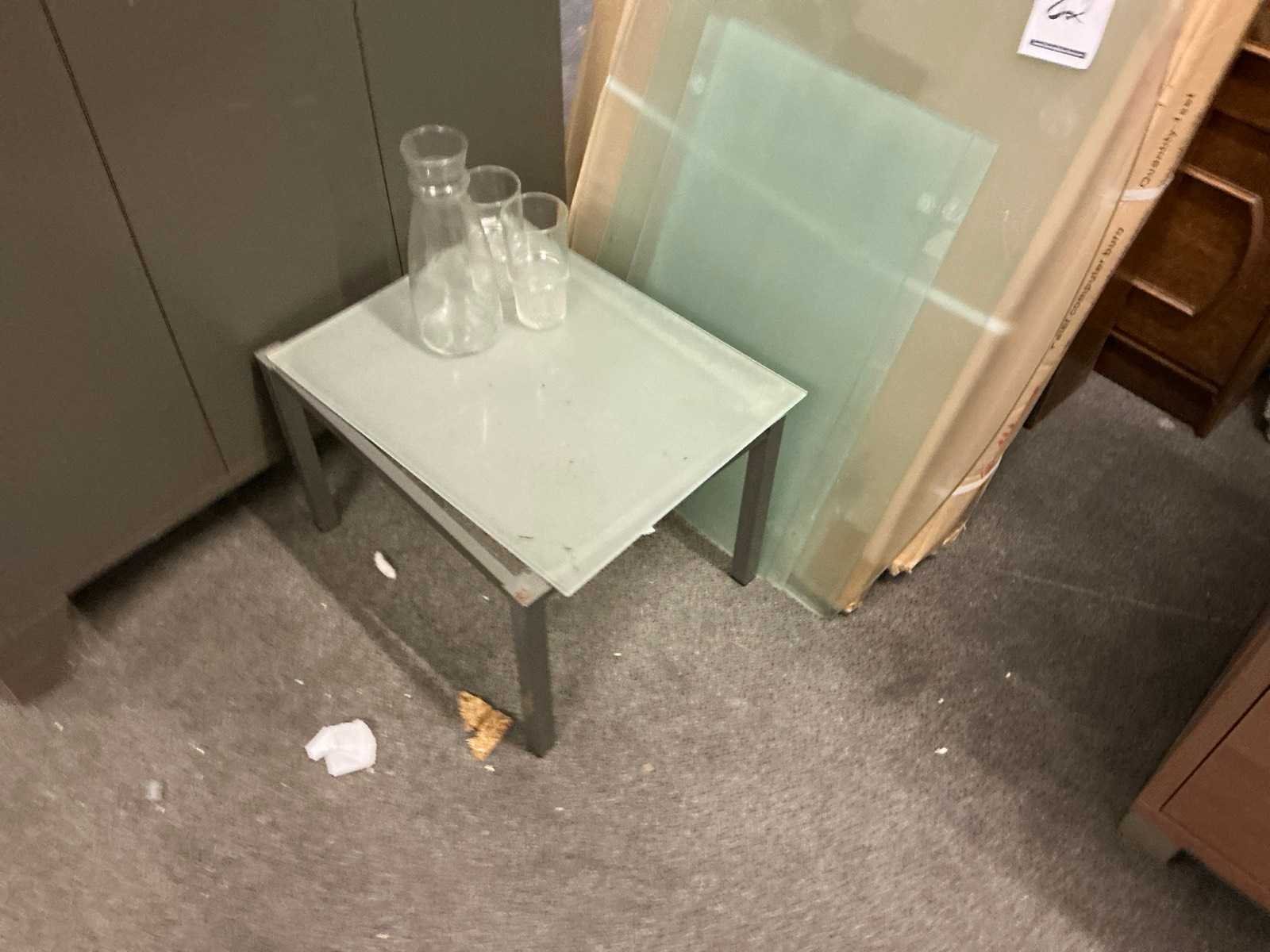 Waaronder: bijzettafeltje, 2 kastjes en glazen tafelbladen
