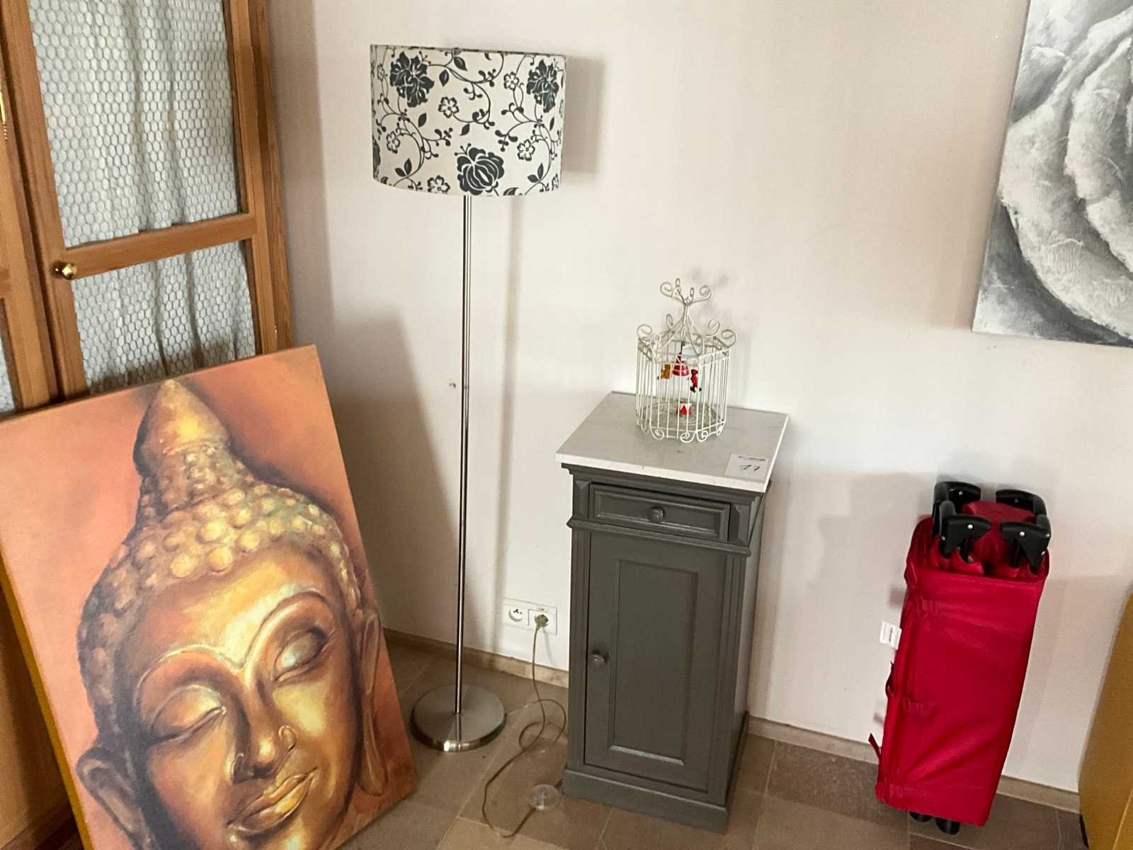 Waaronder 2 decoratieve kaders, vloerlamp, kastje en plooibaar kinderbed