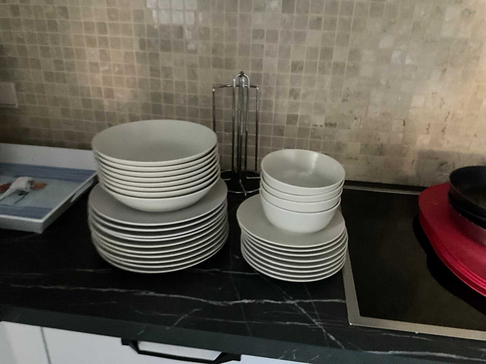 Waaronder magnetron, koffiezetapparaat, servies, tassen, diverse potten en pannen.