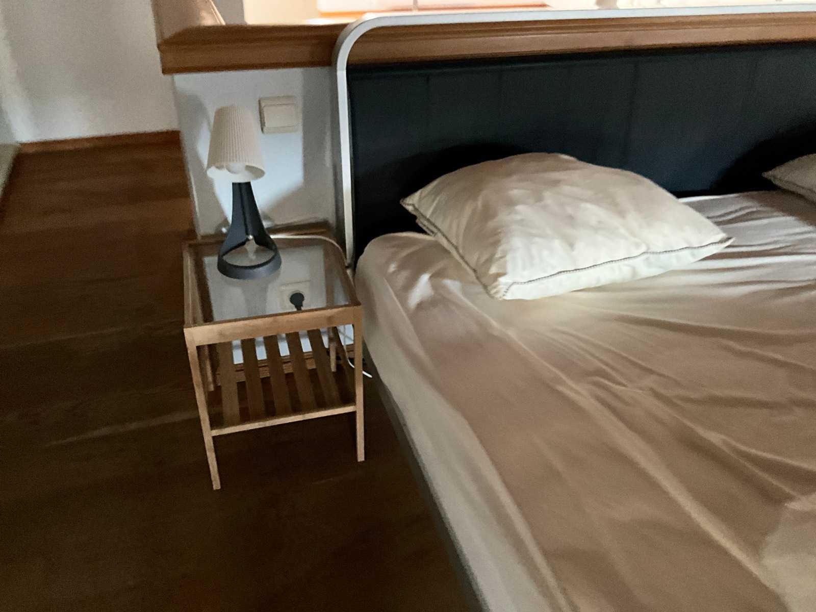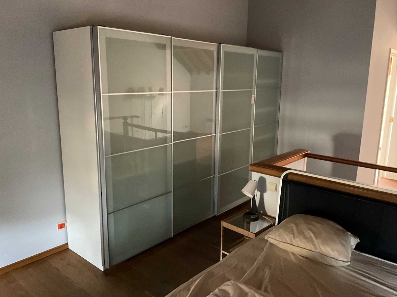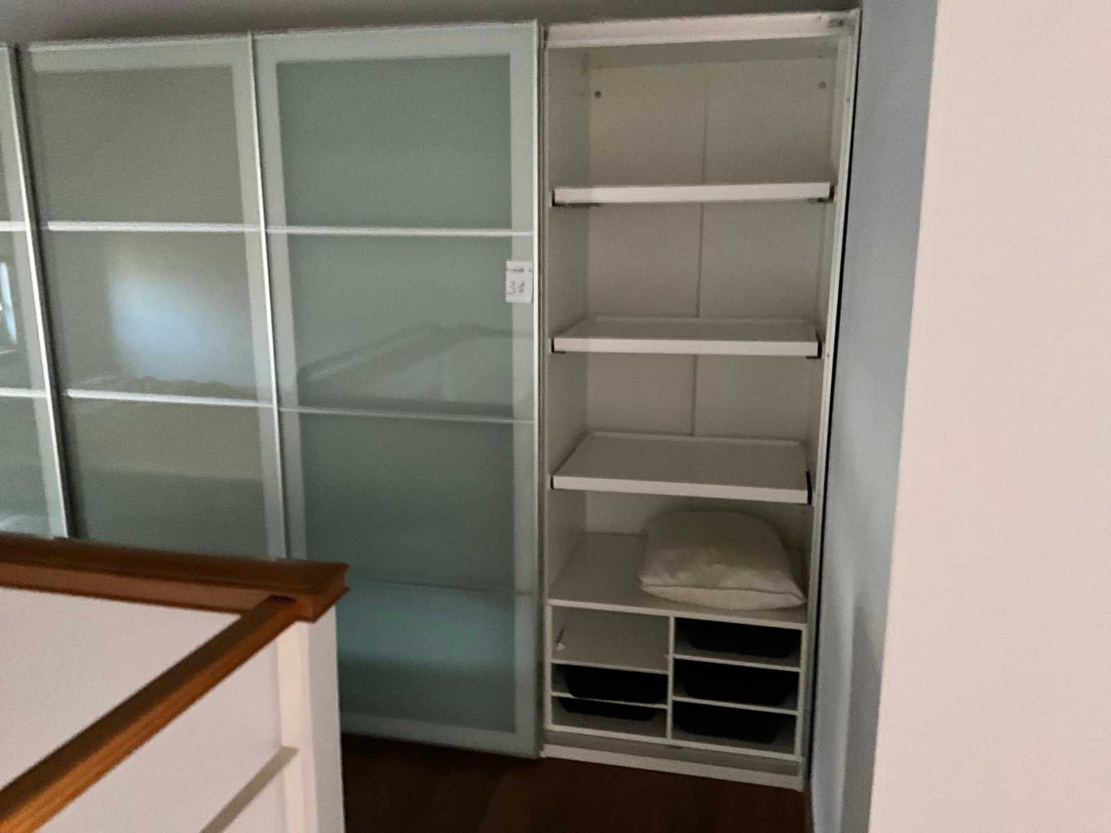 Voorzien van 4 schuifdeuren, inclusief 1 matras afmetingen irca 200x170cm, zonder bed, 2 nachtkastjes, 2 nachtlampjes en 3 vloerlampen Lengte: 300cm Breedte: 65cm Hoogte: 203cm