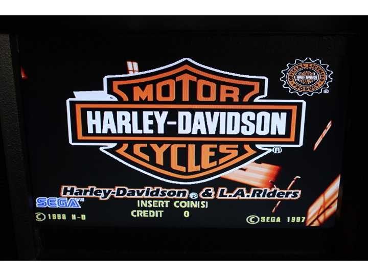 Sit down video arcade, berijd een Harley Davidson en haal de meeste punten, Free play, een echte klassieker Merk: Sega Type: Harley Davidson Lengte: 165cm Breedte: 79cm Hoogte: 198cm Bouwjaar: 1997