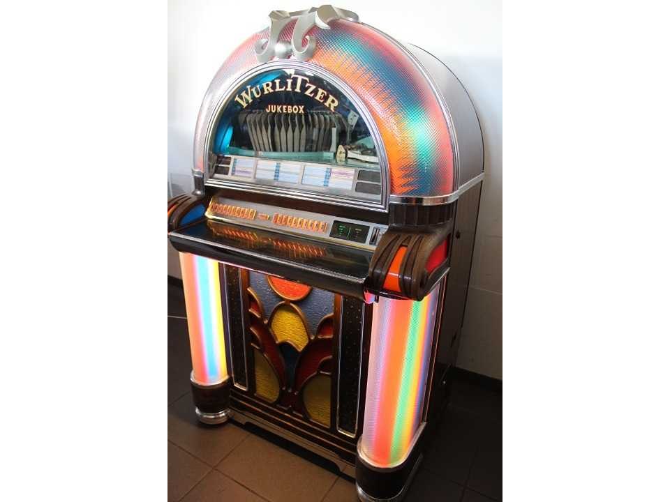 100 selecties, 45 tpm singles (worden erbij geleverd), werking goed Merk: Wurlitzer Type: 1050 Bouwjaar: 1973 Gewicht: 115 Lengte: 710mm Breedte: 940mm Hoogte: 1510mm