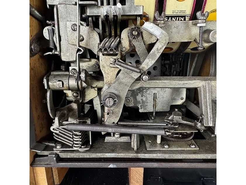 Mechanische slotmachine, geheel gerestaureerd, met werkende dubbele jackpot, Amerikaanse Quarters en betaalt deze ook uit Merk: Watling Type: Treasury Lengte: 41cm Breedte: 44cm Hoogte: 63cm Gewicht: 30kg Bouwjaar: 1935