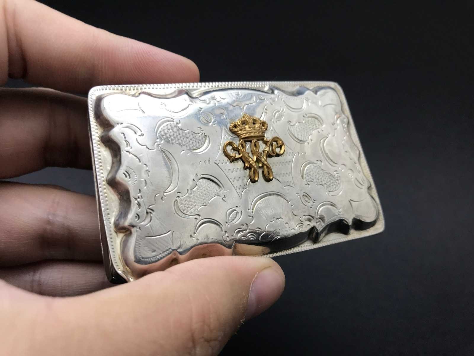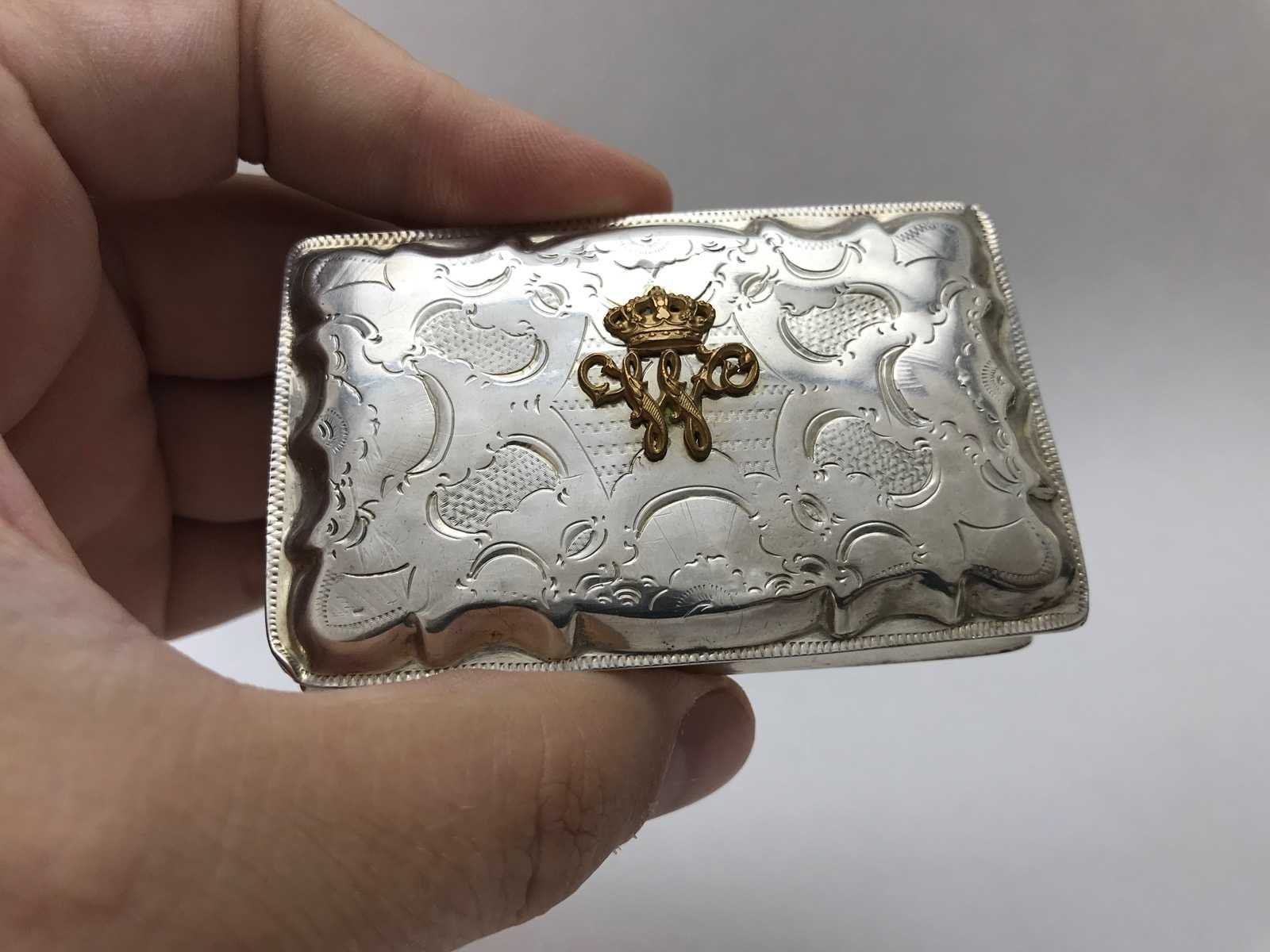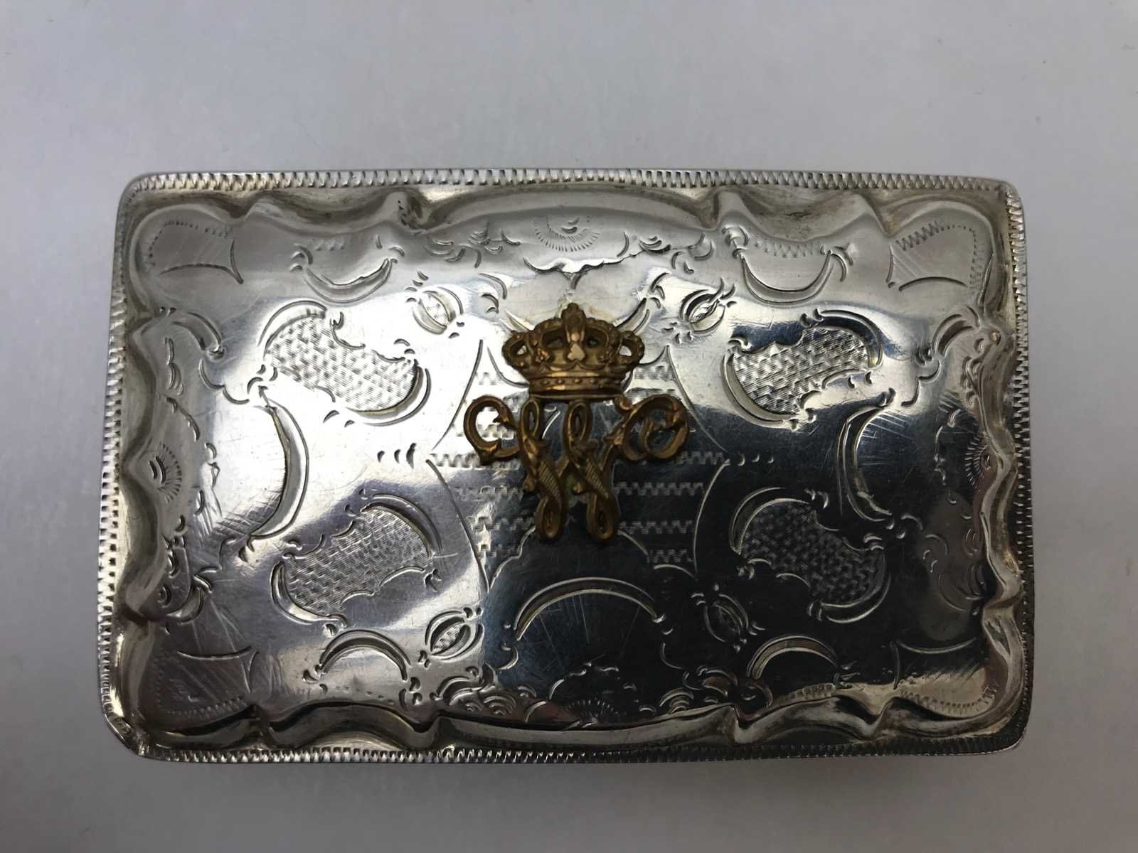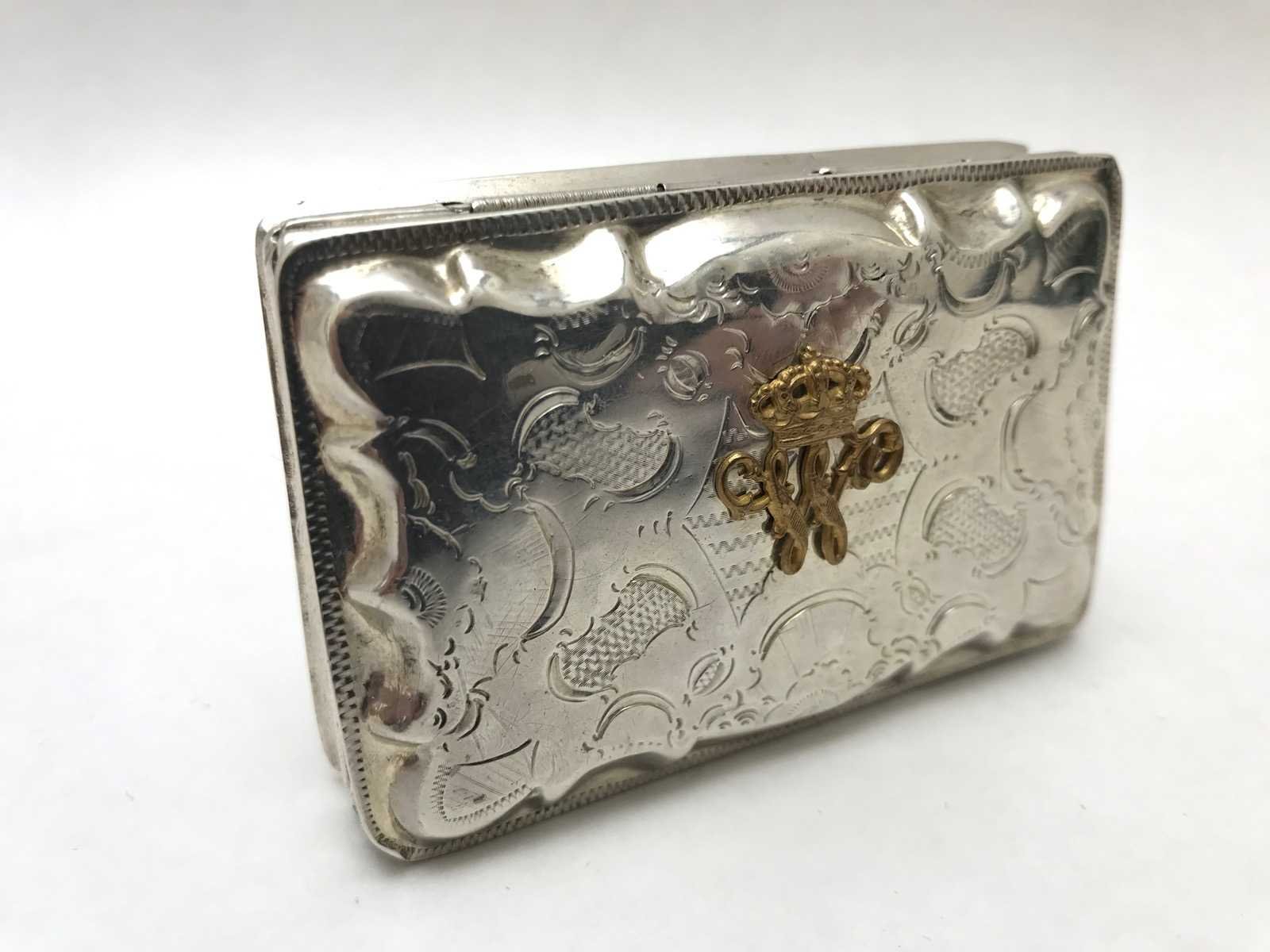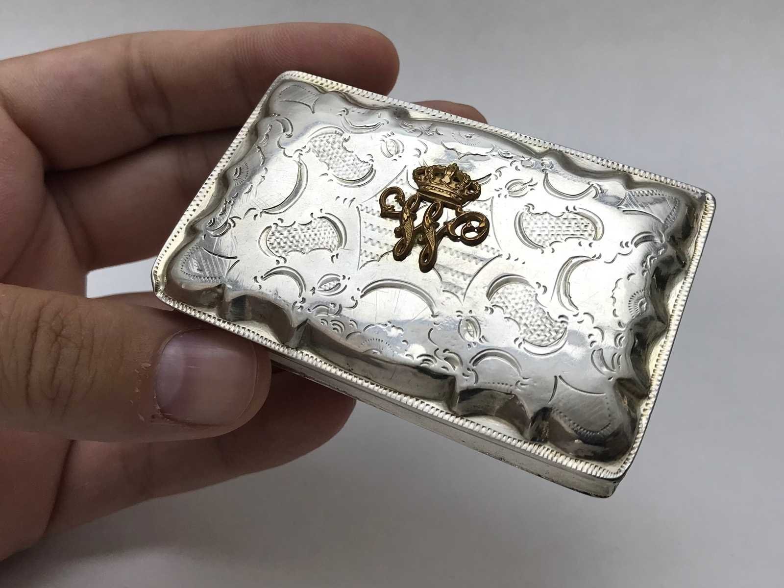 Unieke zilveren tabaksdoosje met monogram koning willem iii der nederlanden (1849-1890)