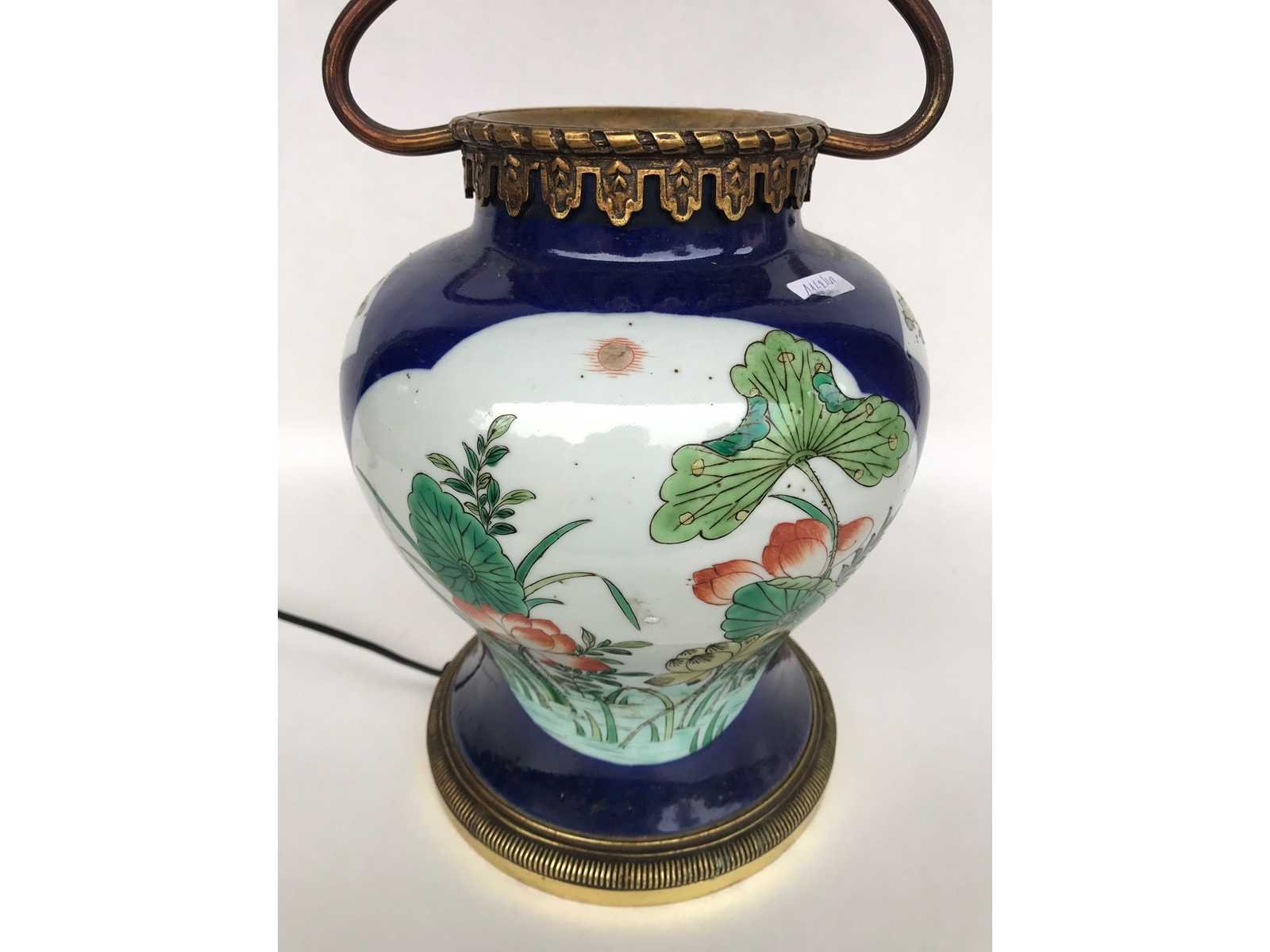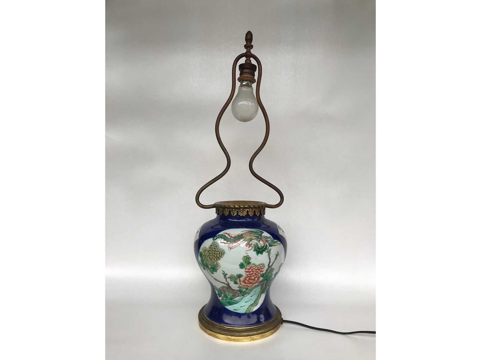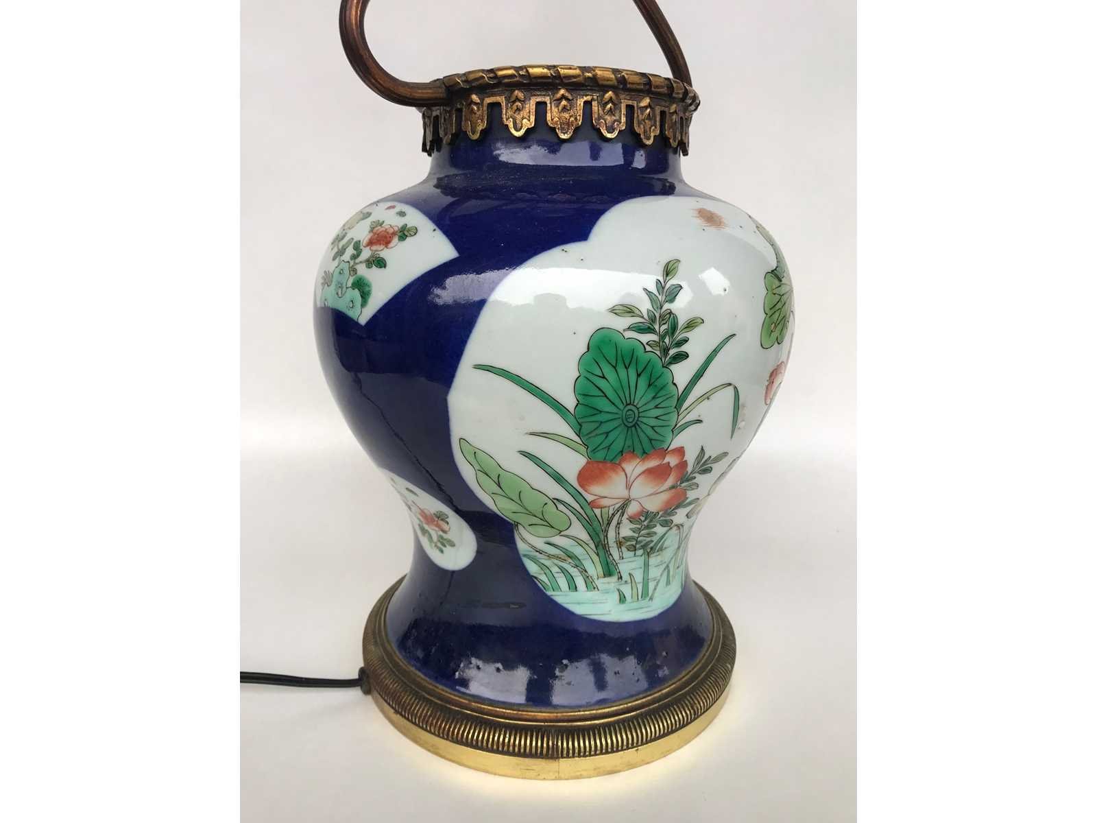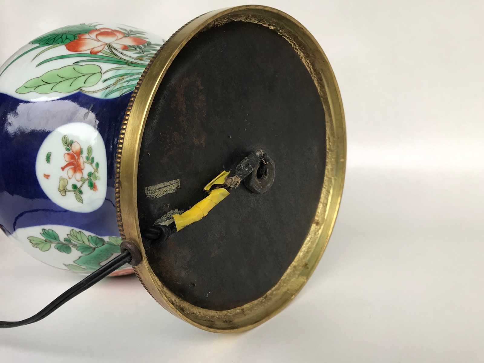 Chinese powder blue background Kangxi marked. Baluster vase. 24cm. Famille Rose scenes. Double circle Land: China Herkomst: Antiekhandelaar