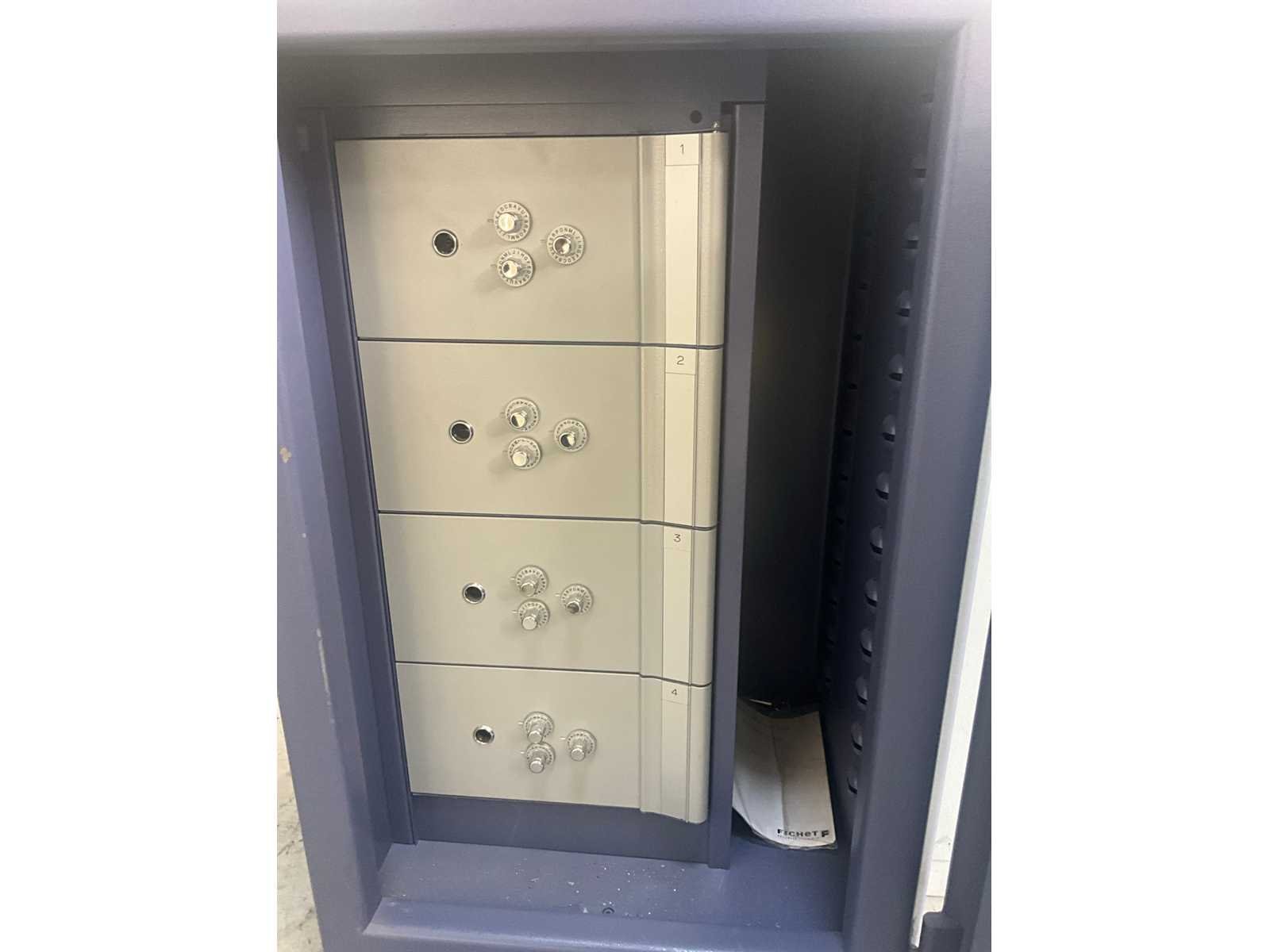 Voorzien van sleutels, cijfercode ongekend. Merk: Fichet Model: Carena 120 Lengte: 55cm Breedte: 45cm Hoogte: 82cm