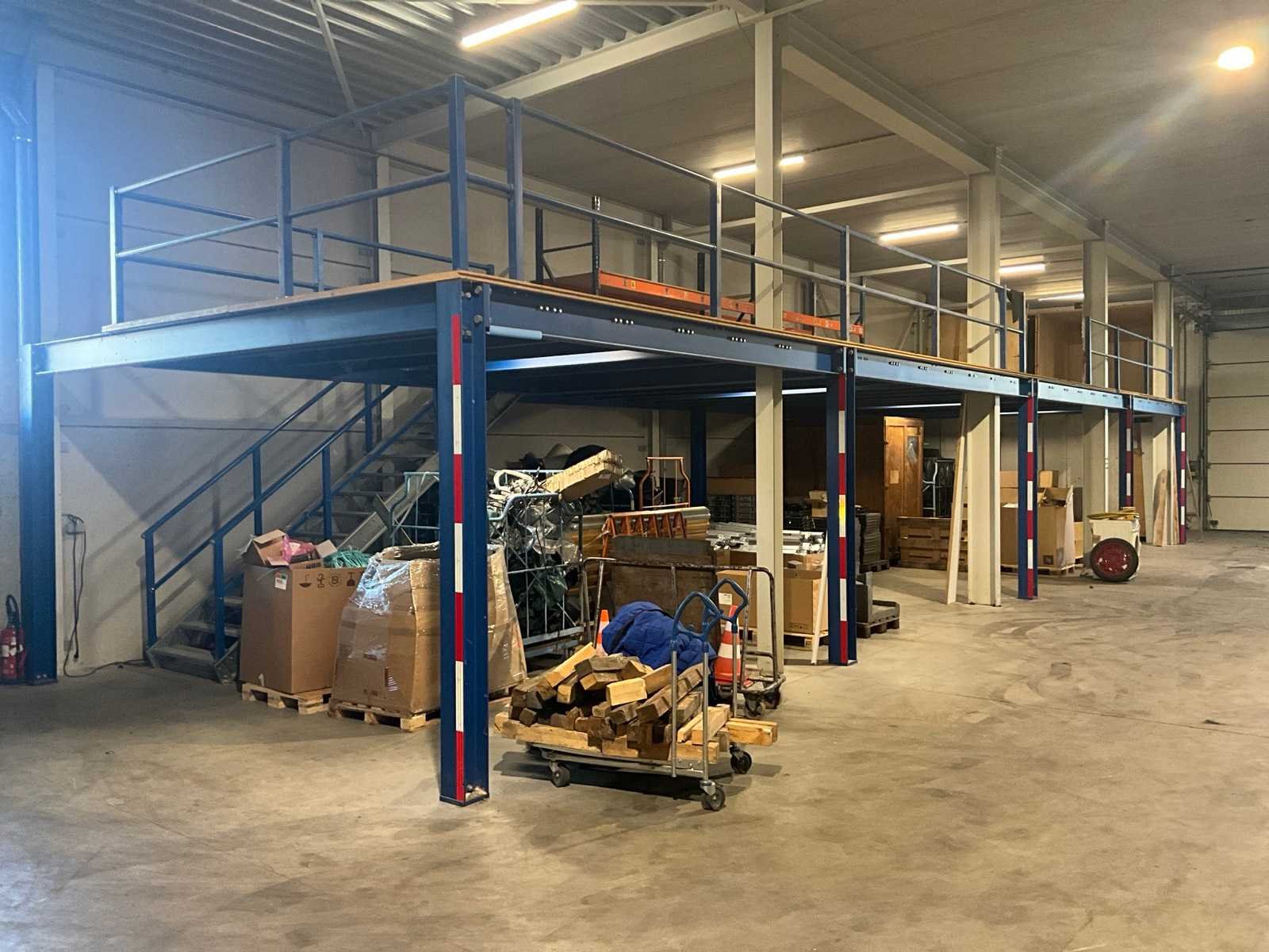 Afmetingen circa 20 x 5 x 2,7m, voorzien van trap, Compleet met circa 7Lm palletstelling.