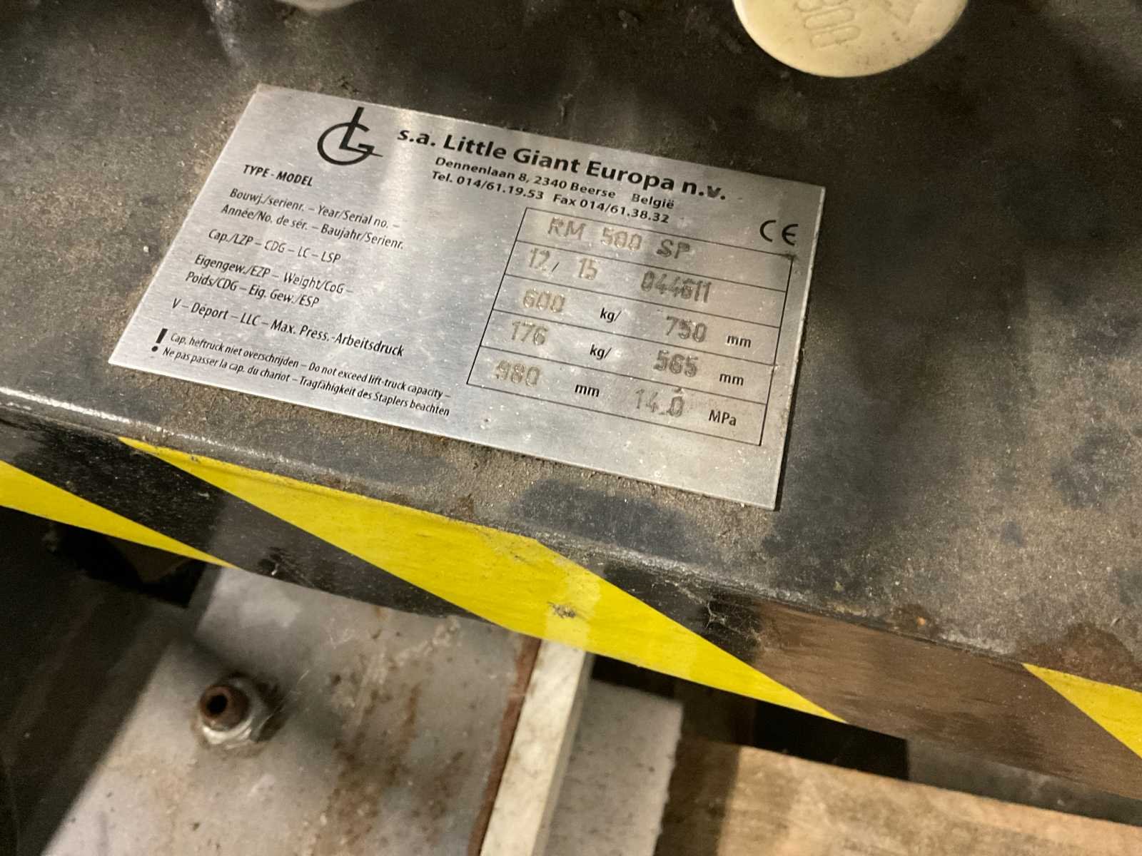 Merk: Little Giant Type: RM 500 SP Hijsvermogen: 600kg Aansluiting: 400V Eigen gewicht: 176kg