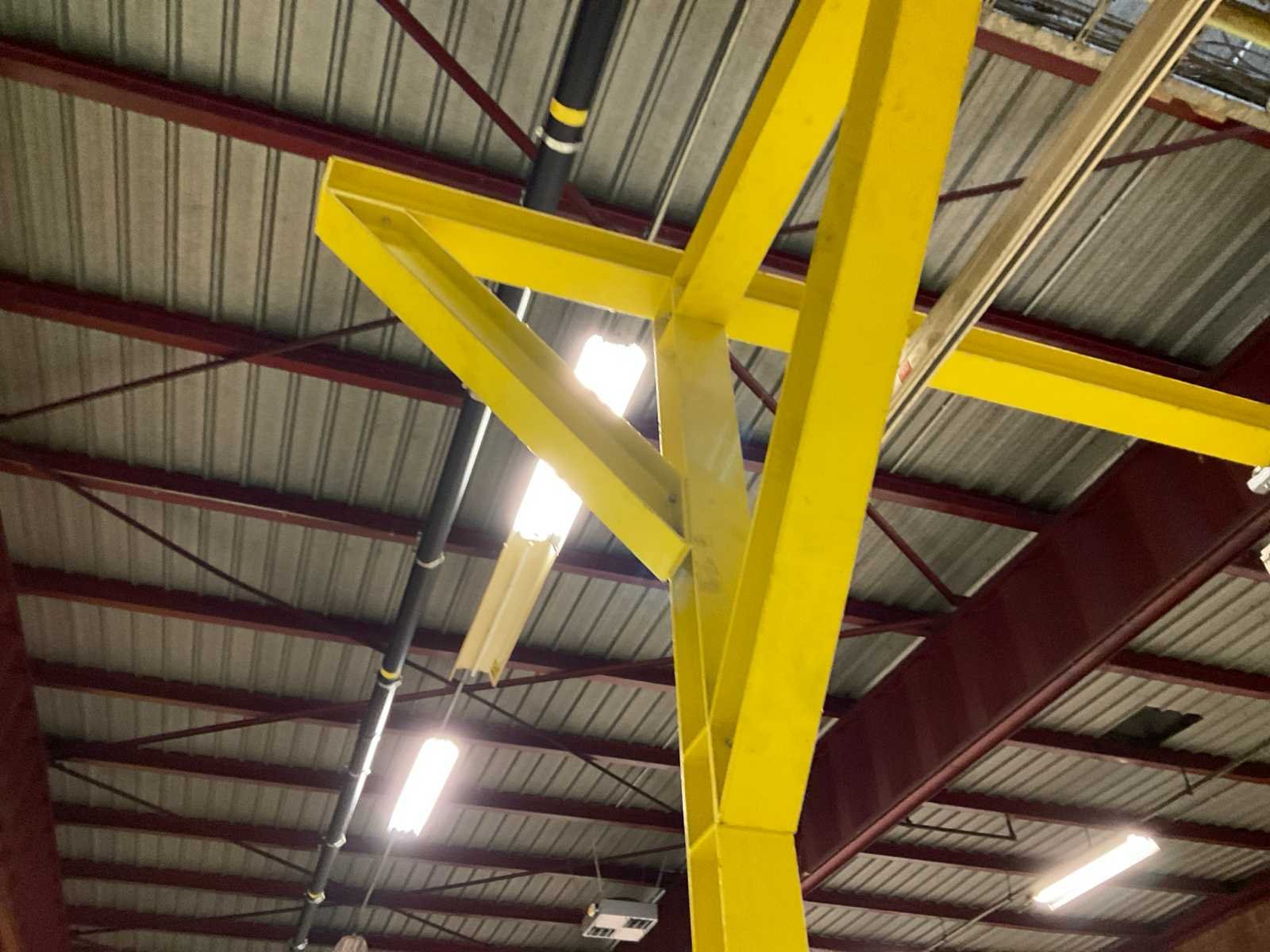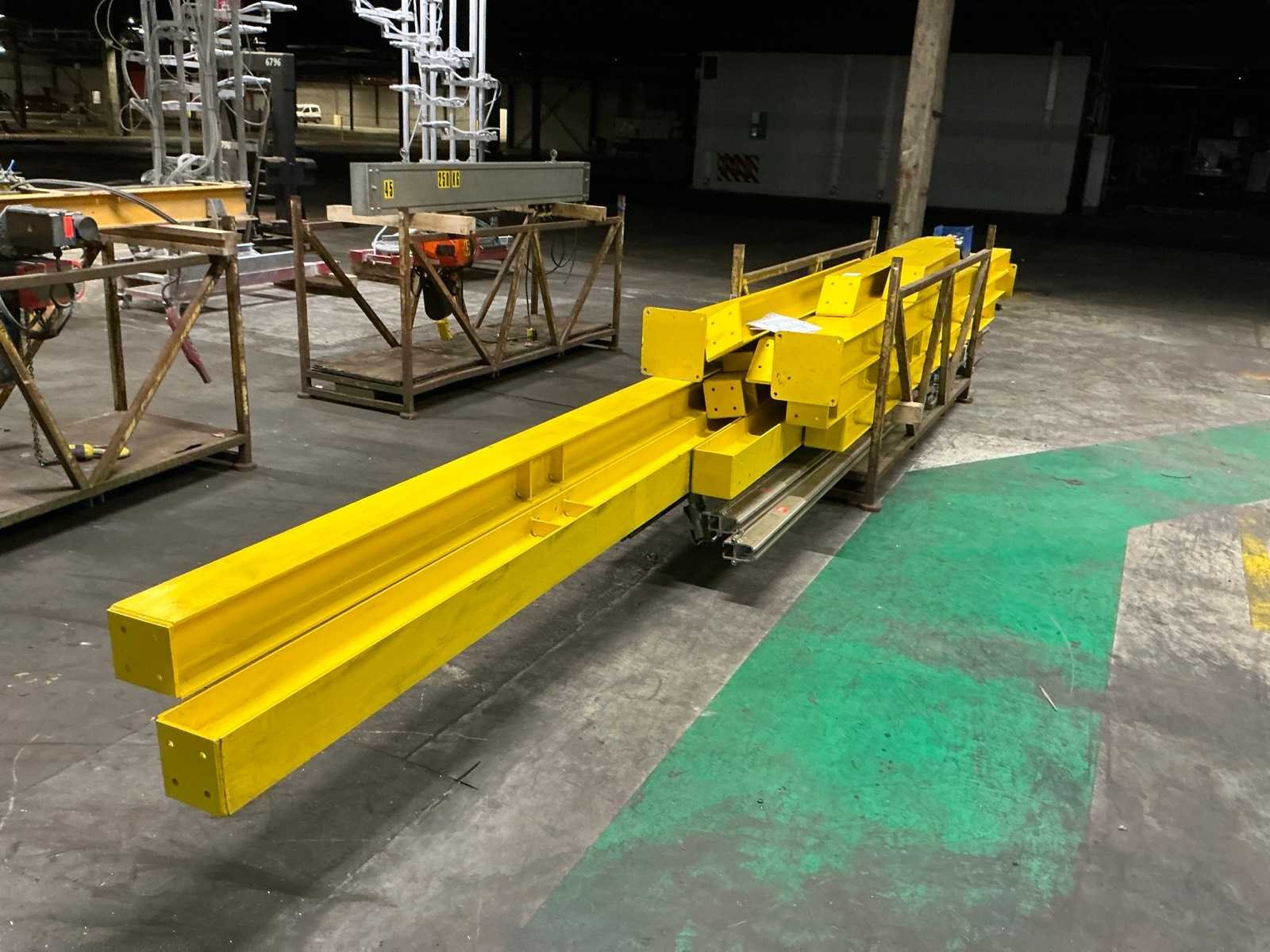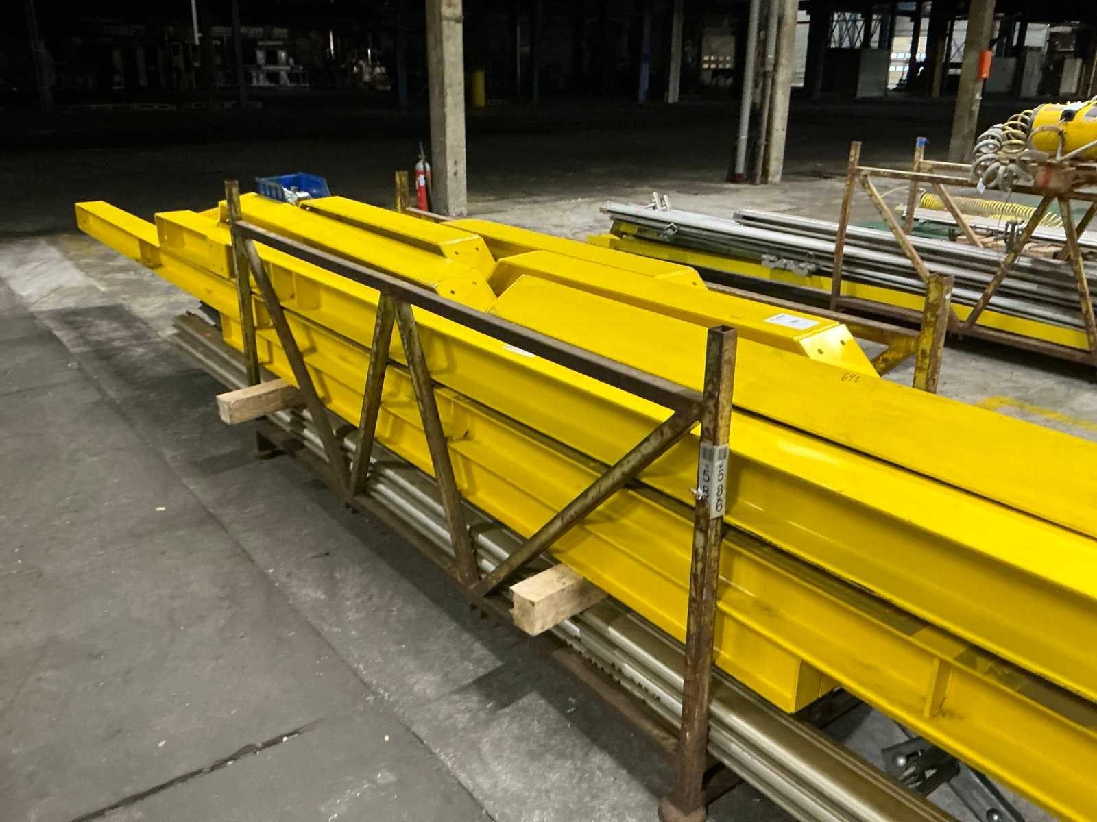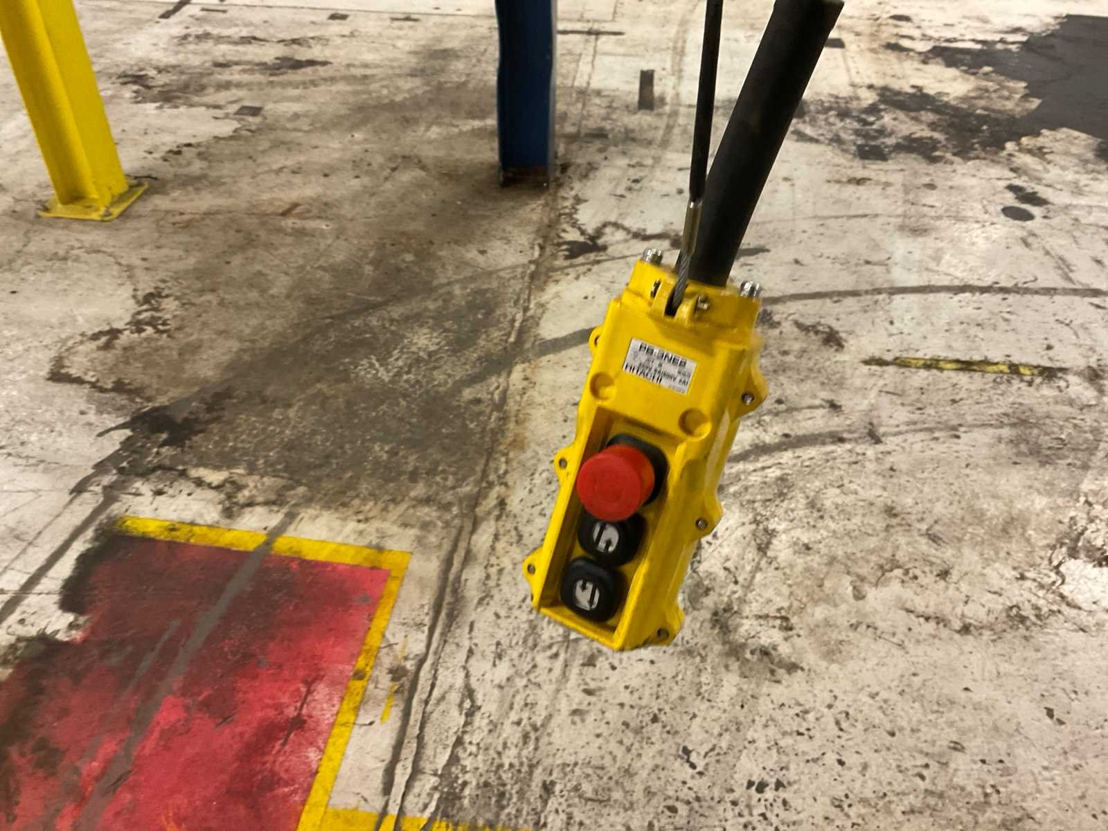 Met hangrailsysteem, voorzien van Hitachi elektrische kettingtakel 250kg, circa 2,5m overspanning met draagcapaciteit 250kg, met 2 loopbanen circa 10m, inclusief stalen portaal met hoogte circa 4,5m