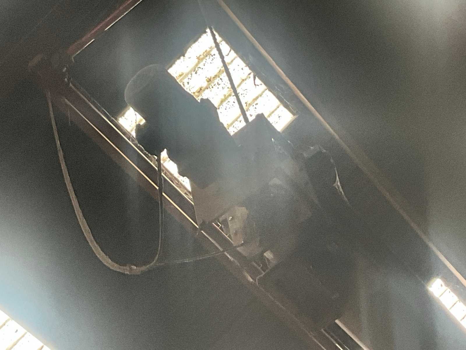 Hangende in loods op hoogte van circa: 7500mm Lengte circa: 20 meter Aantal uitgangen: 6 Voorzien van elektromotor